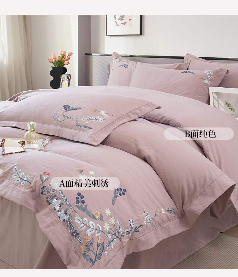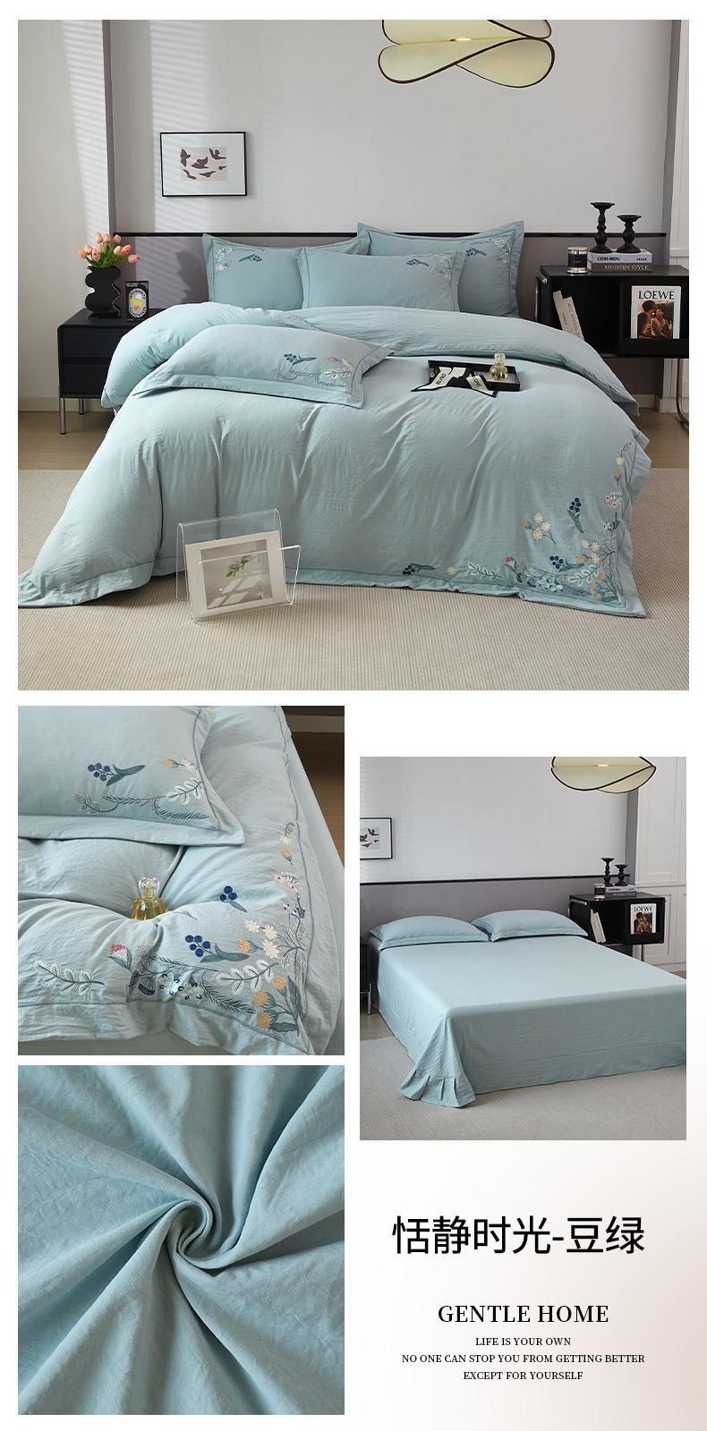 (总)金纱玉纺家纺 2025新款水洗棉工艺刺绣四件套,沁颜花开-宾利蓝,沁颜花开-豆绿,沁颜花开-粉豆沙,沁颜花开-中灰,沁颜花开-紫,沁颜花开-紫豆沙,恬静时光-宾利蓝,恬静时光-豆绿,恬静时光-粉豆沙,恬静时光-中灰,恬静时光-紫,恬静时光-紫豆沙