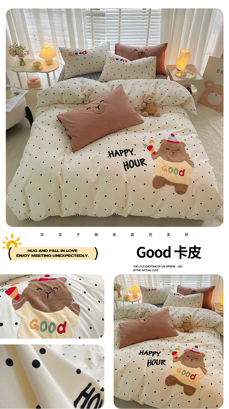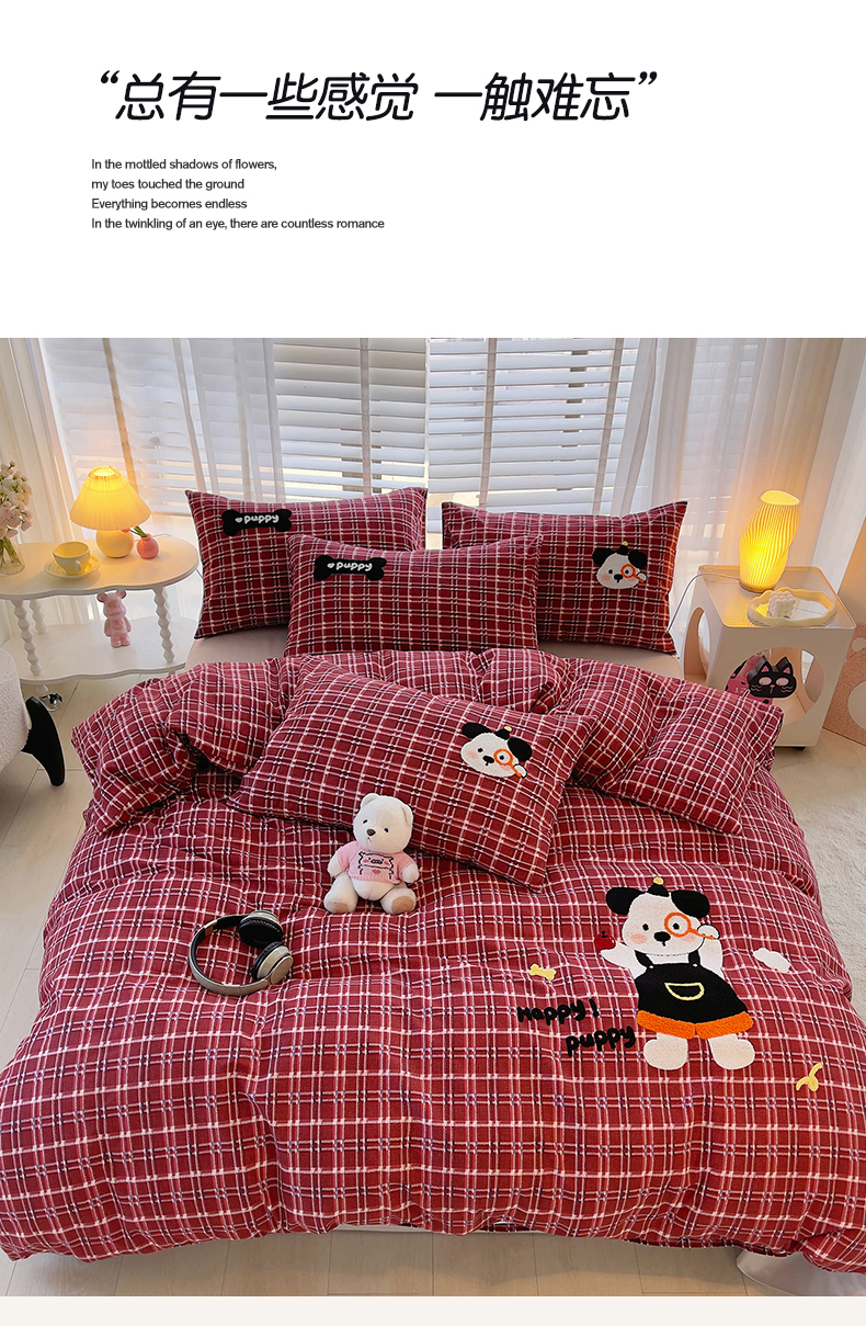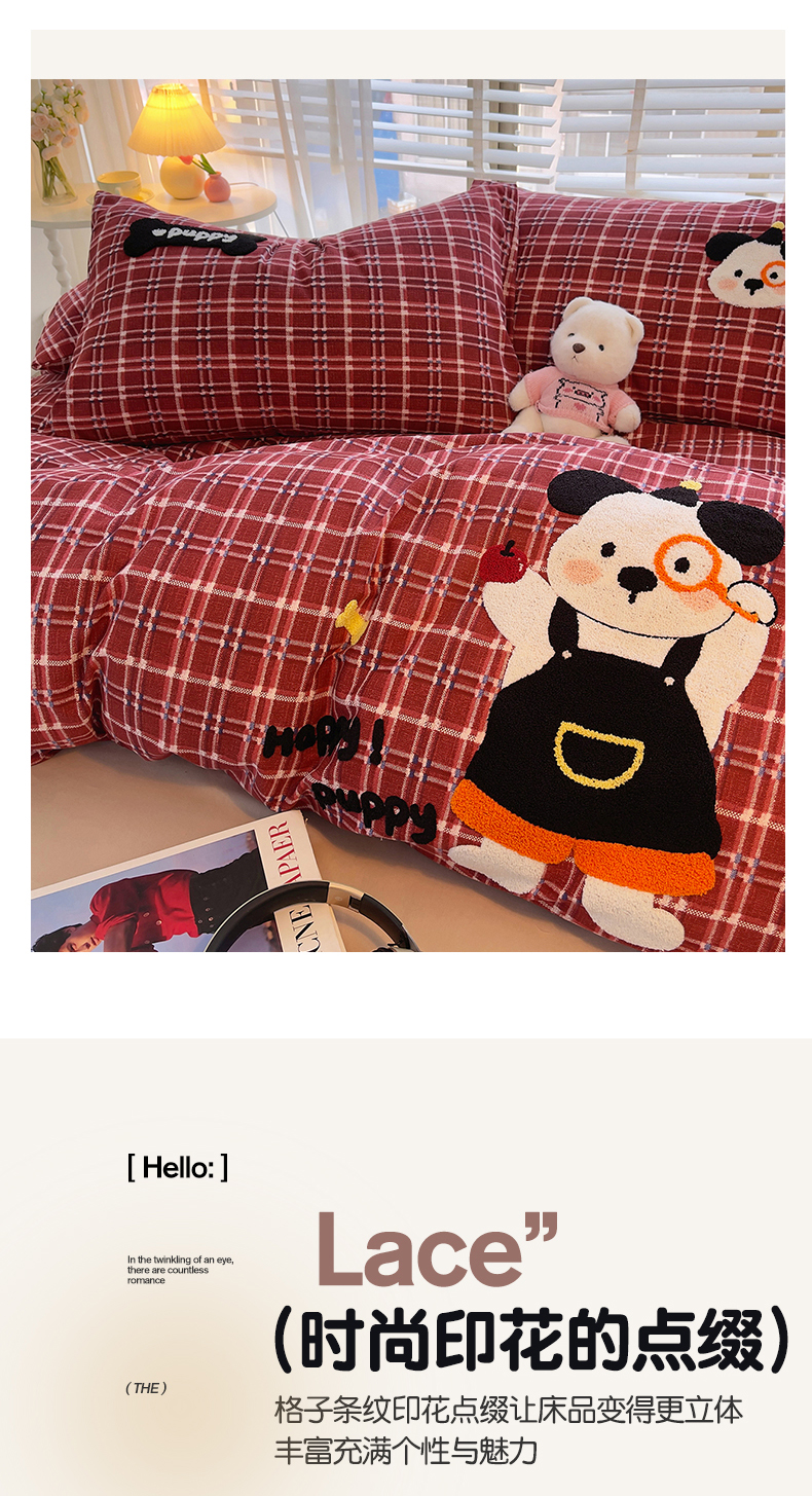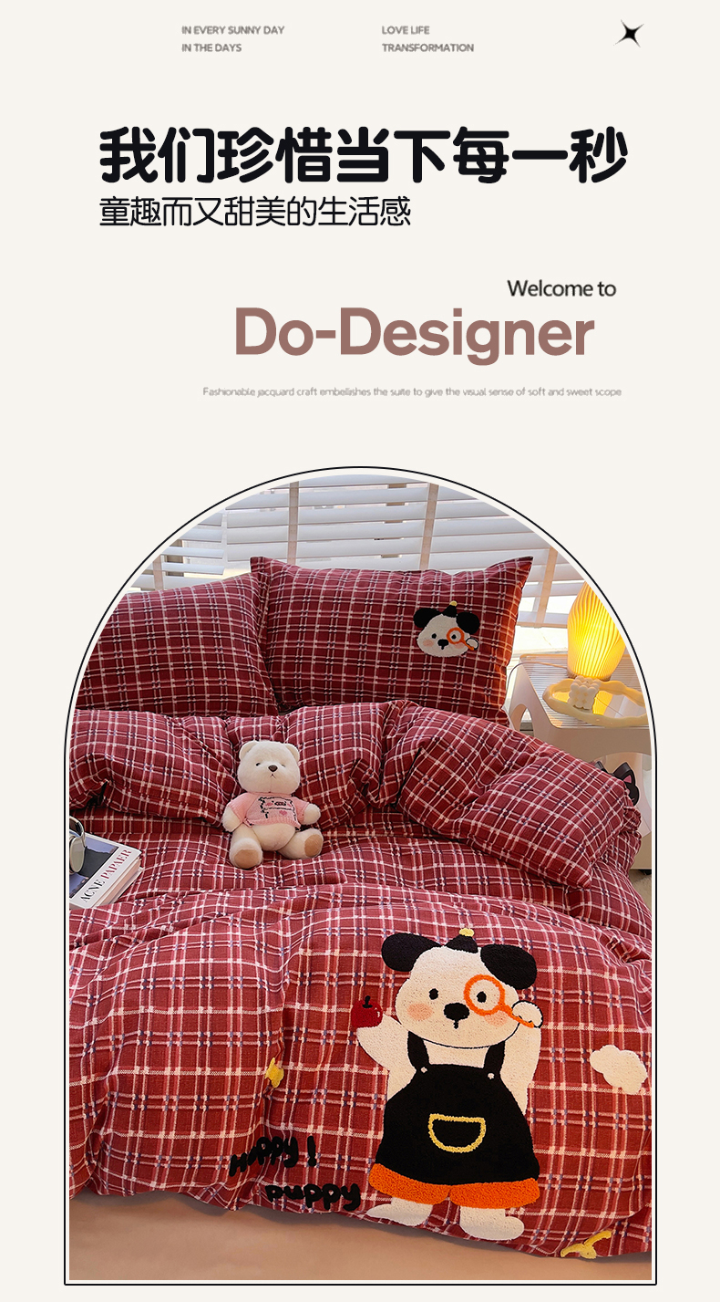 (总)炫拼家纺 2025新款全棉磨毛卡通贴布绣加厚毛巾绣纯棉四件套-曲奇系列,曲奇-苹果狗,曲奇-Good卡皮,曲奇-波点猫,曲奇-好朋友,曲奇-红军熊猫,曲奇-举高高,曲奇-晚安猫