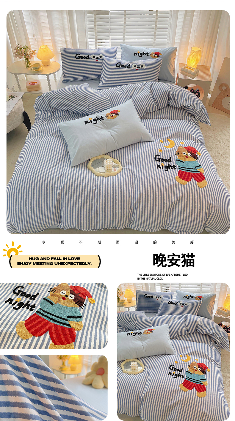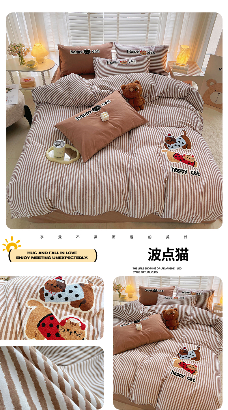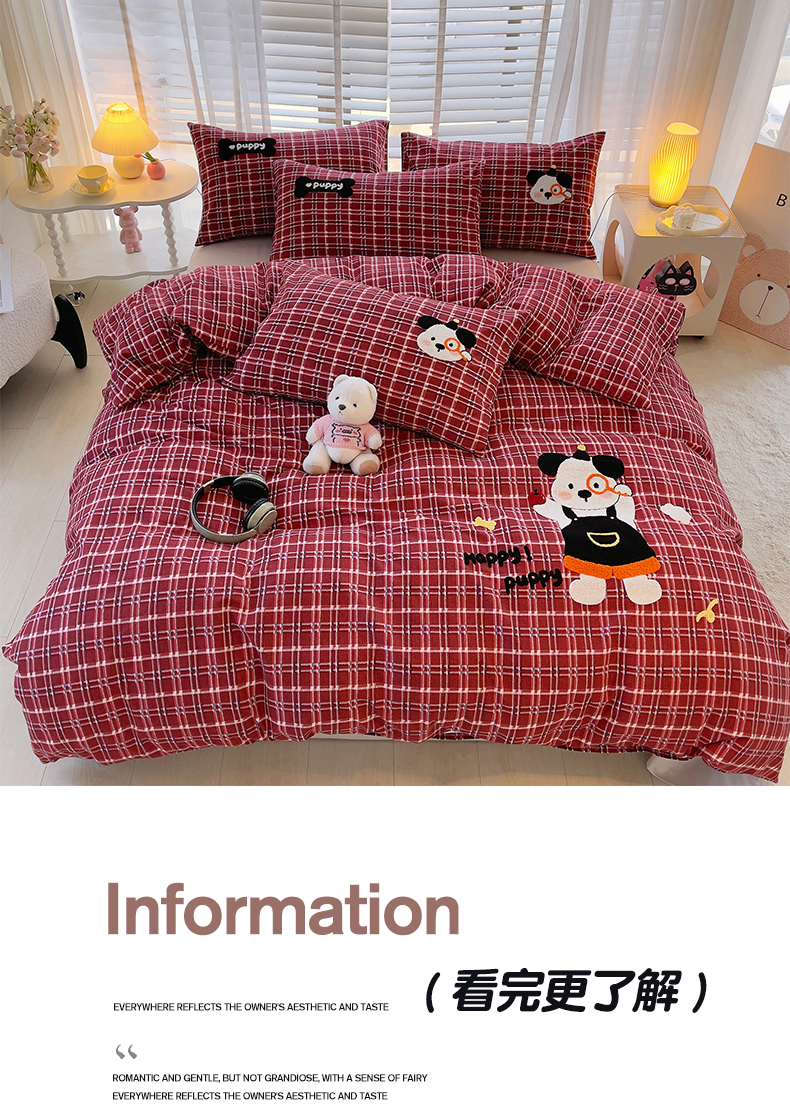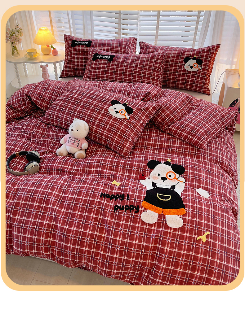 (总)炫拼家纺 2025新款全棉磨毛卡通贴布绣加厚毛巾绣纯棉四件套-曲奇系列,曲奇-苹果狗,曲奇-Good卡皮,曲奇-波点猫,曲奇-好朋友,曲奇-红军熊猫,曲奇-举高高,曲奇-晚安猫