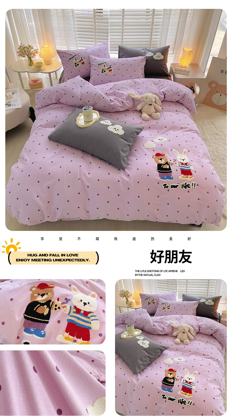 (总)炫拼家纺 2025新款全棉磨毛卡通贴布绣加厚毛巾绣纯棉四件套-曲奇系列