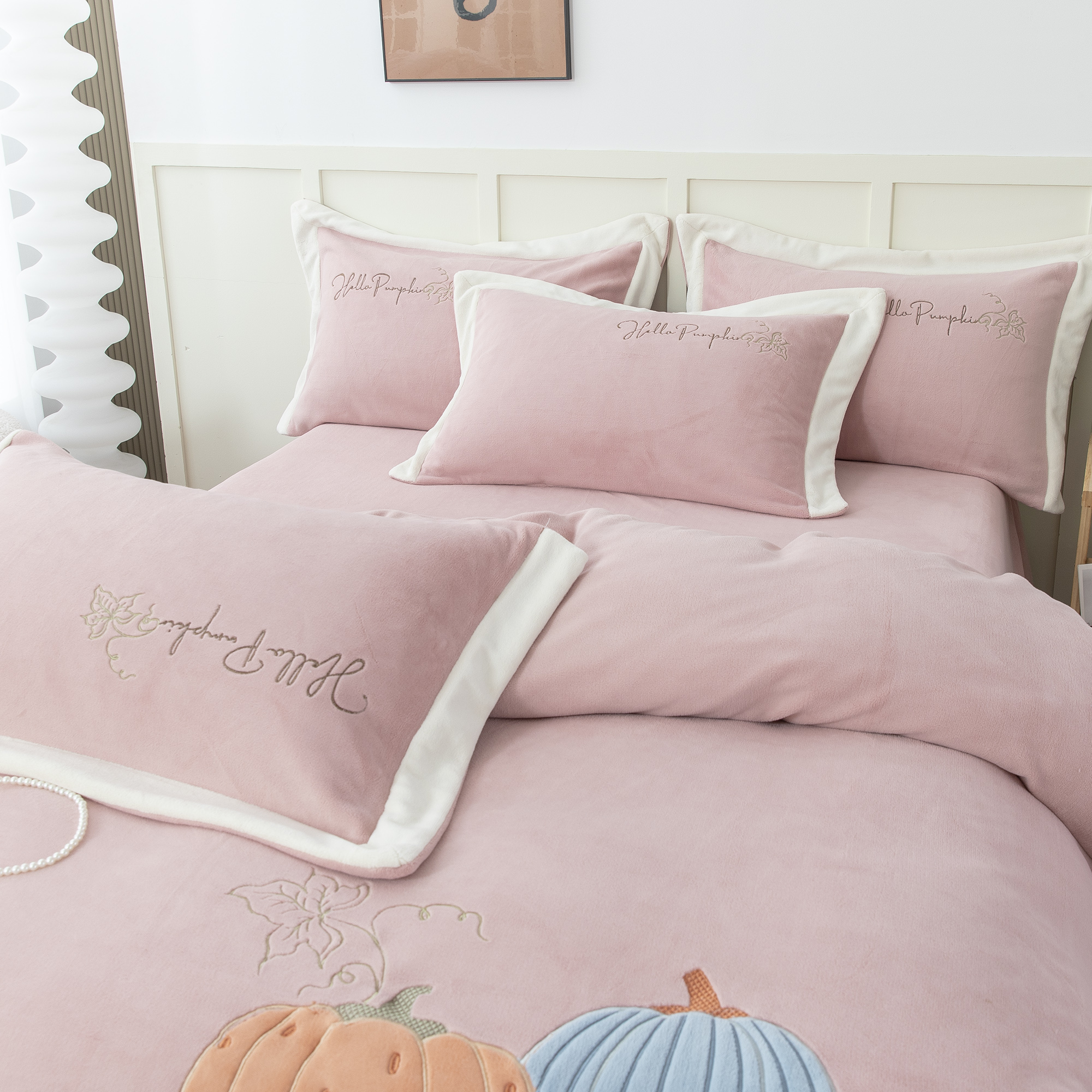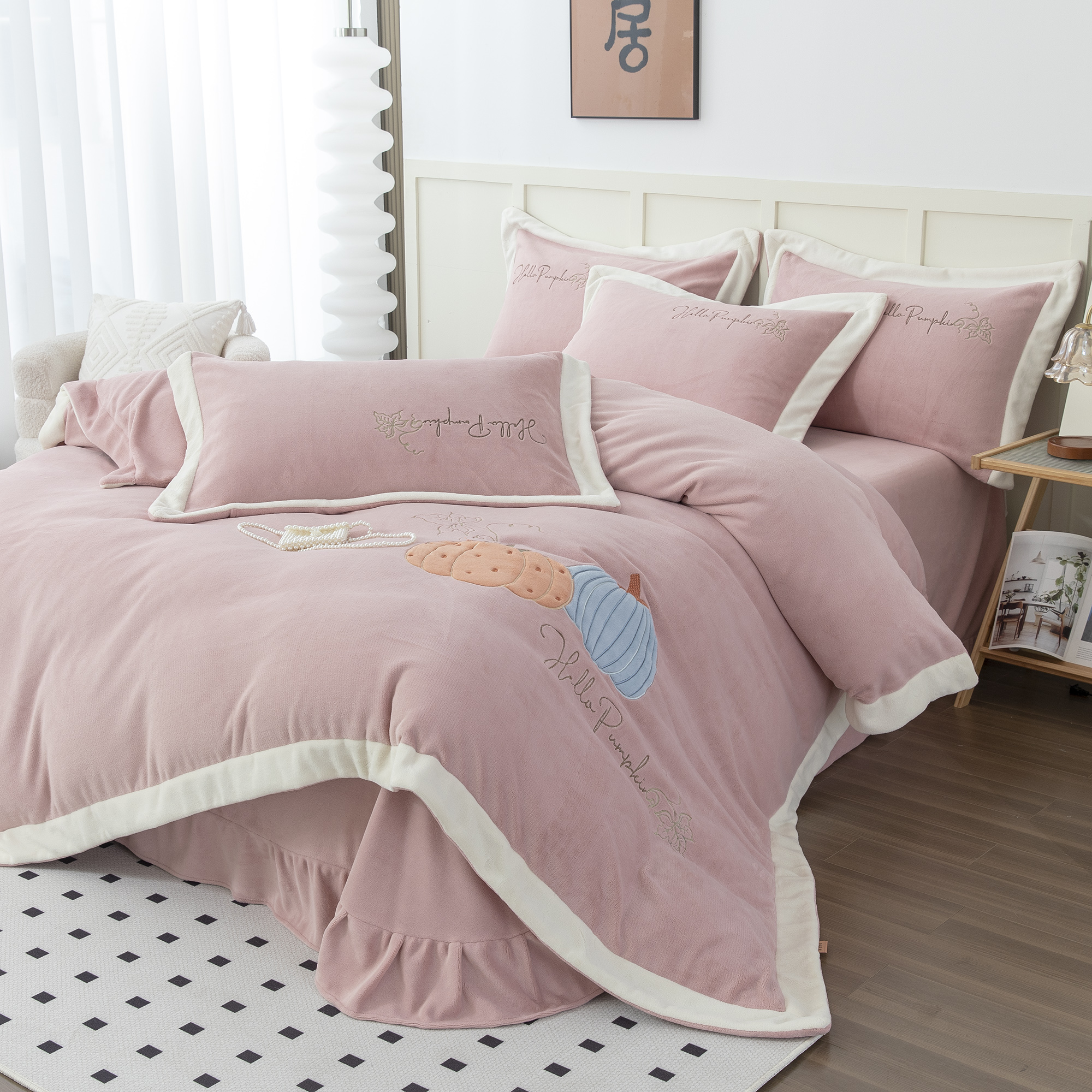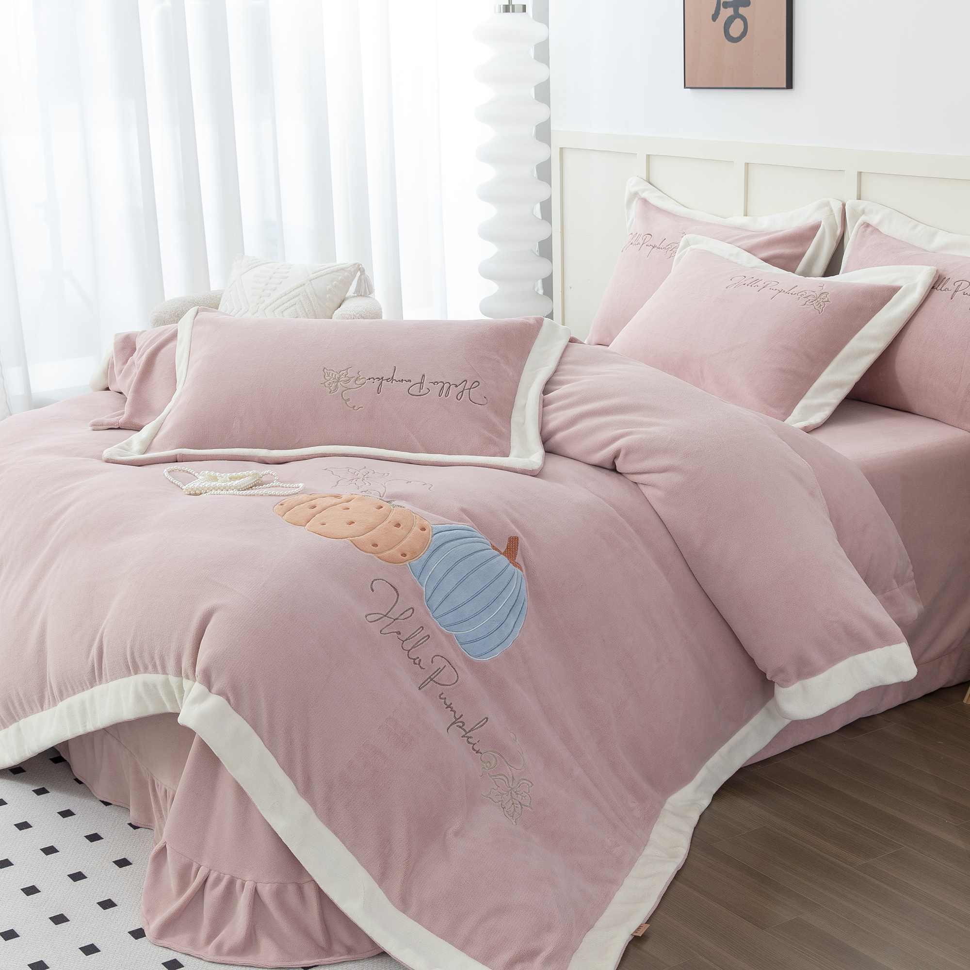 商品名称:贝尔 2025新款南瓜派-全消光拼角刺绣四件套 豆沙粉