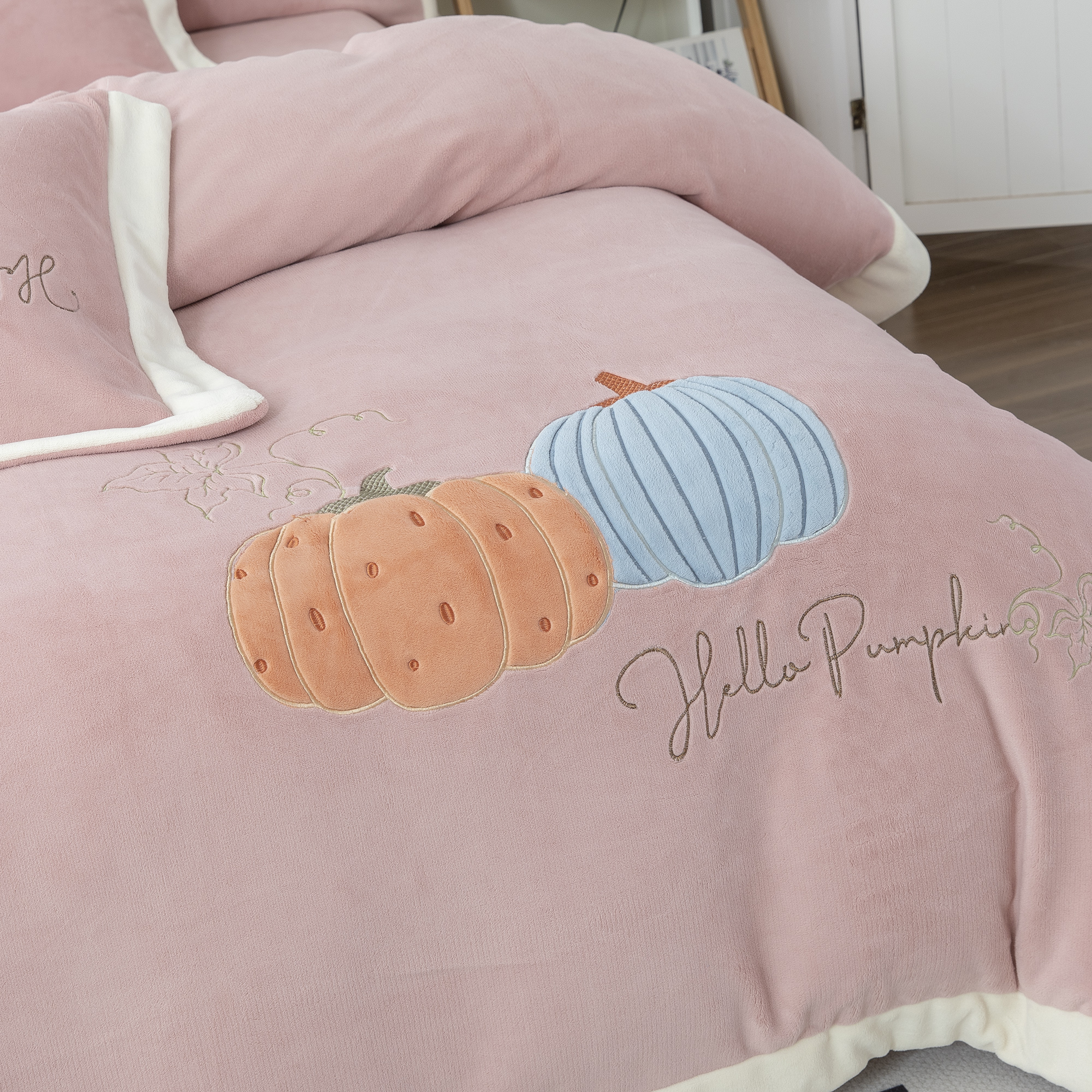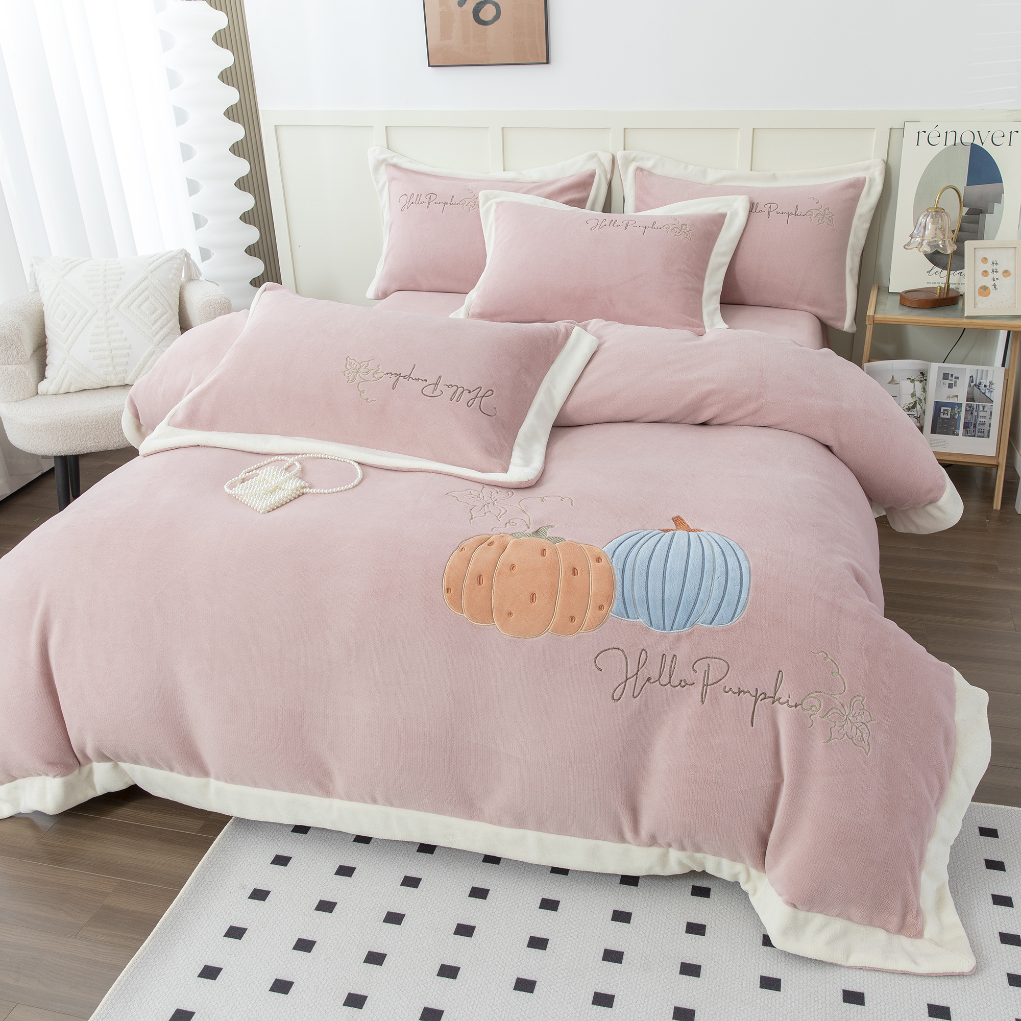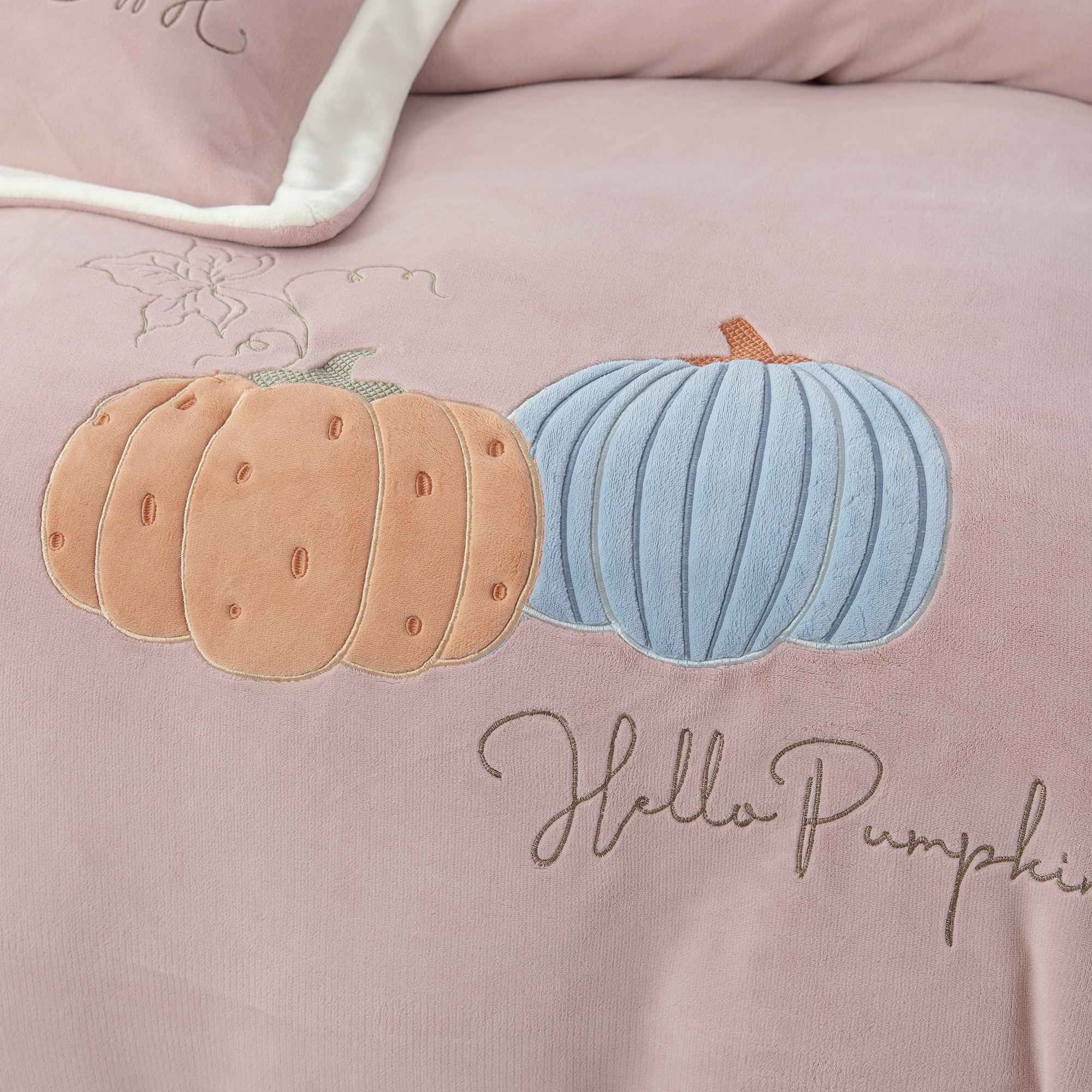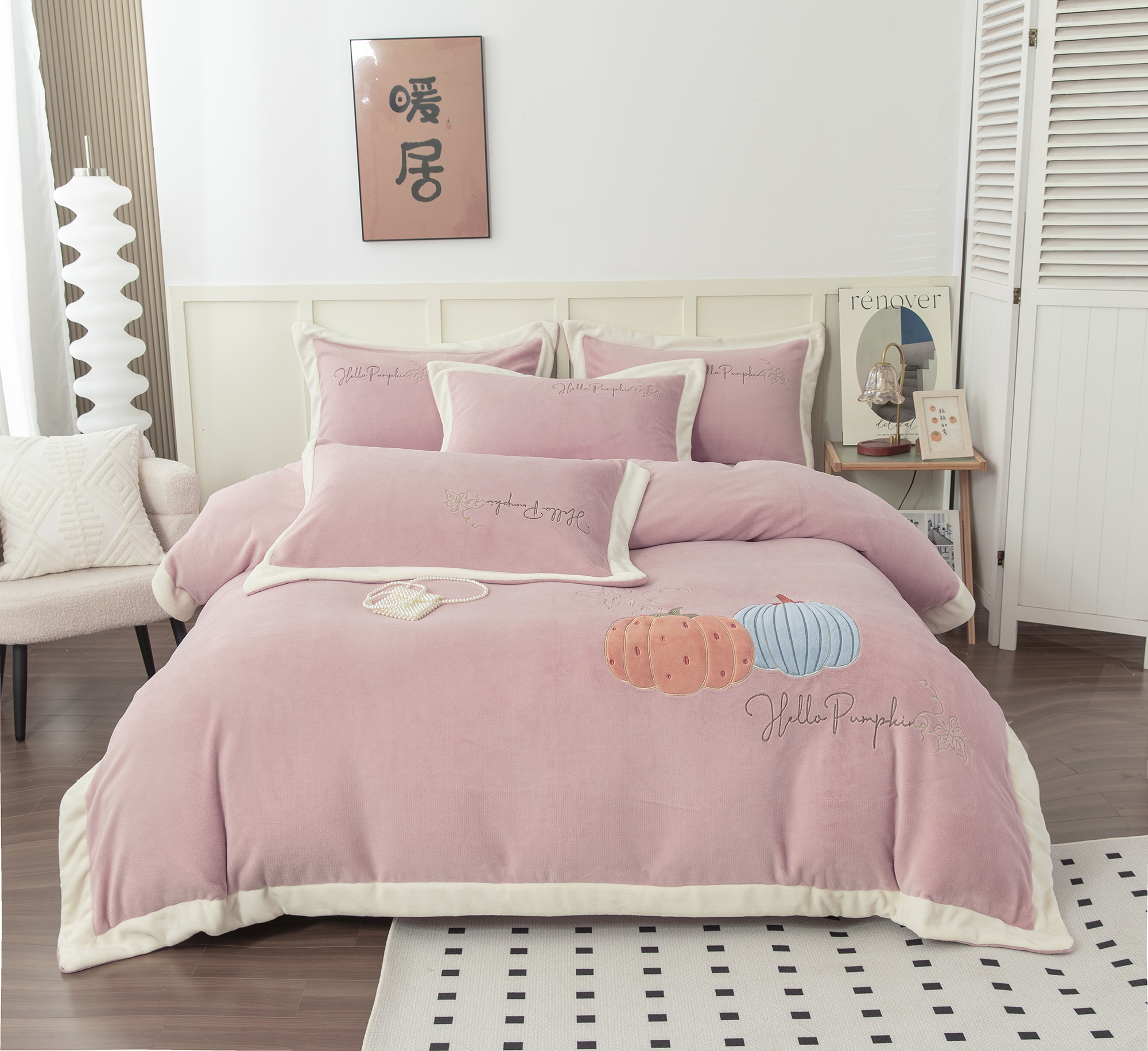 商品名称:贝尔 2025新款南瓜派-全消光拼角刺绣四件套 豆沙粉