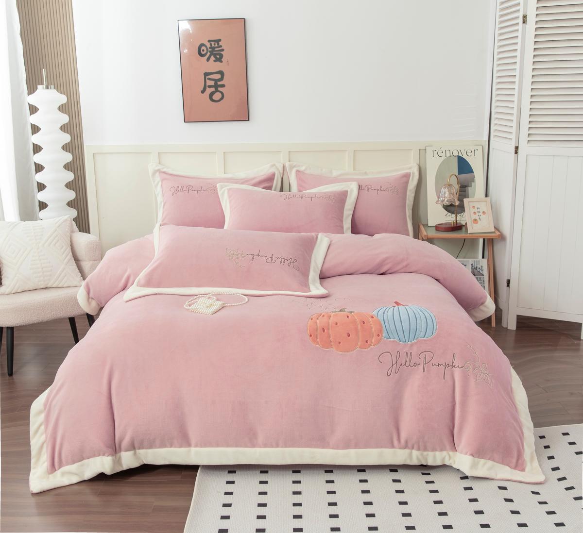 (总)贝尔 2025新款纯色高克重牛奶绒刺绣四件套-羽魅,羽魅-豆沙,羽魅-粉色,羽魅-高级灰,羽魅-蓝色,羽魅-浅绿,羽魅-玉色