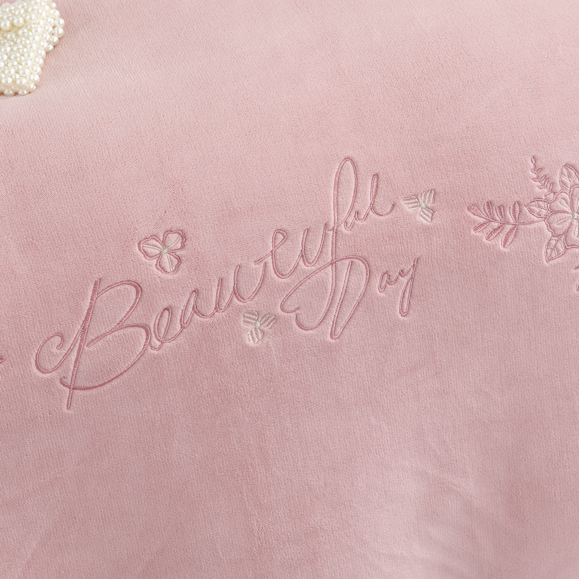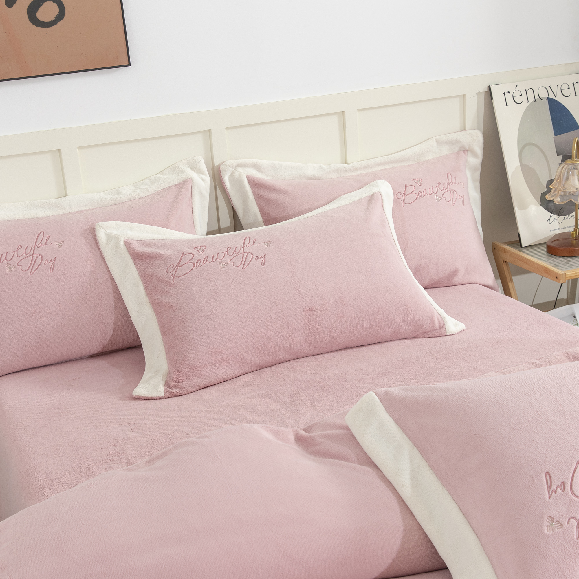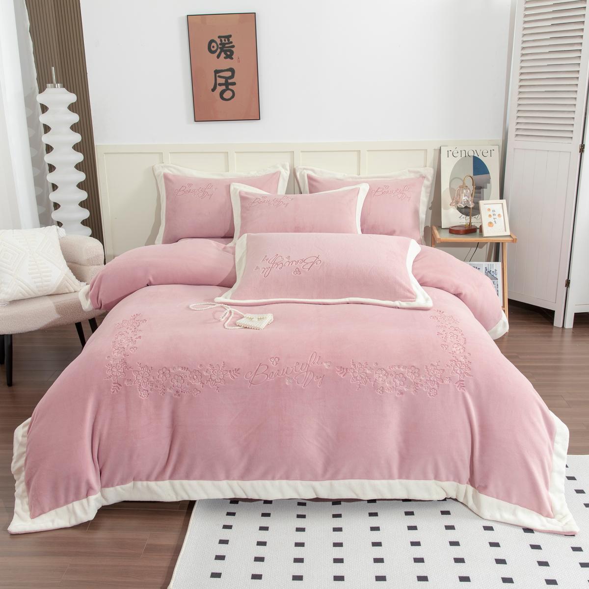 贝尔 2025新款纯色高克重牛奶绒刺绣四件套-羽魅 羽魅-豆沙,羽魅-豆沙