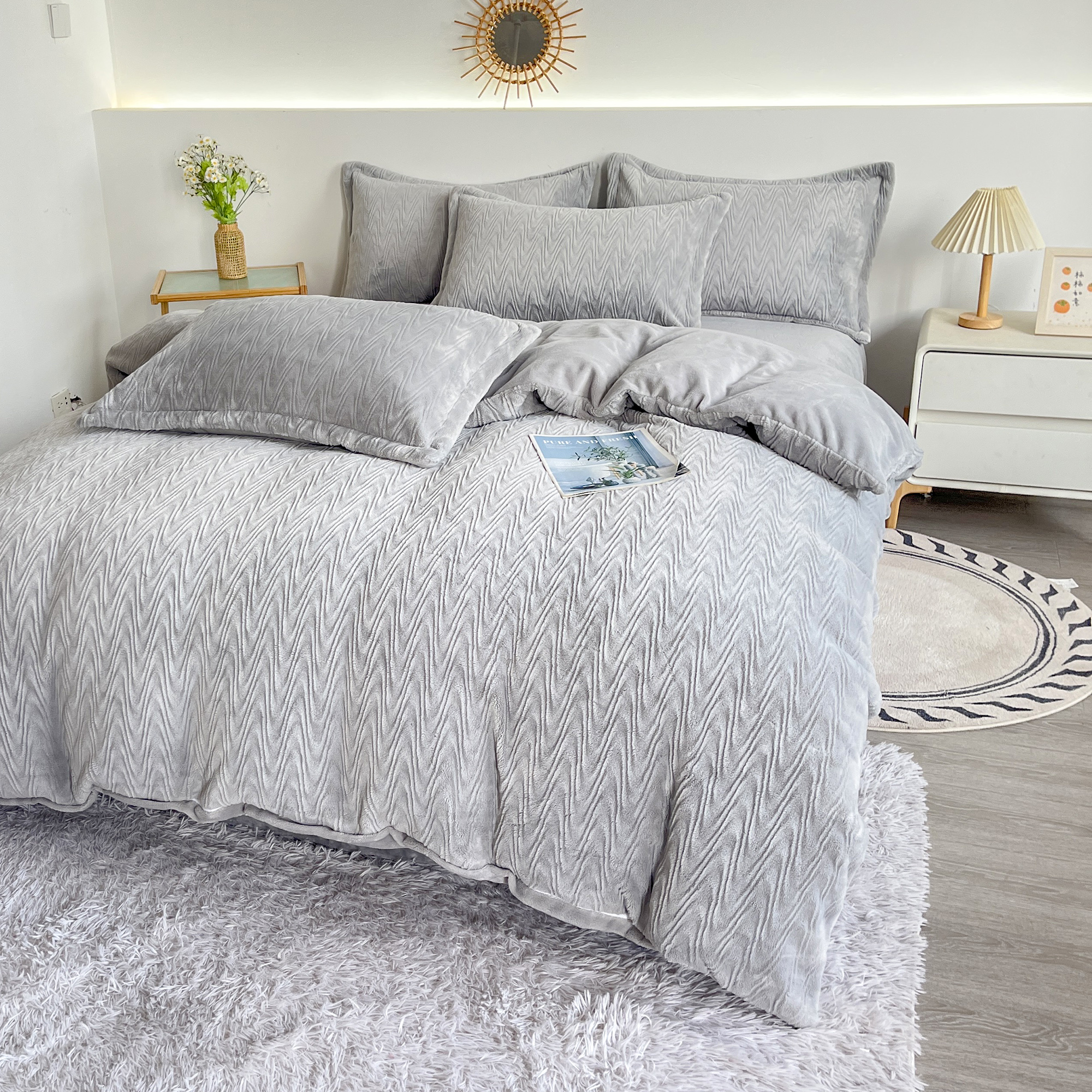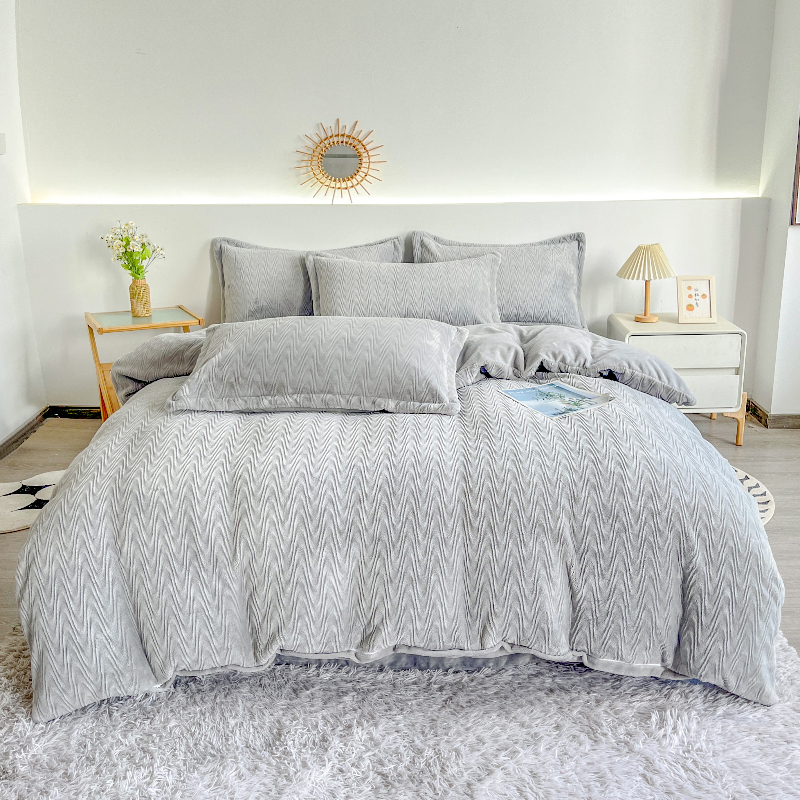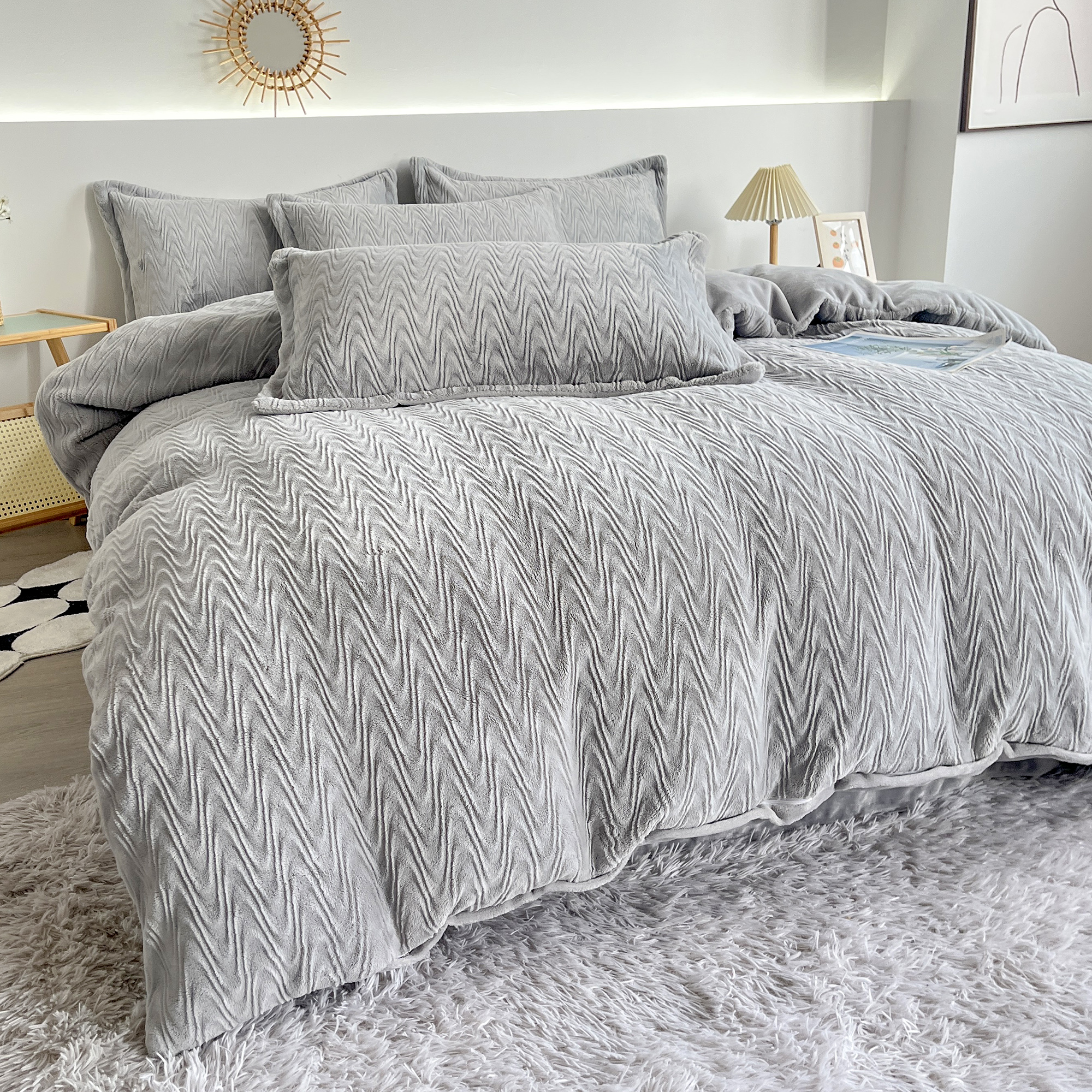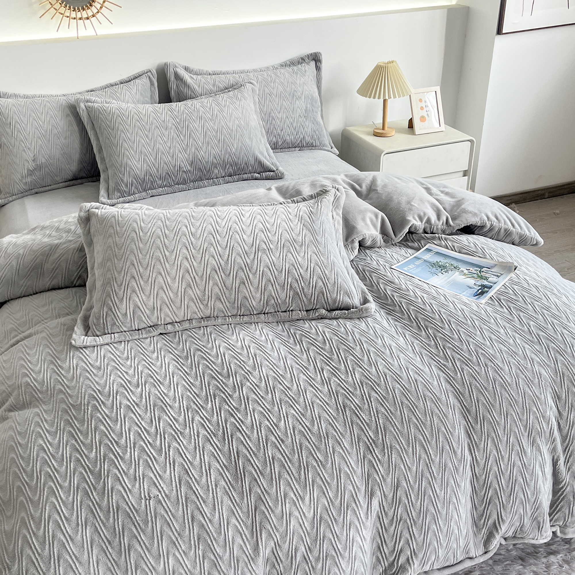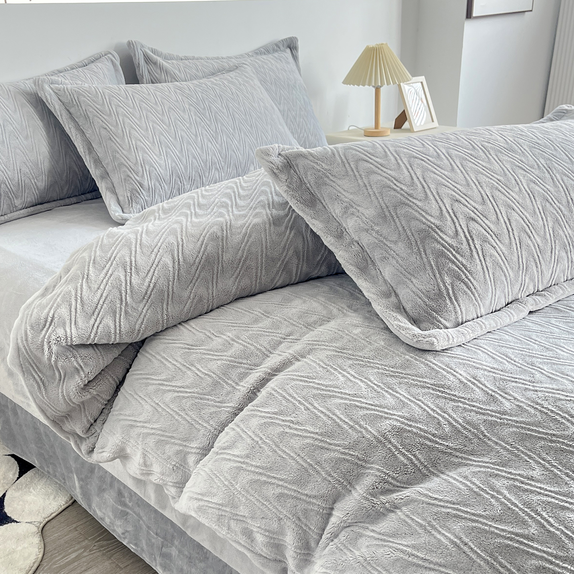 2025新款全消光皮草绒纯色高克重四件套(赠送拎袋)——波纹 银灰