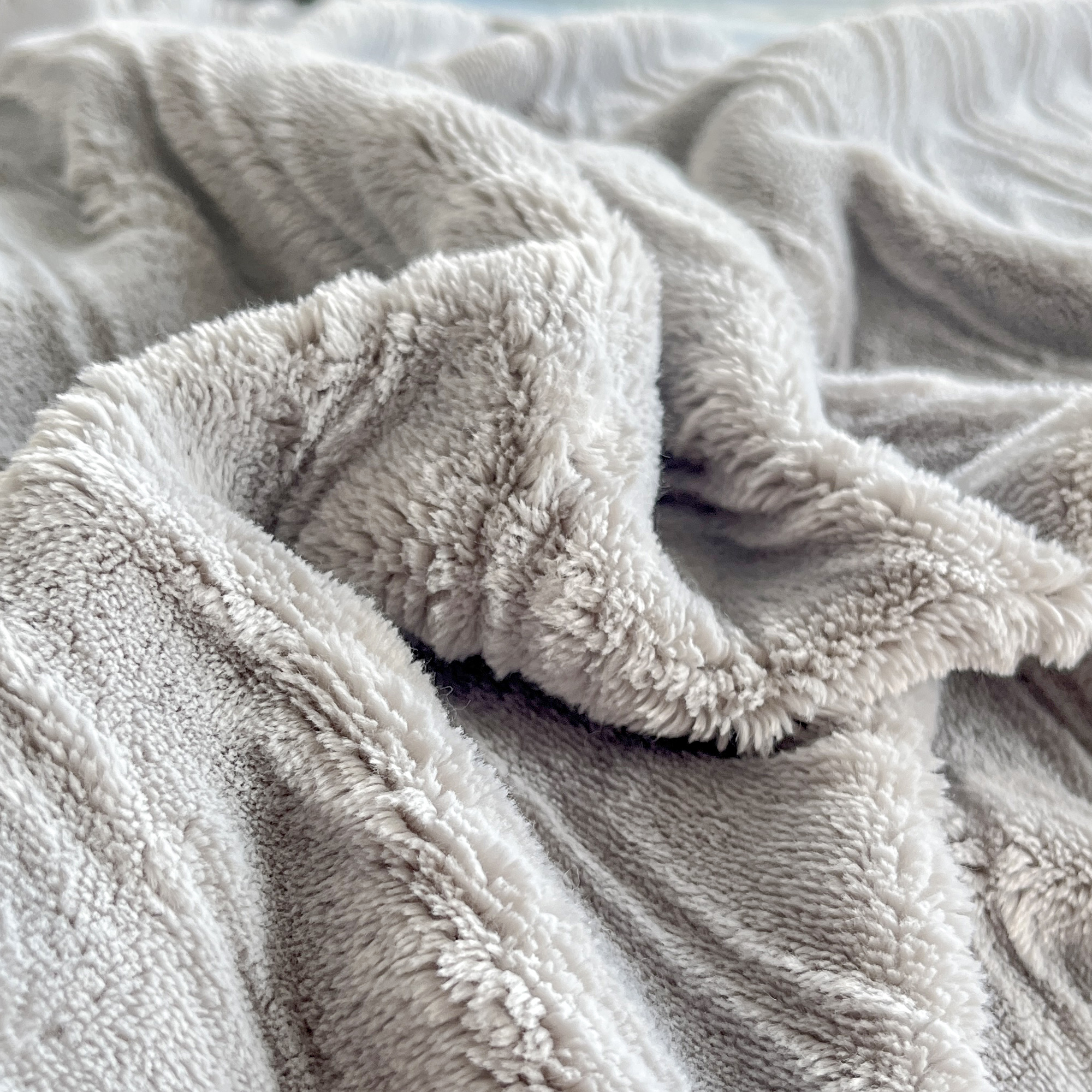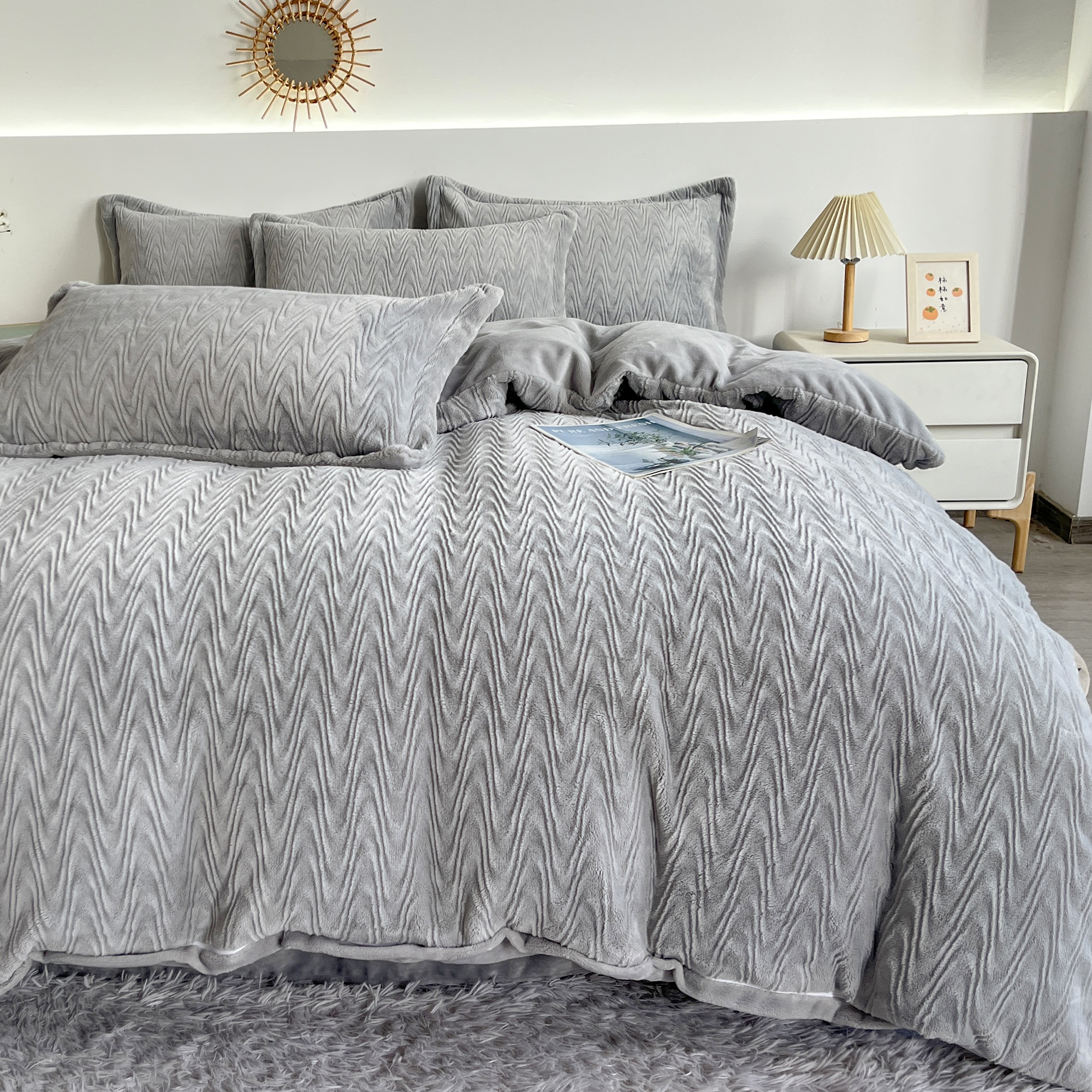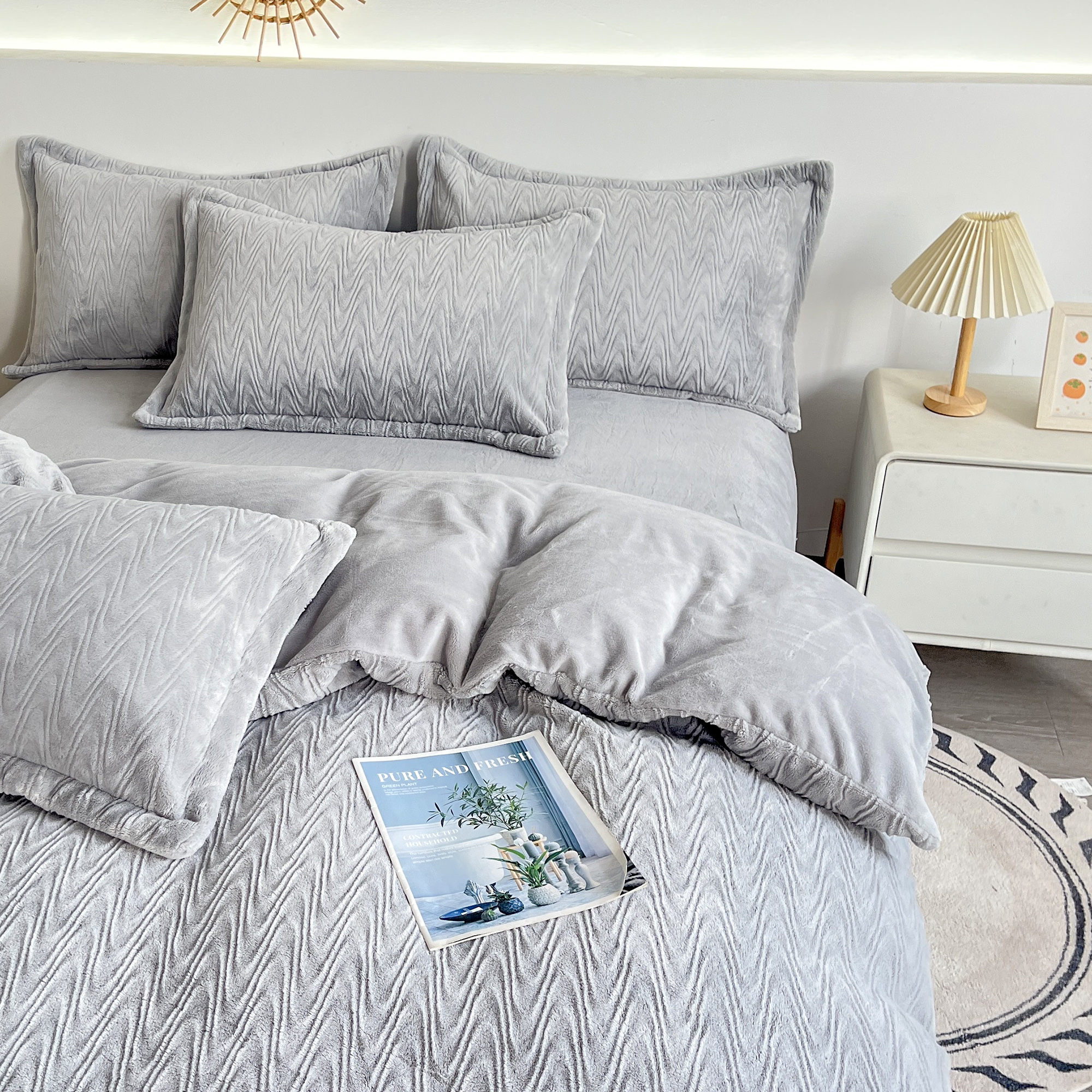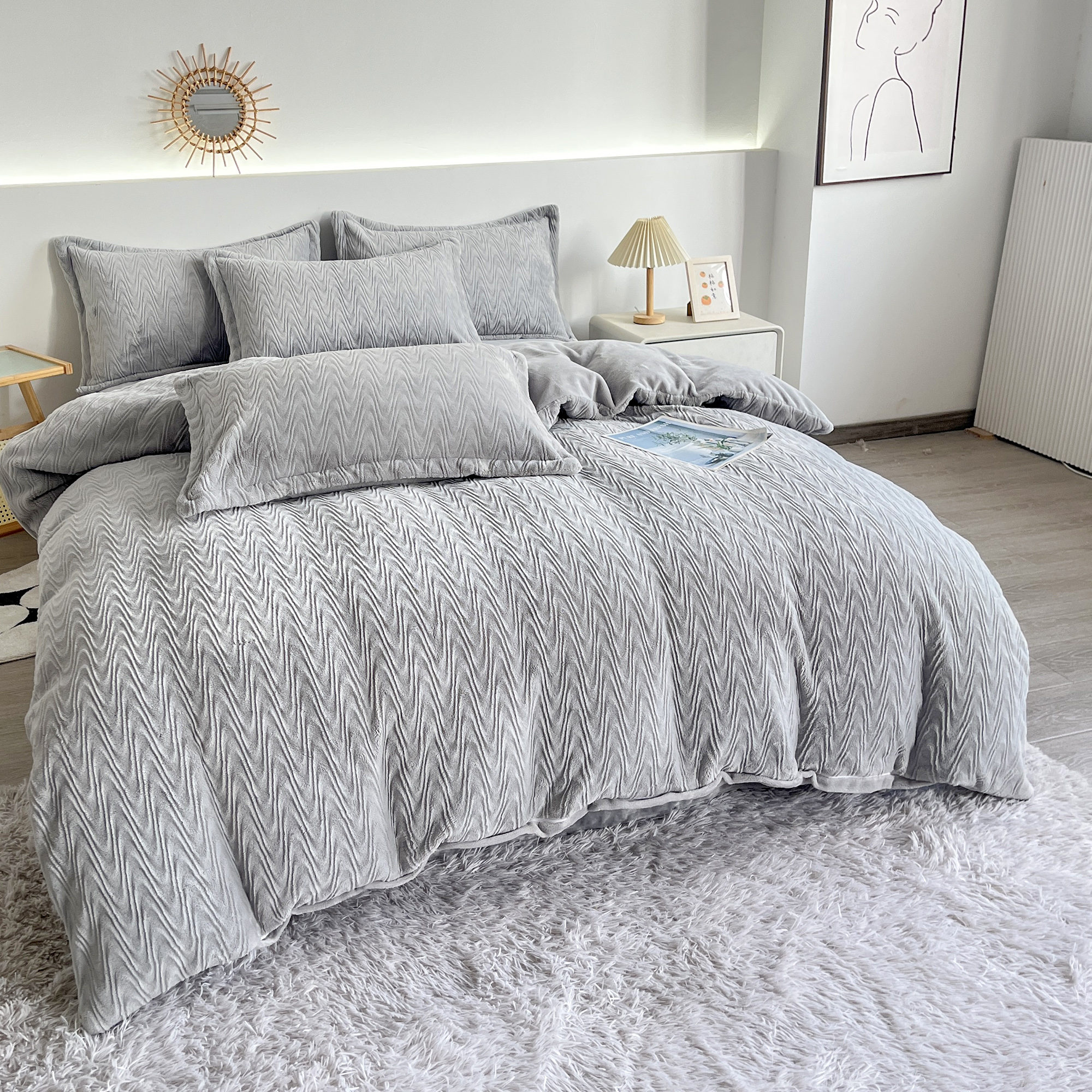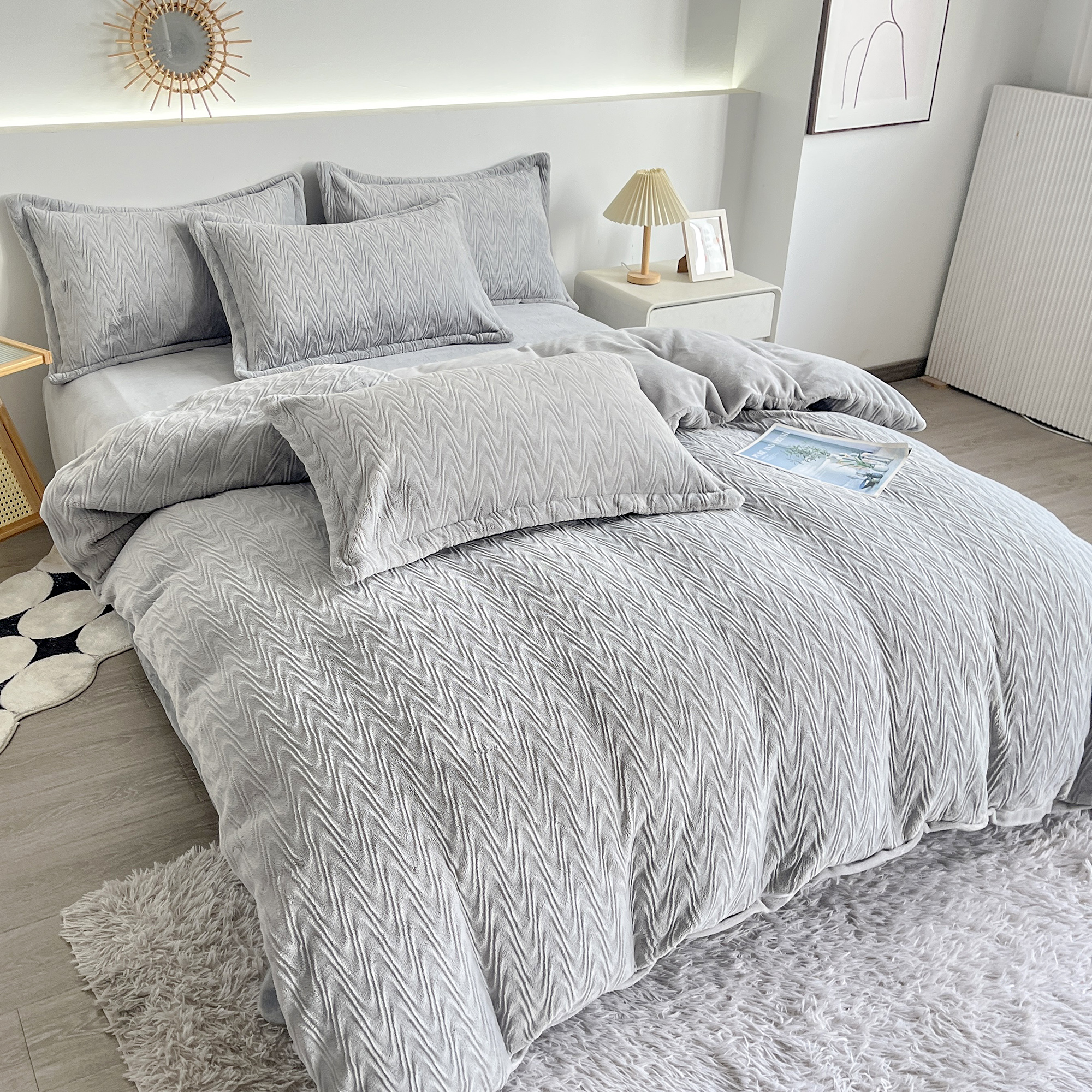 2025新款全消光皮草绒纯色高克重四件套(赠送拎袋)——波纹 银灰