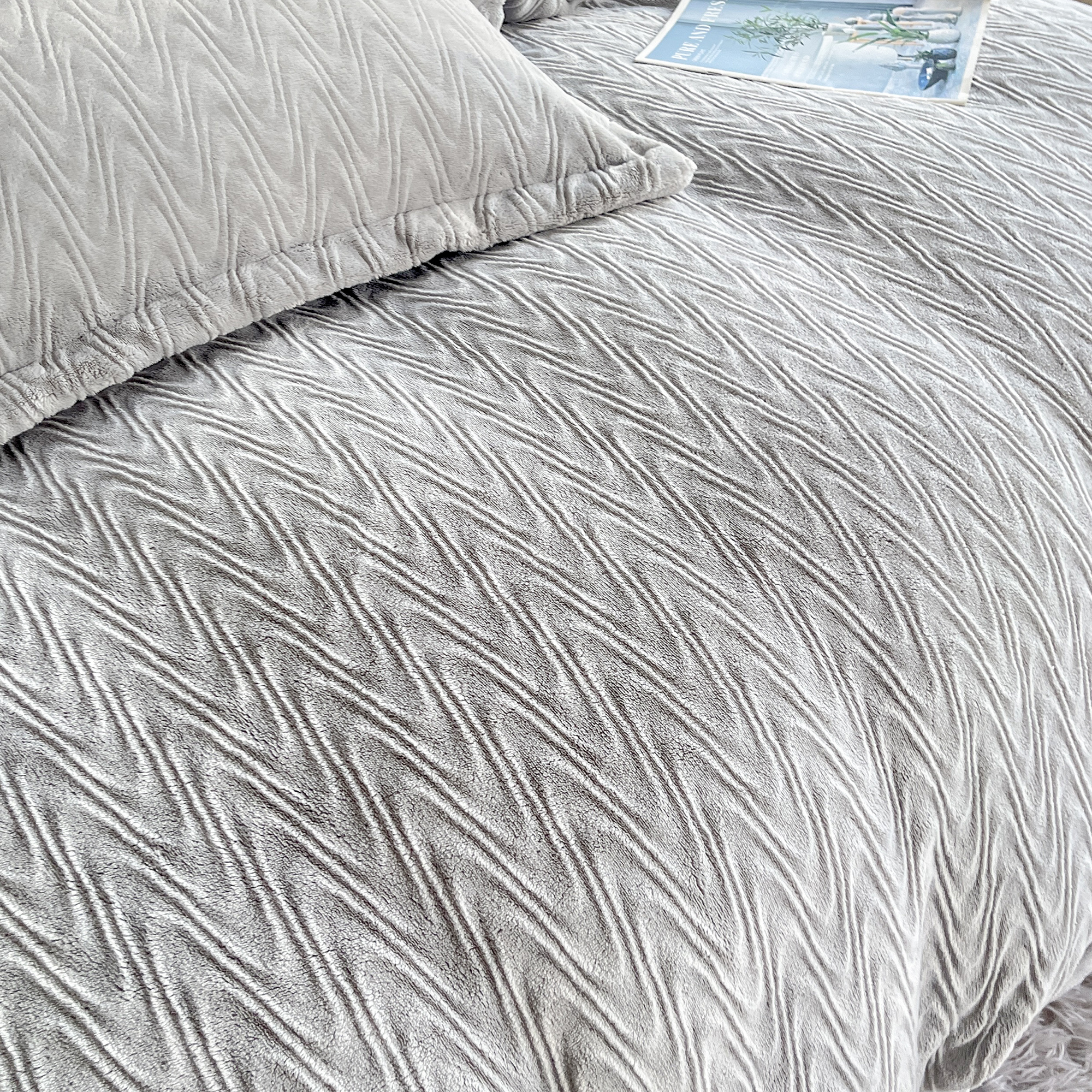 商品名称:2025新款全消光皮草绒纯色高克重四件套(赠送拎袋)——波纹 银灰