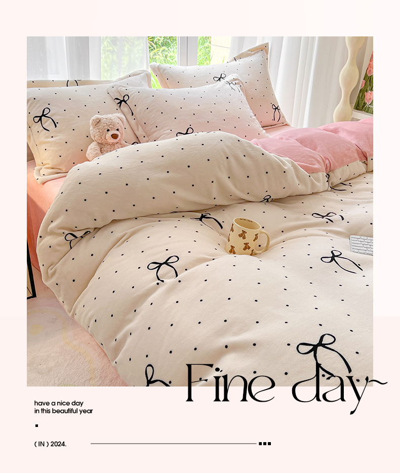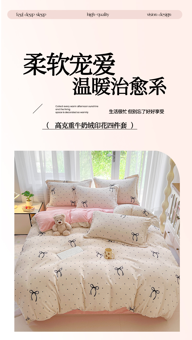 当前位置: 91家纺网 > 商品网购 > 床品套件 > 四件套 > 牛奶绒四件套 > 妖妖家纺 2025新款高克重200克牛奶绒印花四件套 波点萌蝶