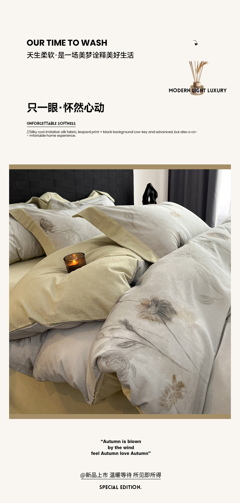 当前位置: 91家纺网 > 商品网购 > 床品套件 > 四件套 > 全棉普通四件套 > 慕晨 2025新款全棉纯棉磨毛轻奢数码印花直播热款四件套 婚秋集