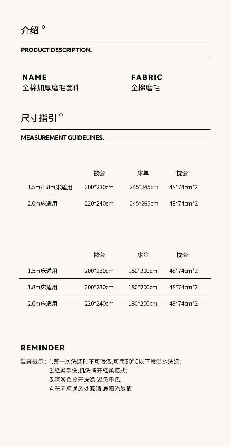 【床笠款】1.5四件套-被套200x230 | ¥190.00 |
