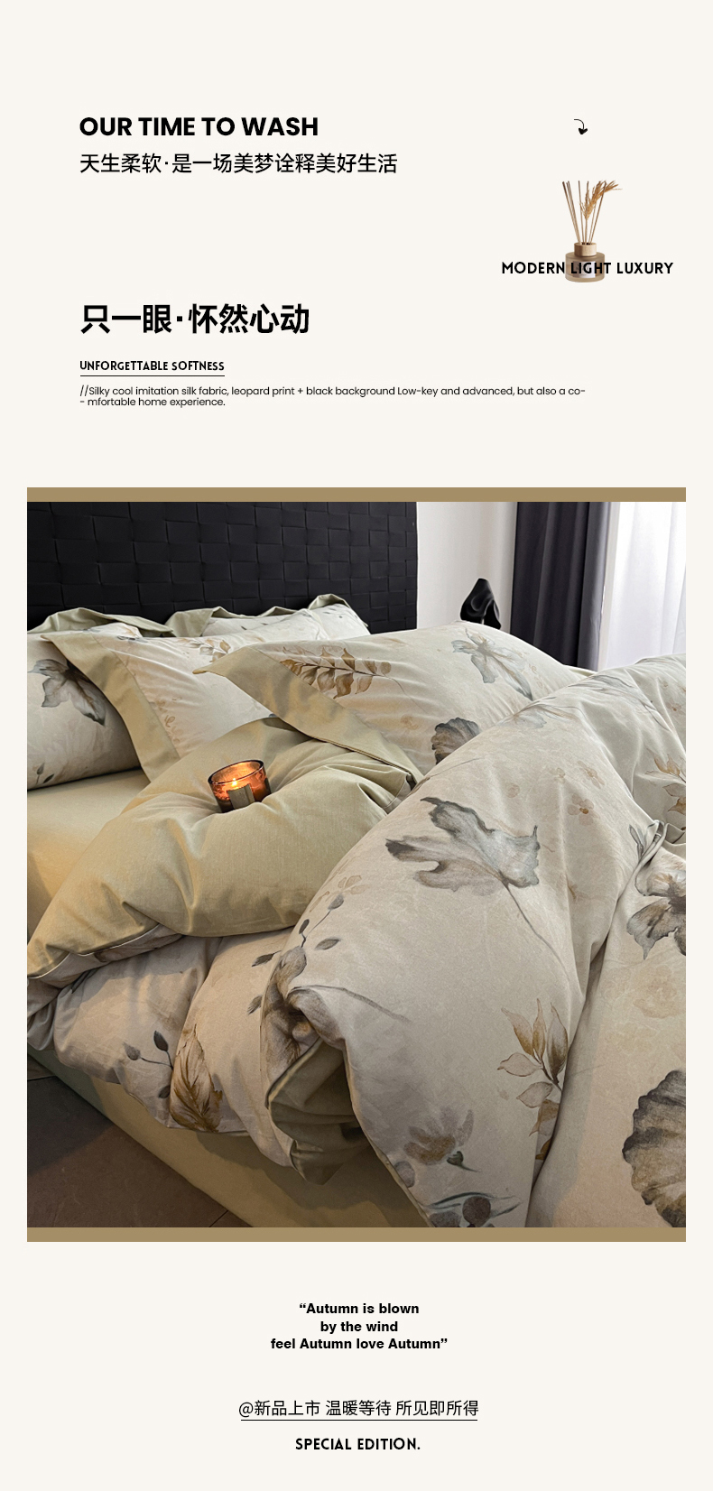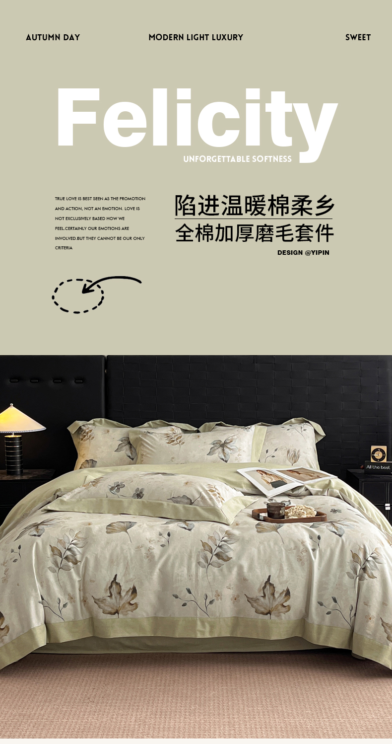 当前位置: 91家纺网 > 商品网购 > 床品套件 > 四件套 > 全棉普通四件套 > 慕晨 2025新款全棉纯棉磨毛轻奢数码印花直播热款四件套 衫叶