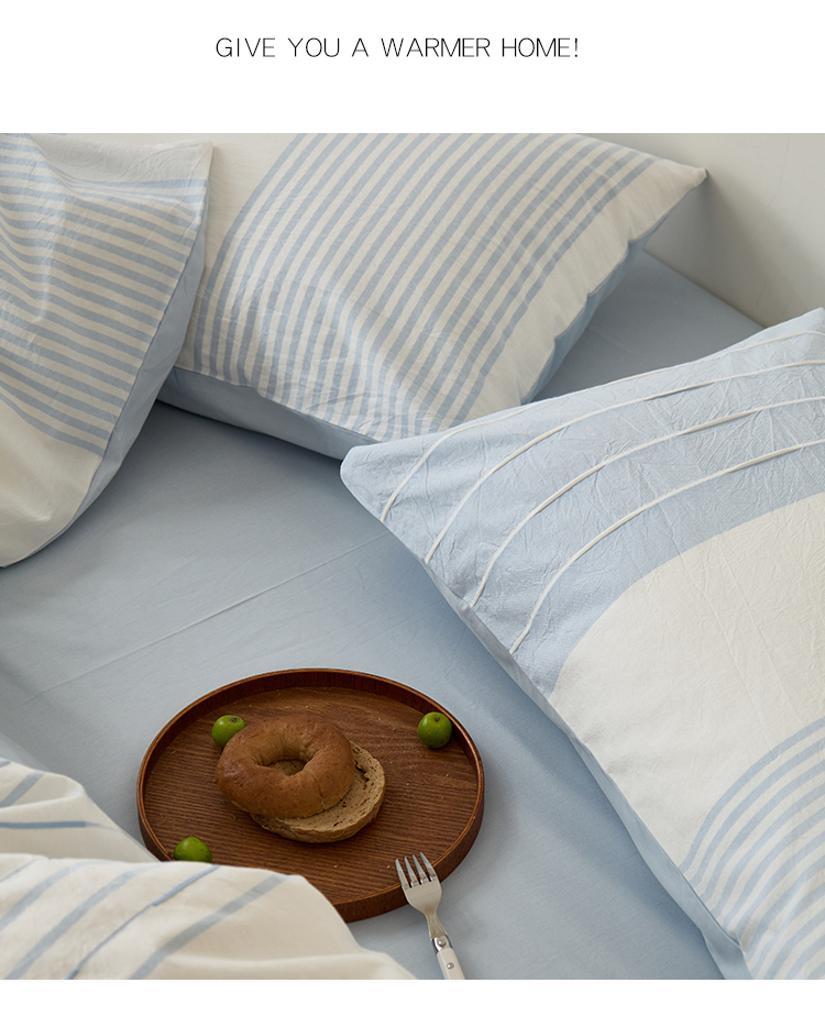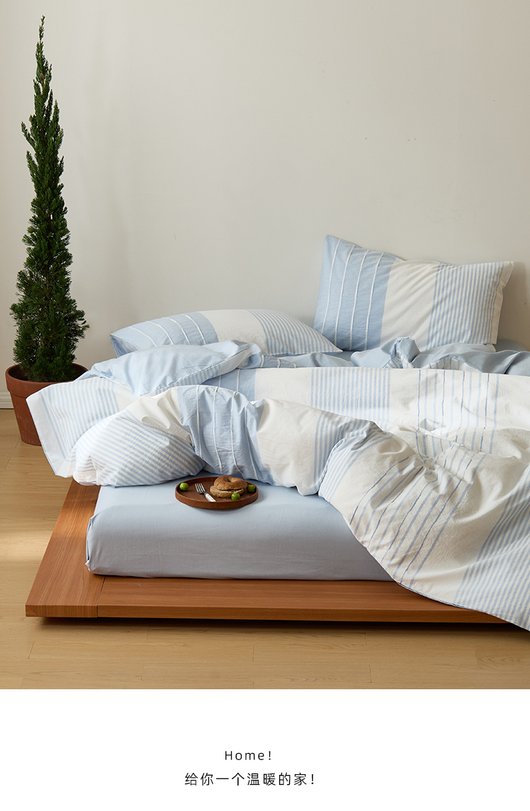 商品名称:Mr.pig猪先生水洗棉 2025新款全棉色织立体四件套 嫩蓝