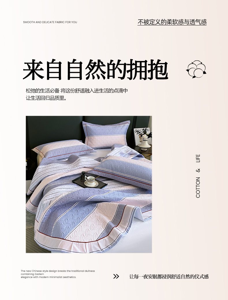 • 91家纺网 家纺一手货源 找家纺 畅畅家纺 2025春夏款13372全棉纯棉活性印花床盖夹棉加厚绗缝防滑床罩 芙光