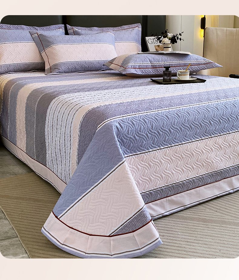 畅畅家纺 2025春夏款13372全棉纯棉活性印花床盖夹棉加厚绗缝防滑床罩 芙光