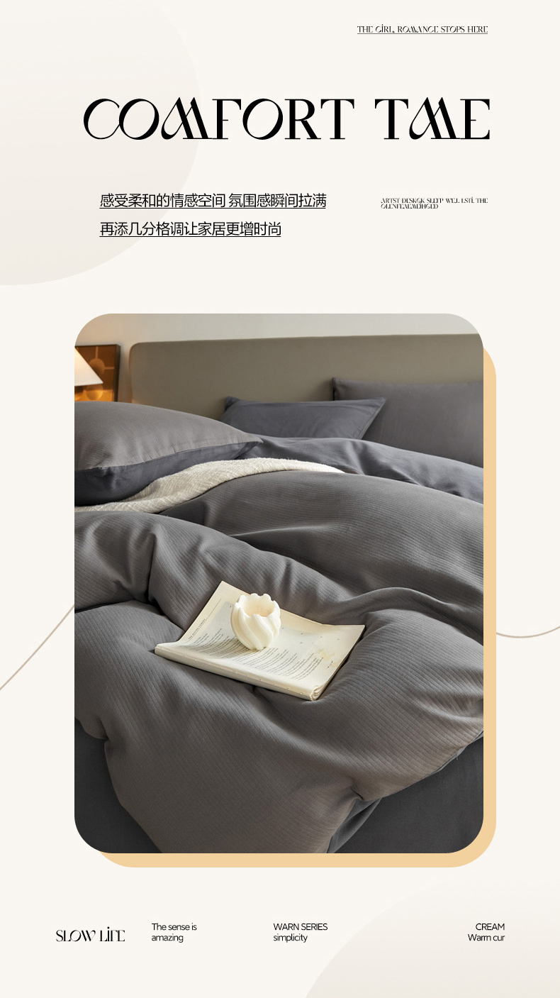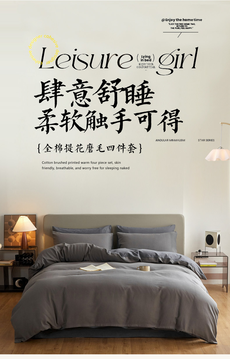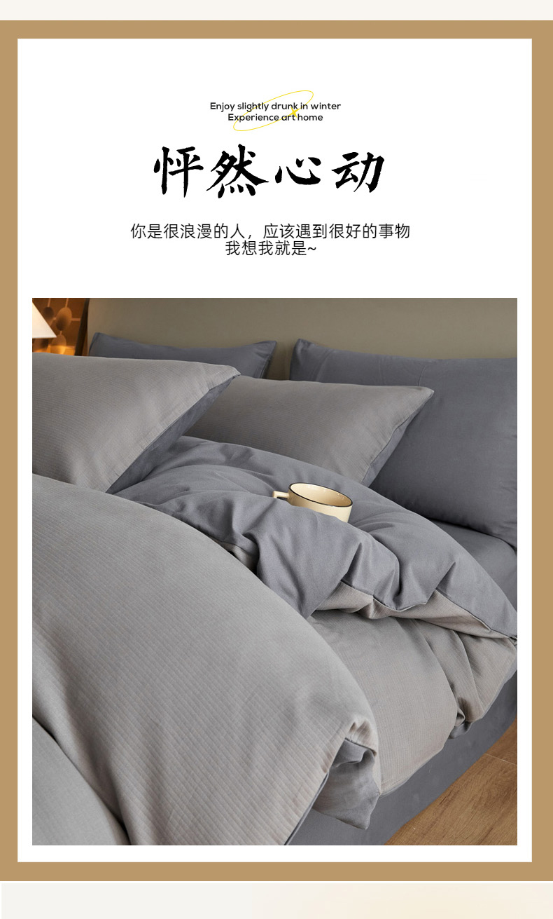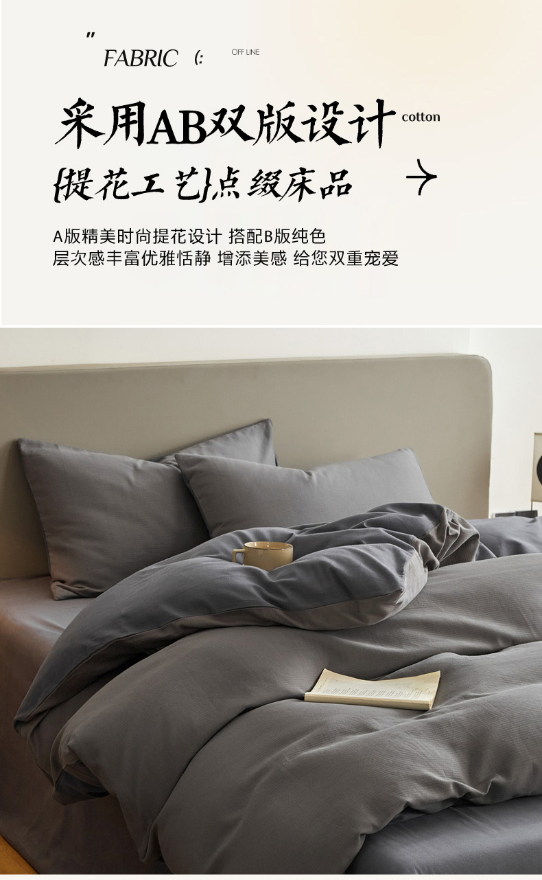 当前位置: 91家纺网 > 商品网购 > 床品套件 > 四件套 > 全棉活性四件套 > 慕尚家纺 2025新款100s全棉提花磨毛四件套 香灰+深灰色