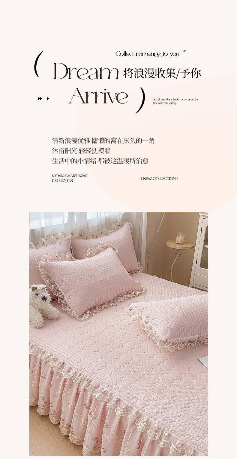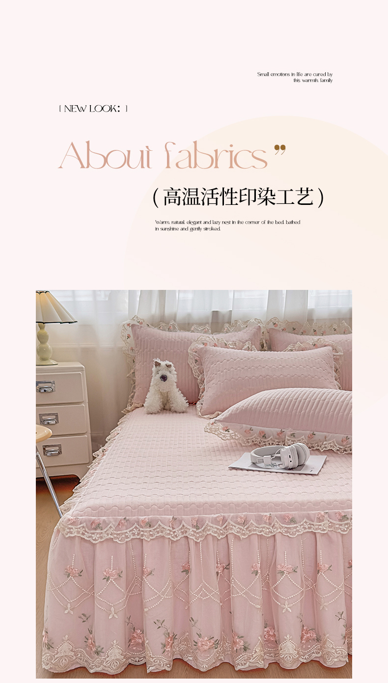 当前位置: 91家纺网 > 商品网购 > 床品套件 > 四件套 > 化纤活性四件套 > 鼎丰家纺 2025新款皱皱纱床裙-蜜恋系列 浅玉