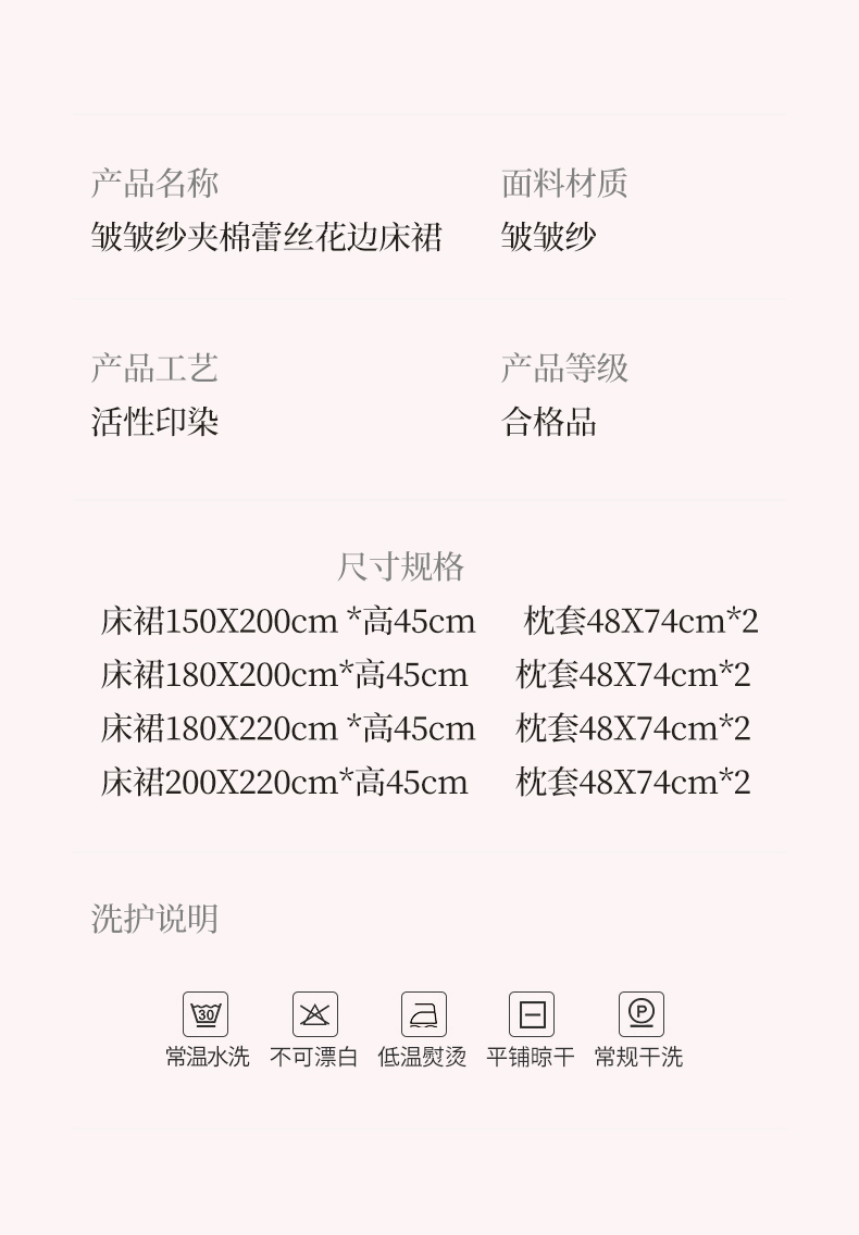 床裙三件套:180*220cm+枕套一对 | ¥110.00 |