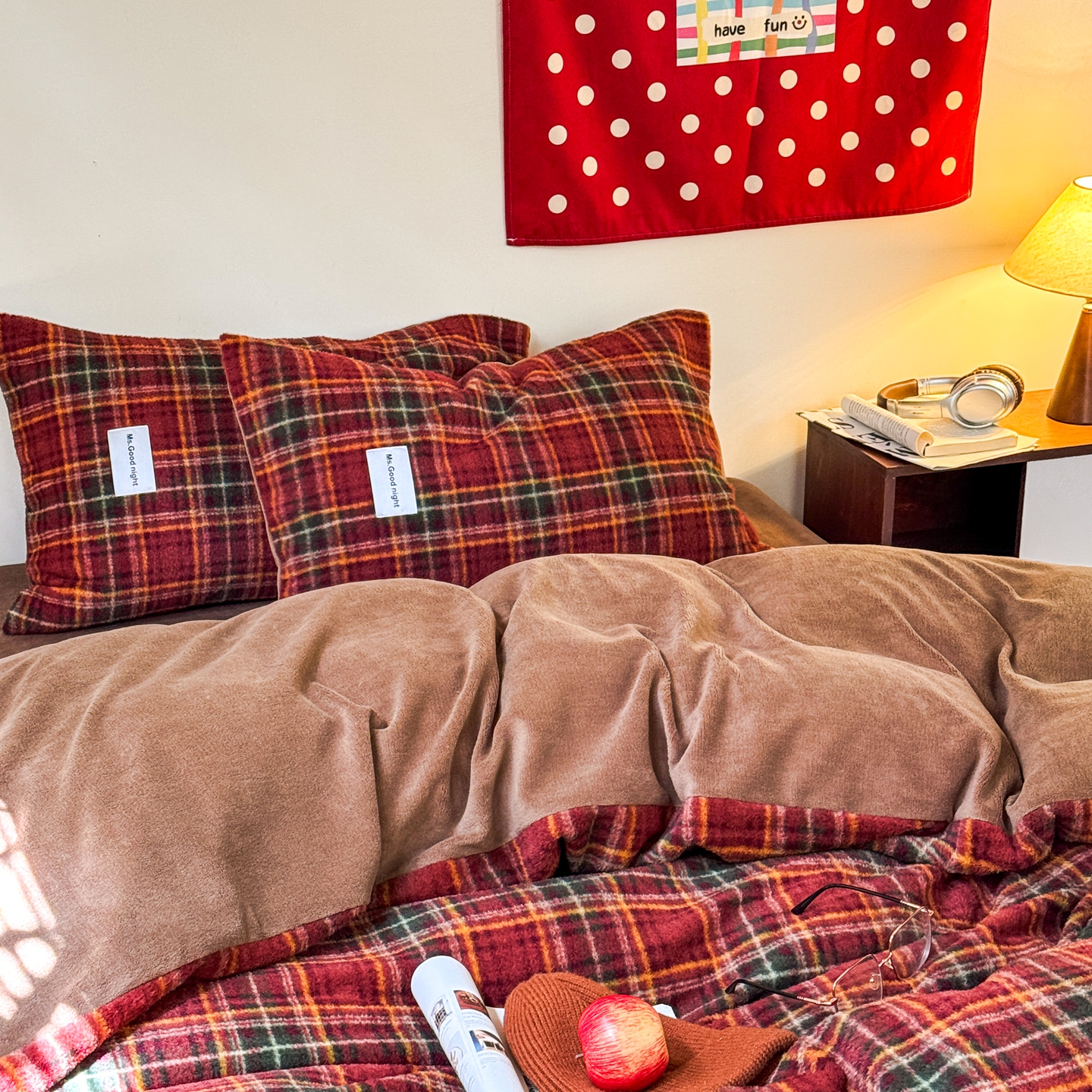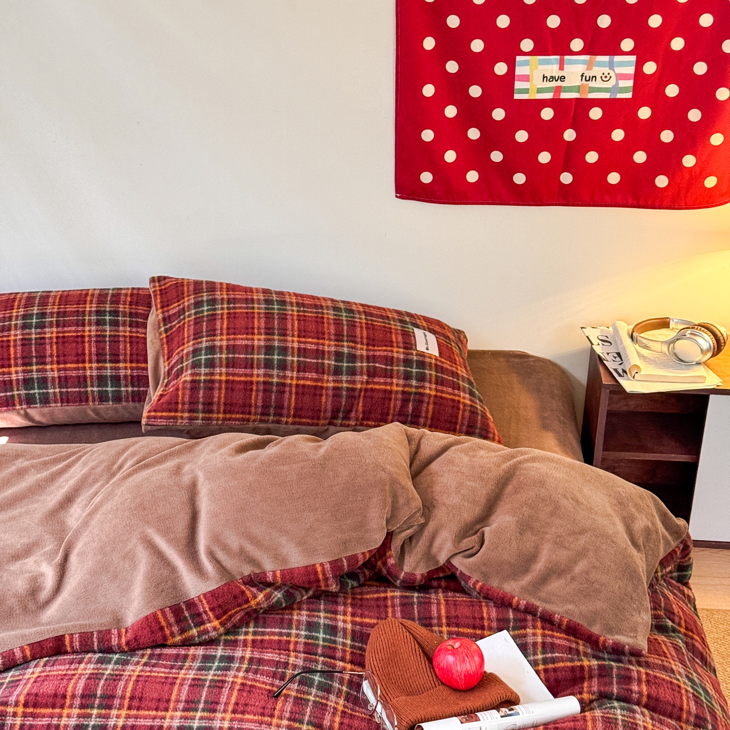 当前位置: 91家纺网 > 商品网购 > 床品套件 > 四件套 > 牛奶绒四件套 > 蜜宿 2025新款仿羊绒牛奶绒四件套-格纹款 栗绒焦糖