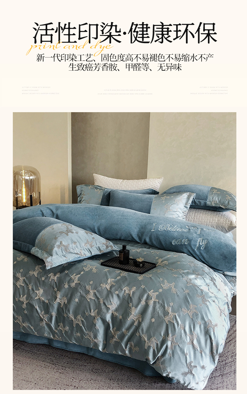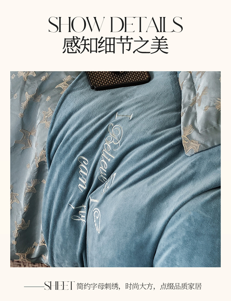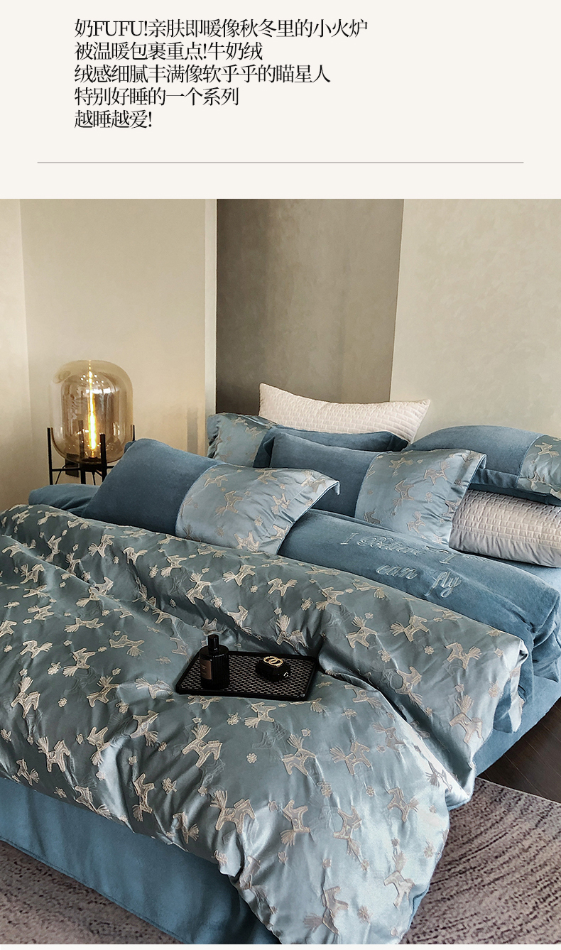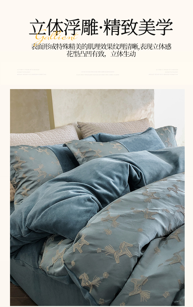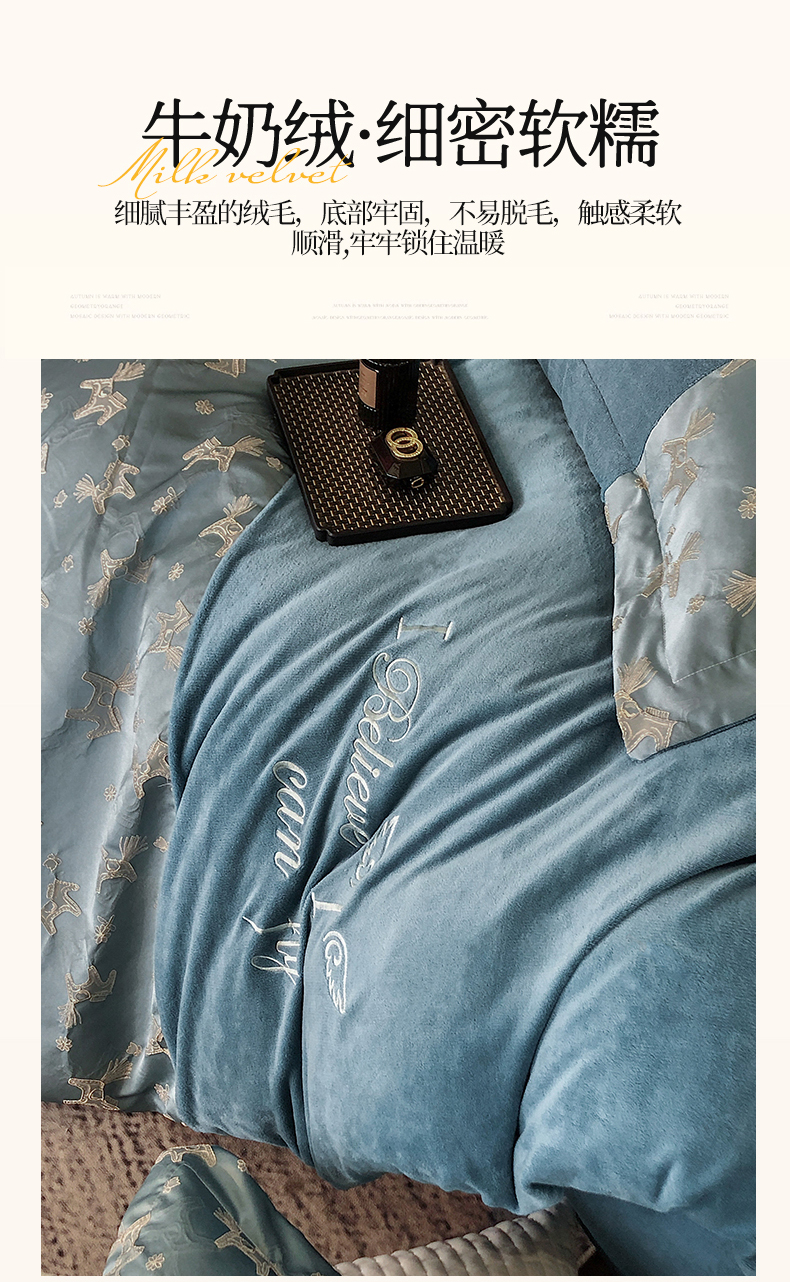 商品名称:换种生活 2025新款A类浮雕牛奶绒刺绣四件套 马上有钱花-兰