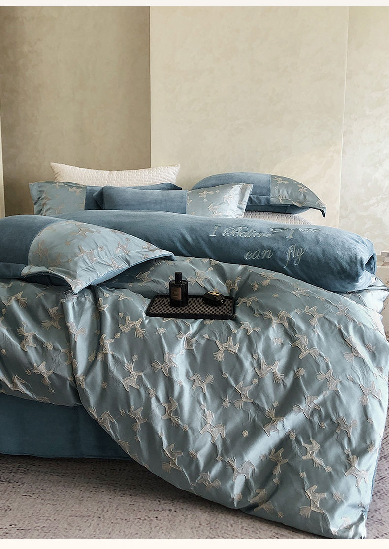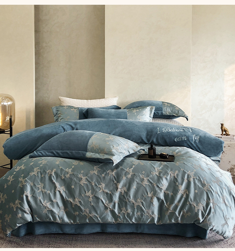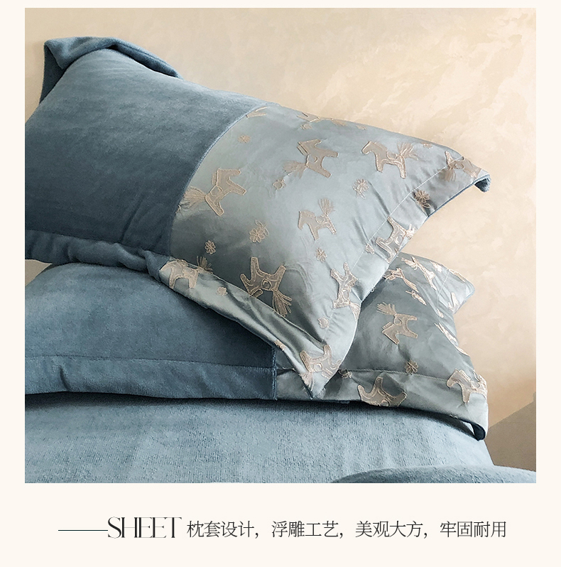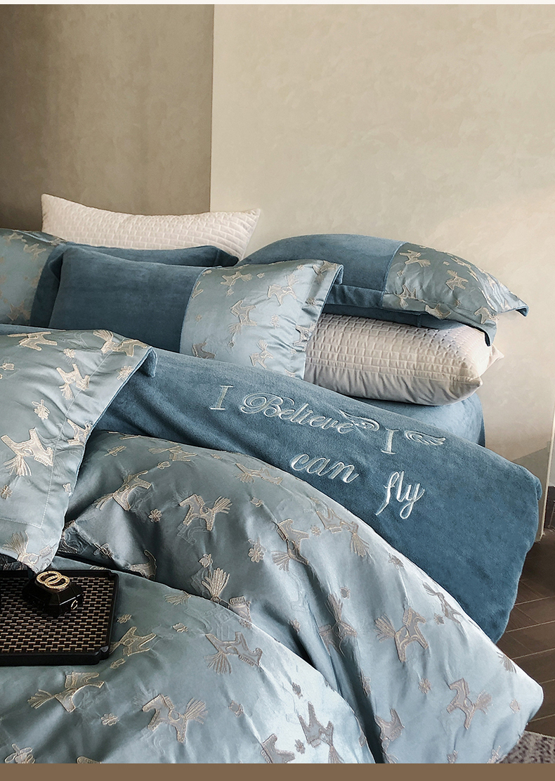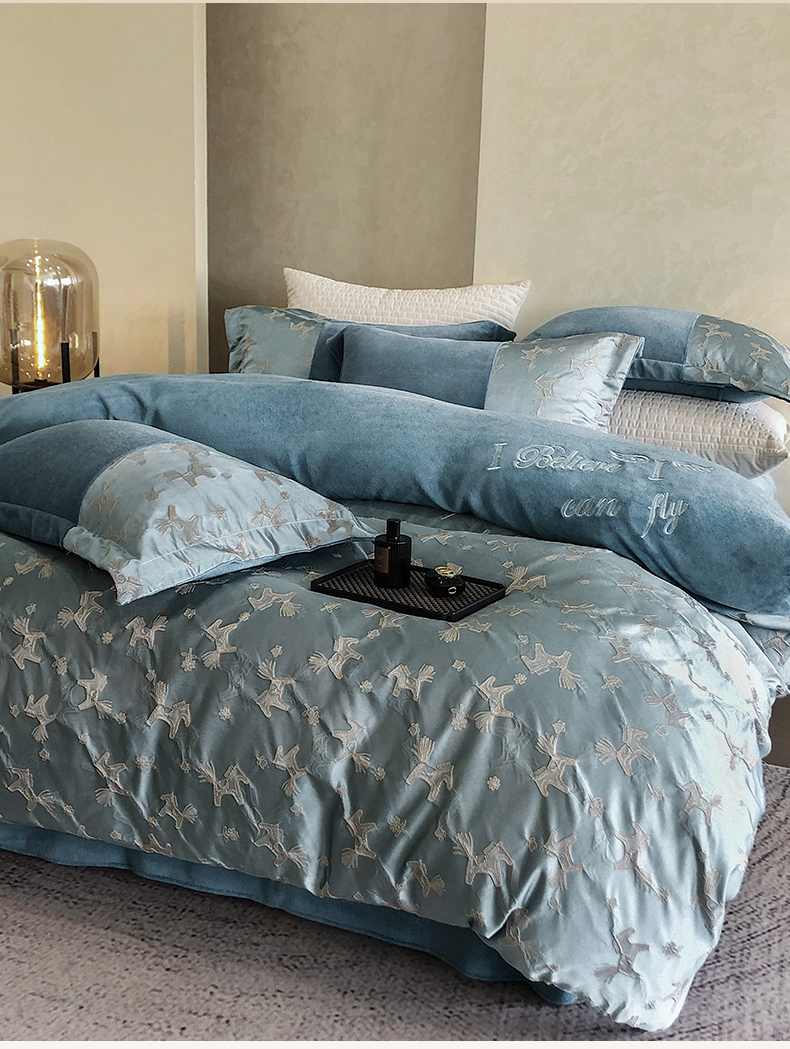商品名称:换种生活 2025新款A类浮雕牛奶绒刺绣四件套 马上有钱花-兰