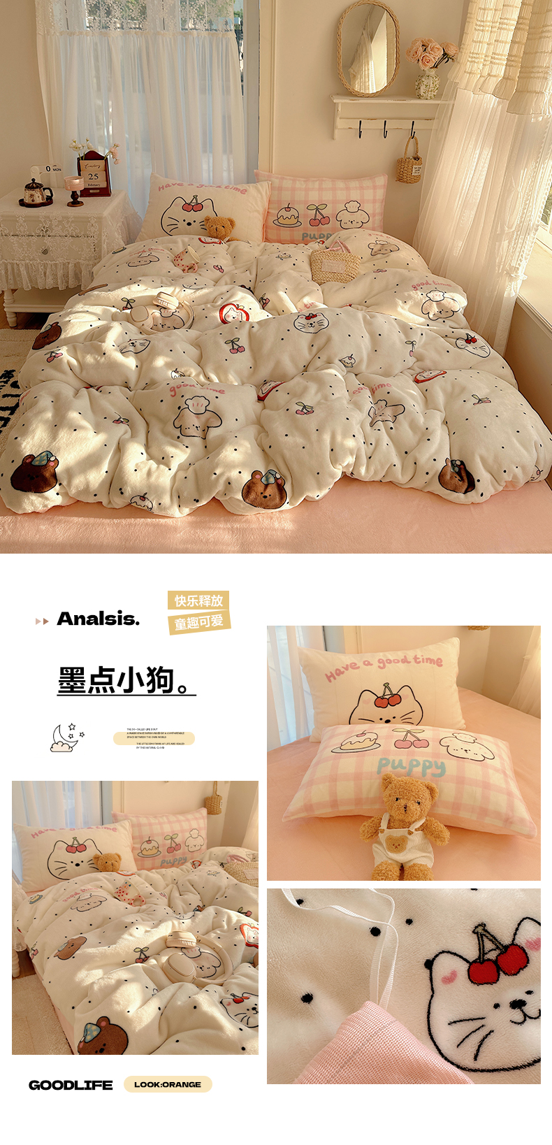 (总)美乐迪家纺 2025秋冬新款牛奶绒四件套,香肠狗,茶画熊,烘培熊,黄油小狗,蓝色小狗,洛丽塔小猫,猫咪日记,墨点小狗,拼接小狗,圣诞狗狗,甜品小兔,甜心派对,头套小兔,小猫的家,许愿小狗