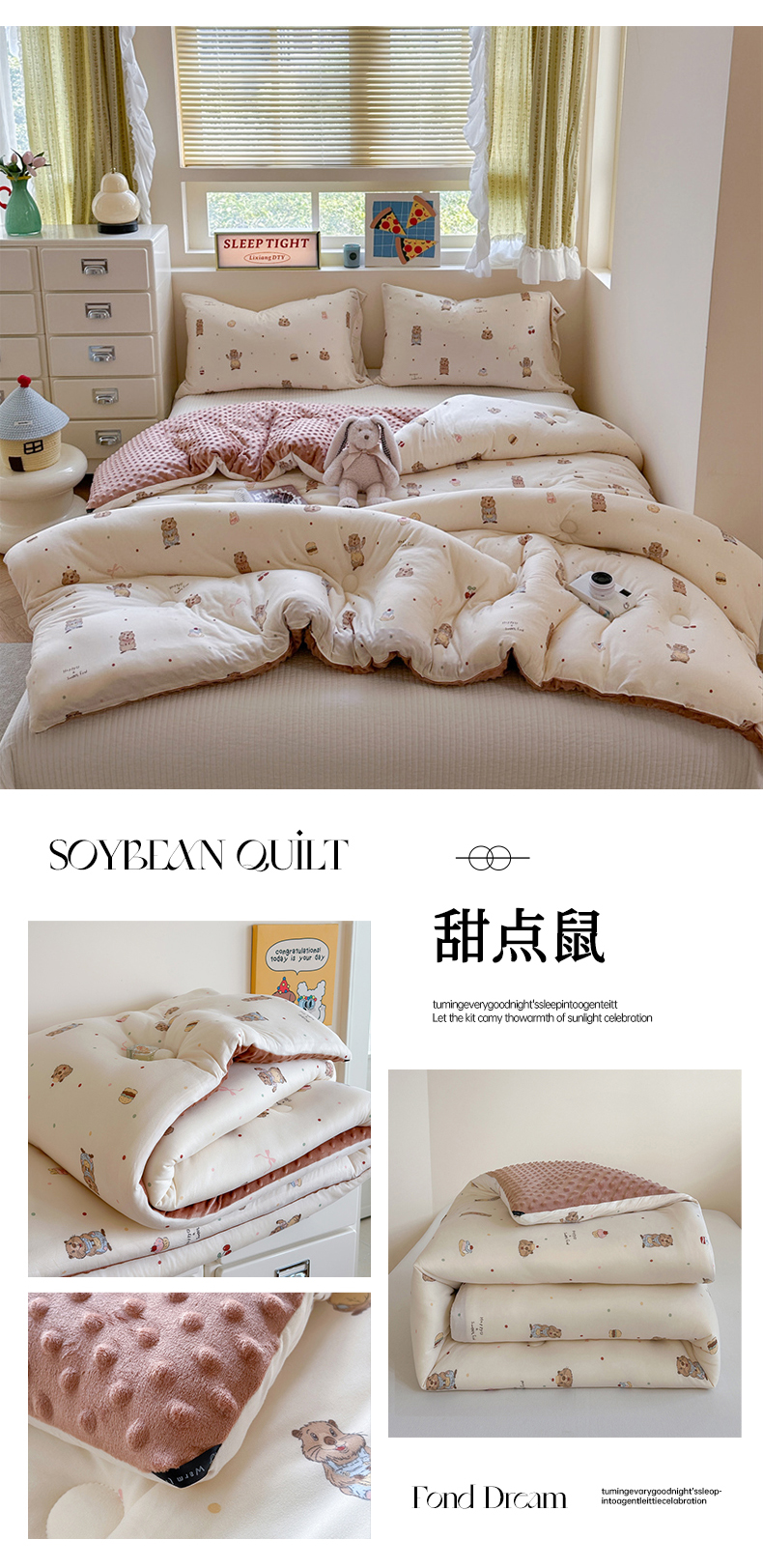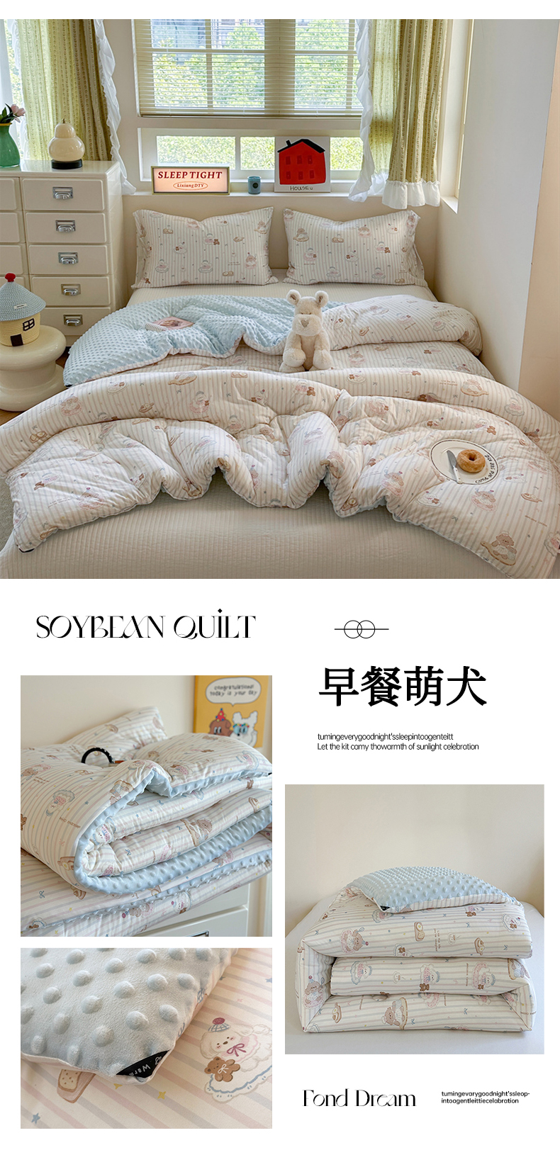 (总)暖生活 2025新款高克重细颗粒羊羔绒四件套,调皮小狗,灰色小象,毛绒小狗,甜点玩偶,小咪排队,幸福小窝