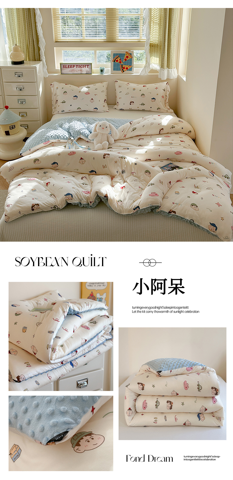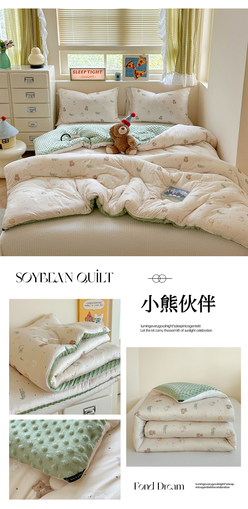 (总)暖生活 2025新款高克重细颗粒羊羔绒牛奶绒毛巾绣四件套,梅梅熊,童年时光-兰,童年时光-米,小短腿