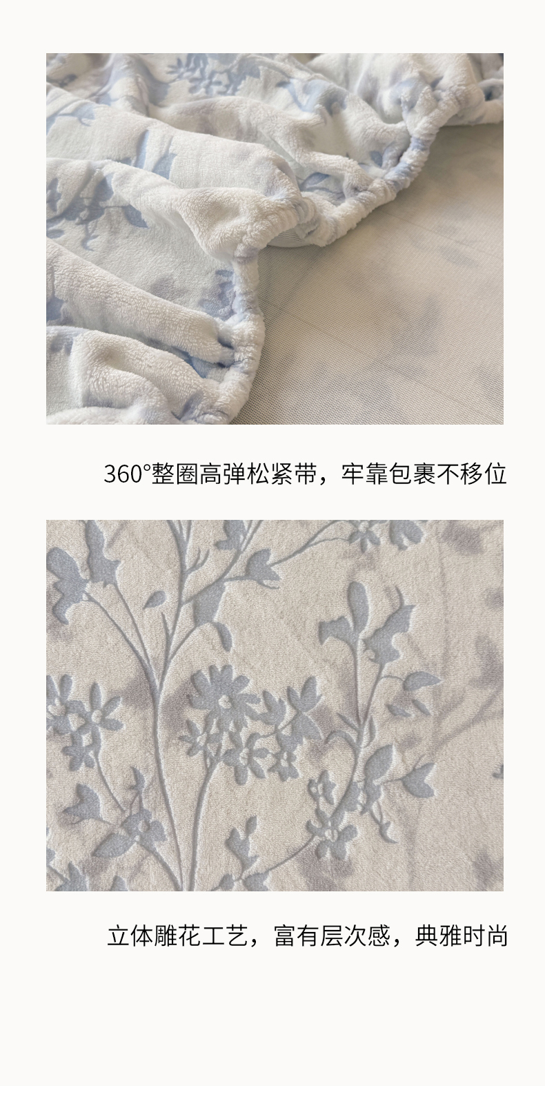 商品名称:(总)LIFE.丽芙 2025秋冬新款A类牛奶绒230g立体雕花加厚单层床笠单件床垫子保护套罩子三件套