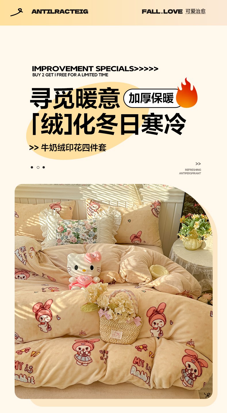 当前位置: 91家纺网 > 商品网购 > 床品套件 > 四件套 > 牛奶绒四件套 > 韩巢家纺 2025新款高克重印花牛奶绒床品四件套 美乐蒂