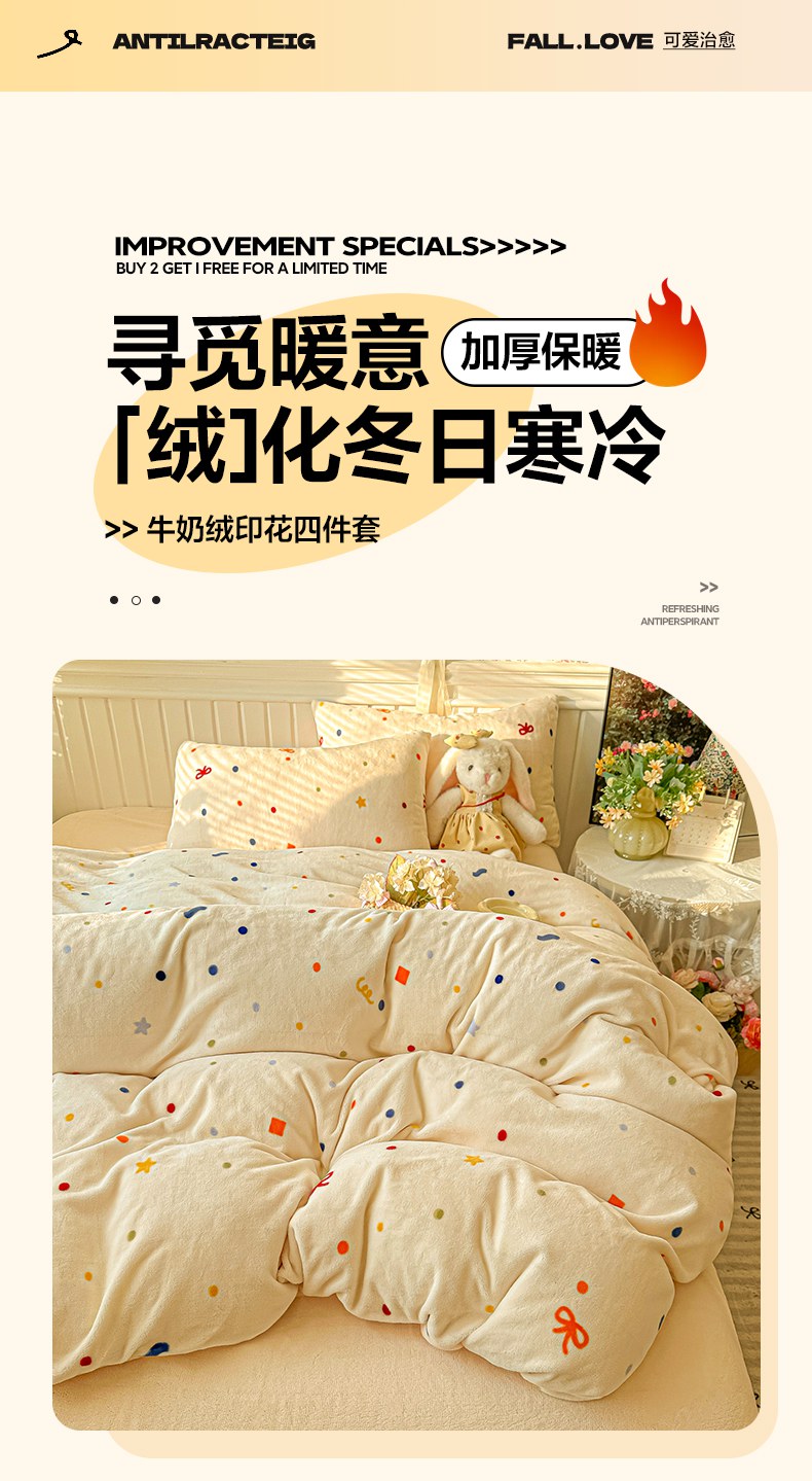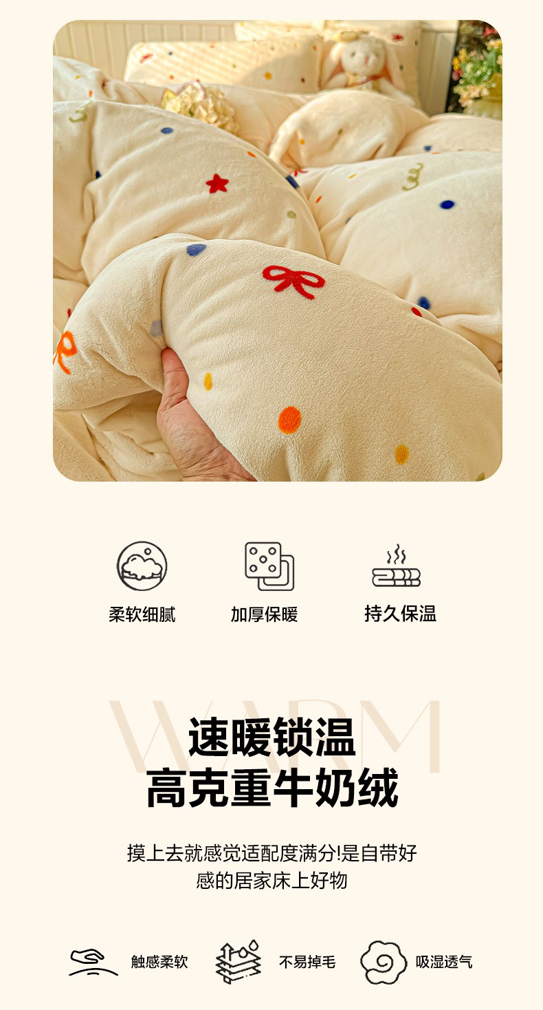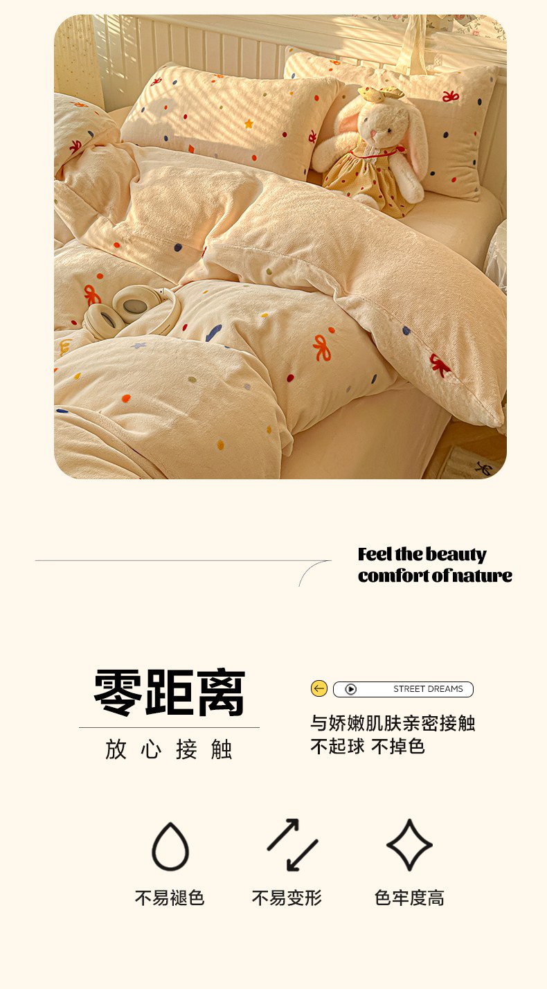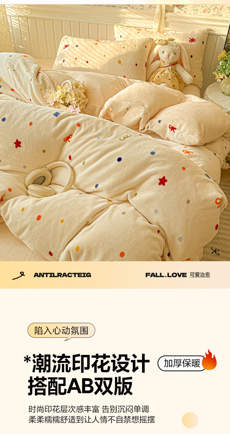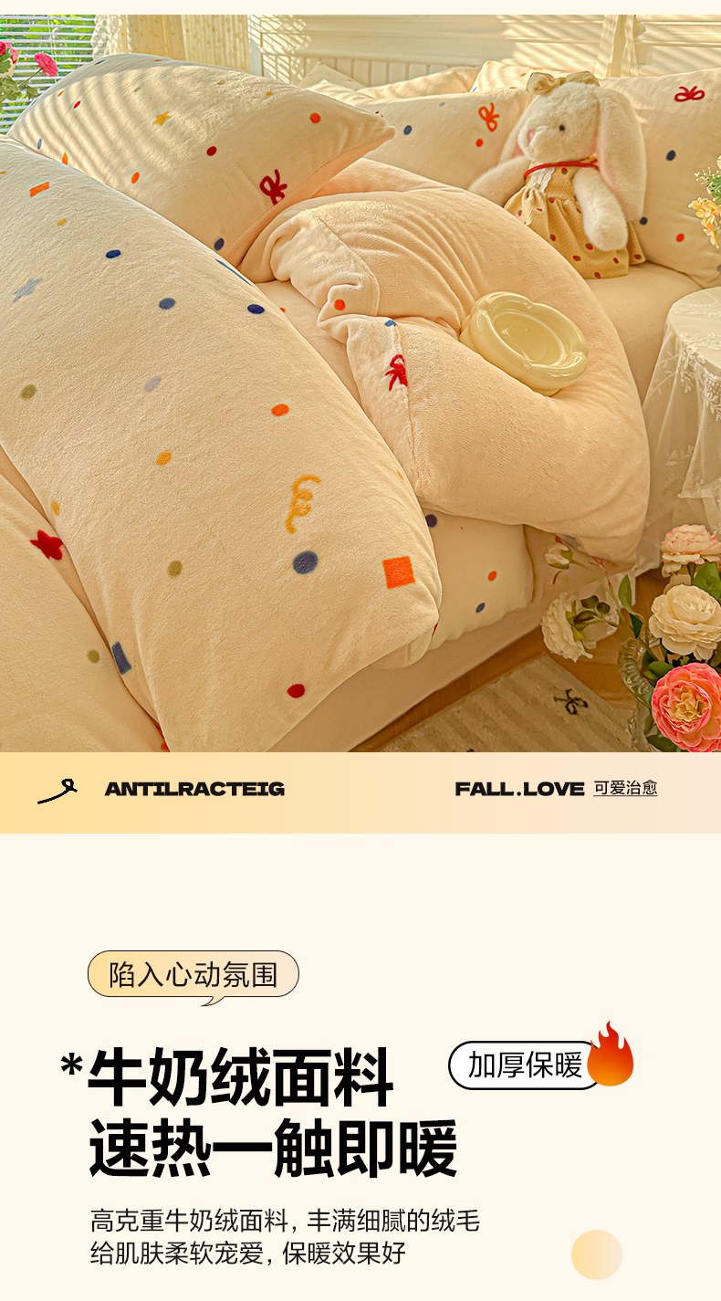 当前位置: 91家纺网 > 商品网购 > 床品套件 > 四件套 > 牛奶绒四件套 > 韩巢家纺 2025新款高克重印花牛奶绒床品四件套 五彩斑澜