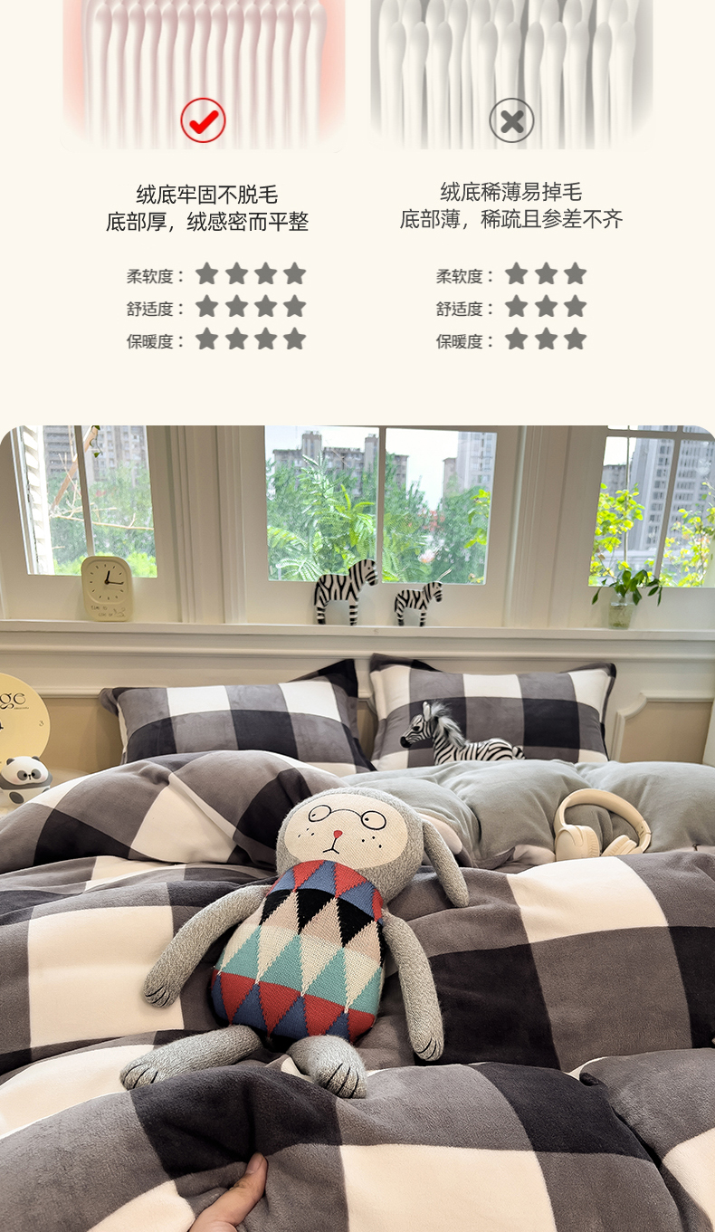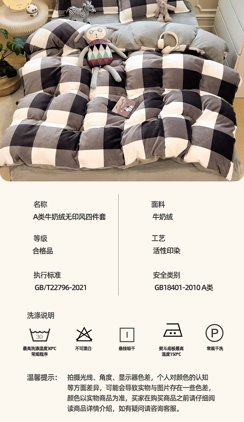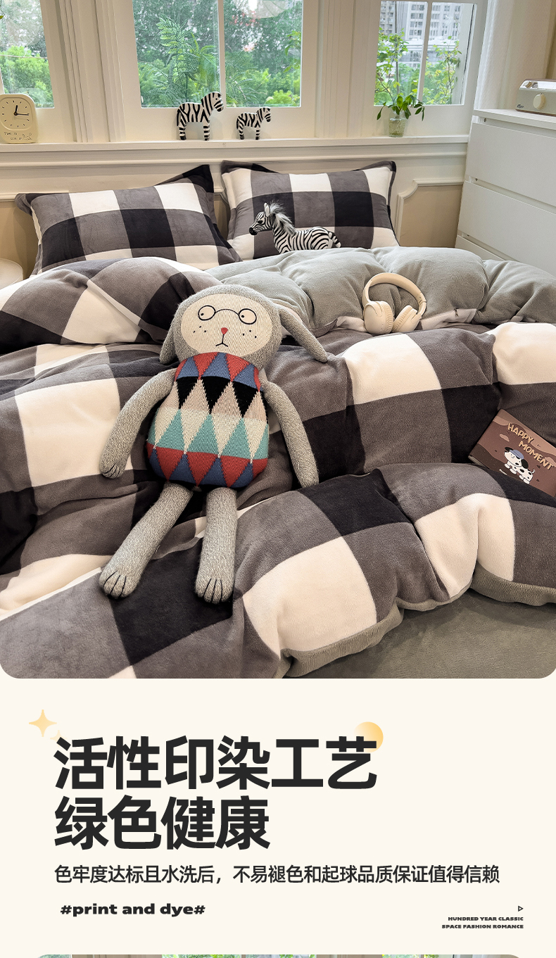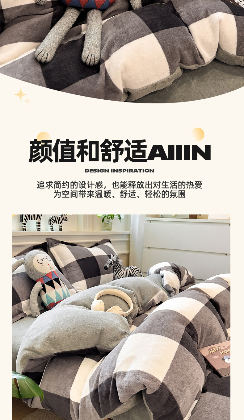 当前位置: 91家纺网 > 商品网购 > 床品套件 > 四件套 > 牛奶绒四件套 > 曲之慕 2025新款A类牛奶绒简约无印风格子四件套 灰简格