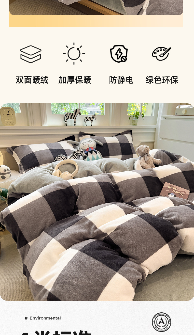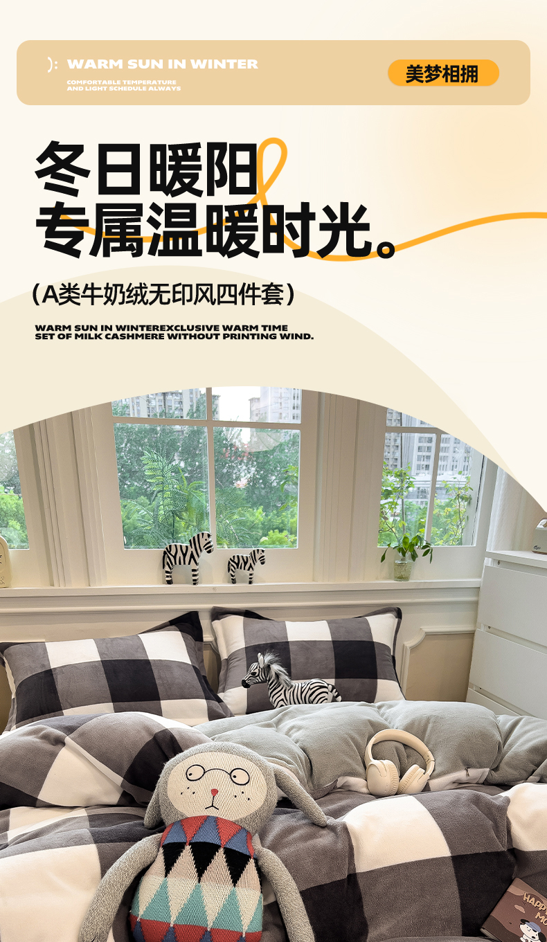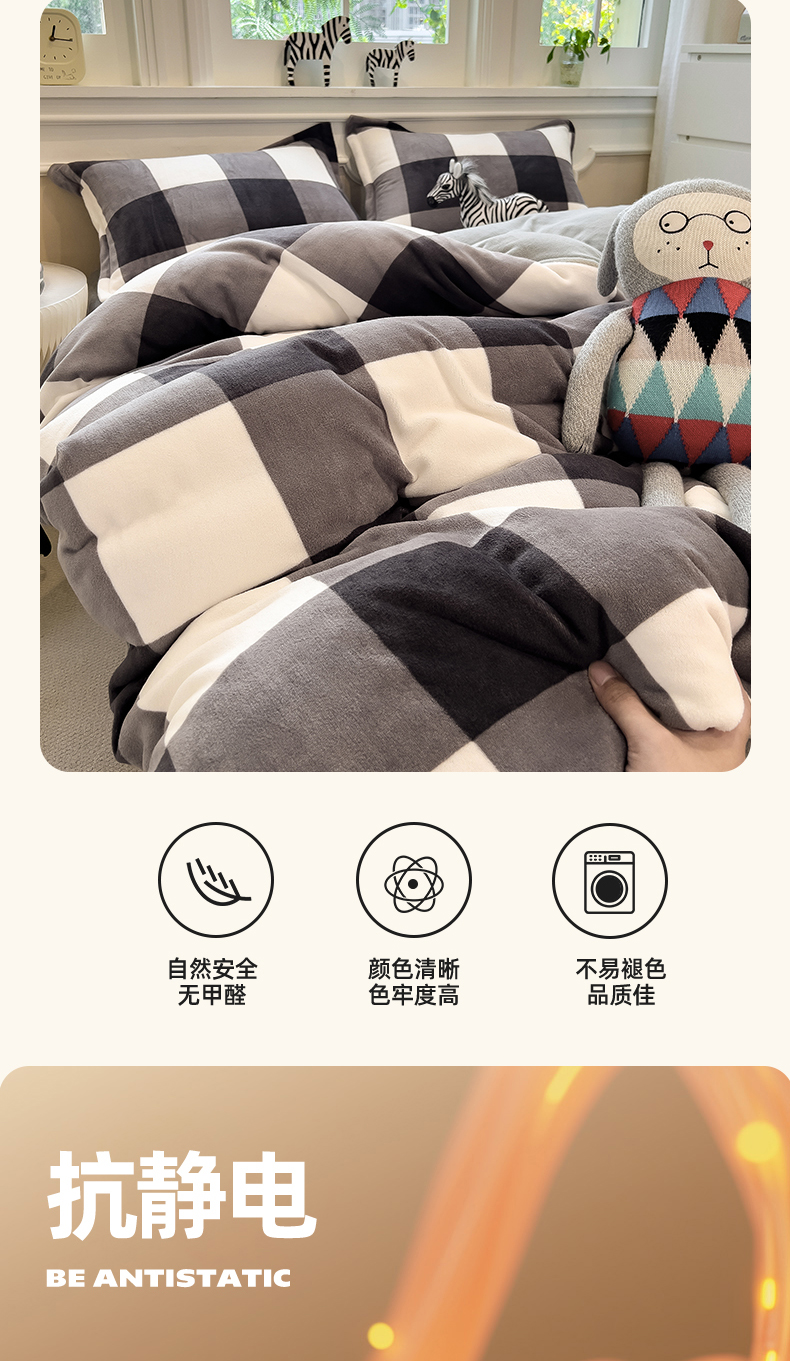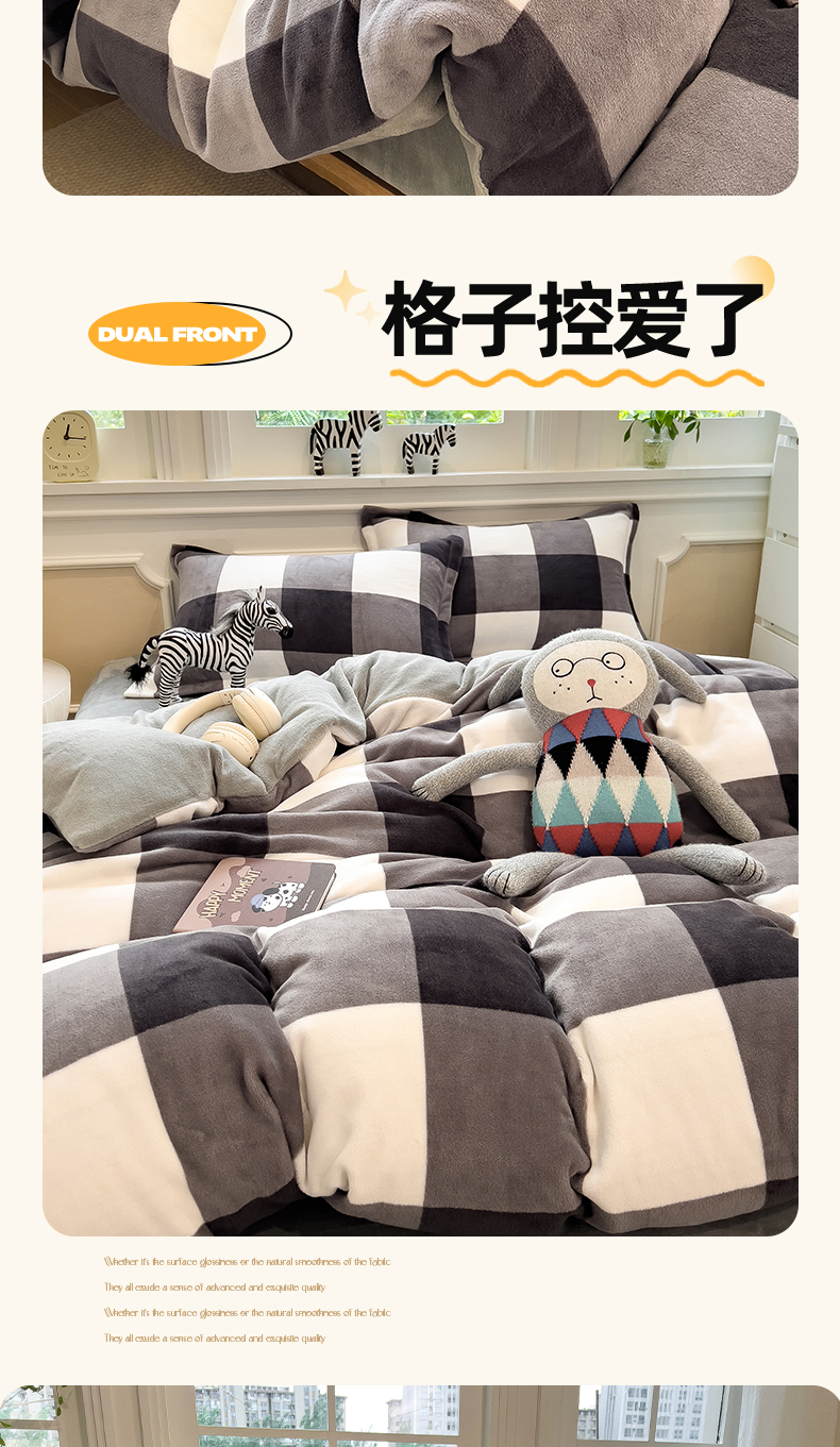 当前位置: 91家纺网 > 商品网购 > 床品套件 > 四件套 > 牛奶绒四件套 > 曲之慕 2025新款A类牛奶绒简约无印风格子四件套 灰简格