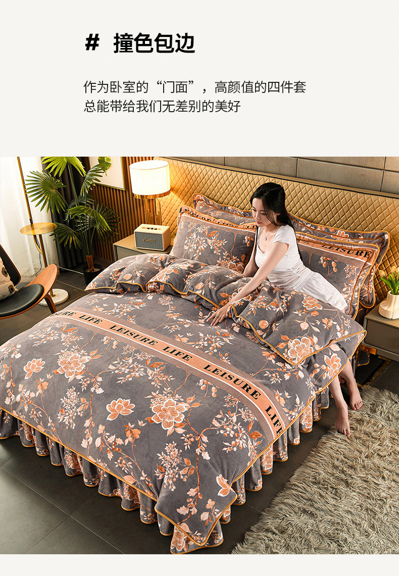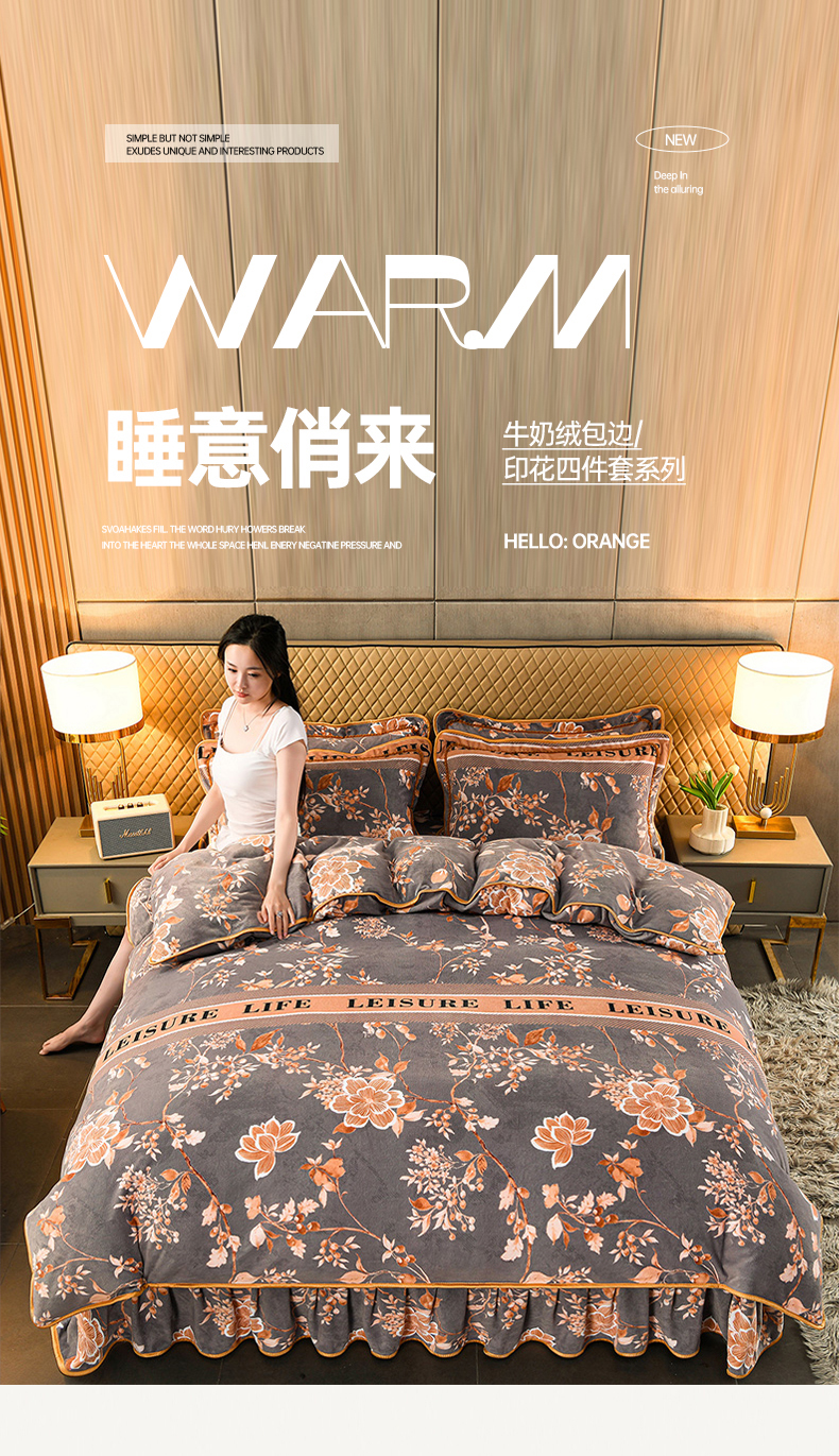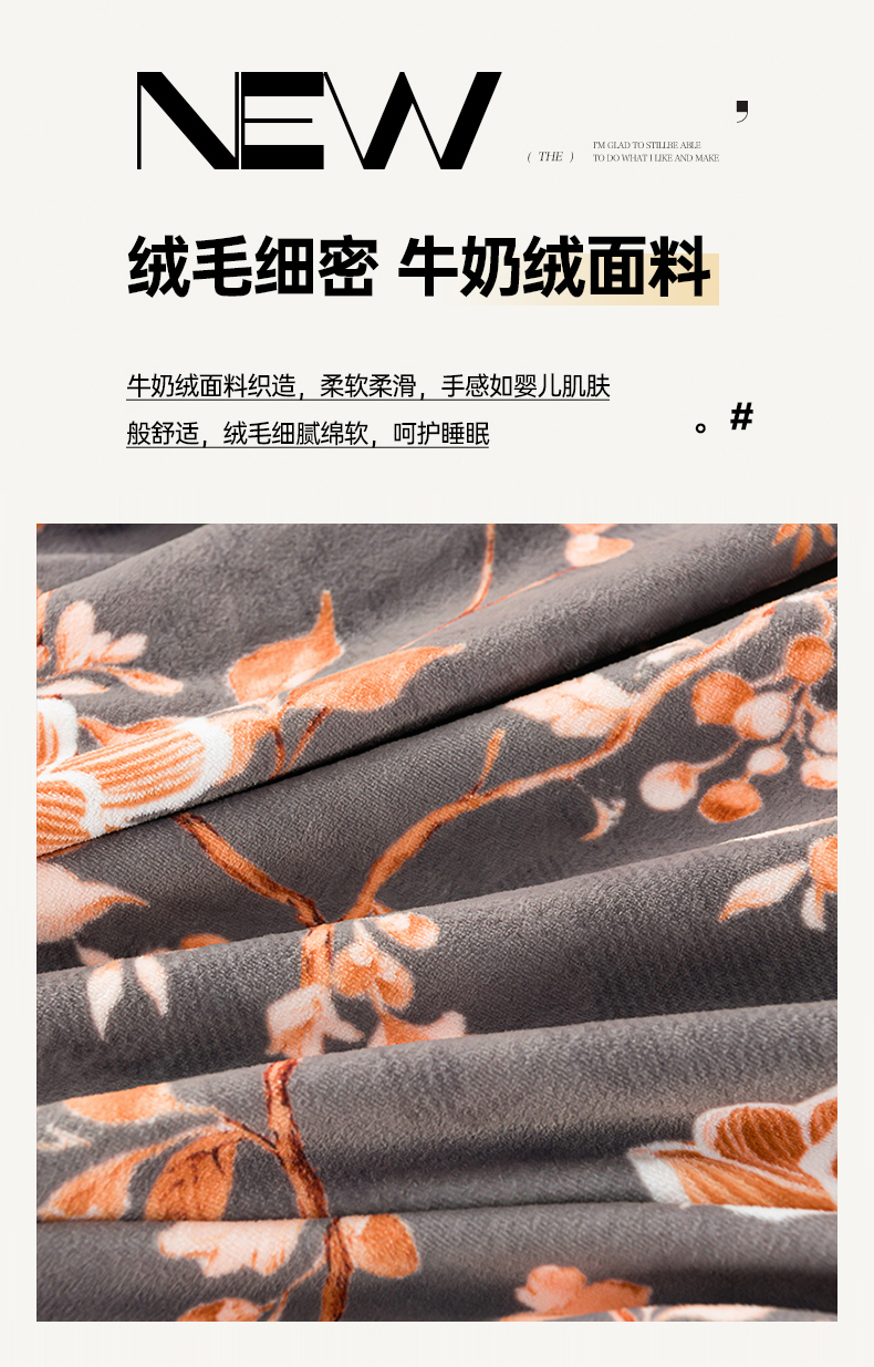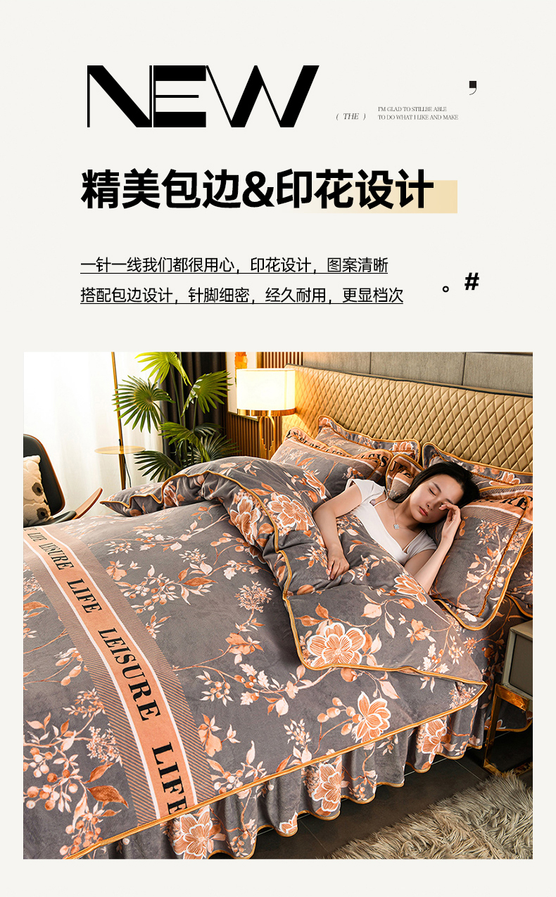 商品名称:牵依 2025新款牛奶绒小包边印花四件套 暖意绒绒