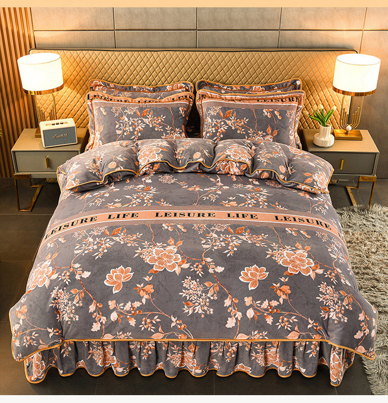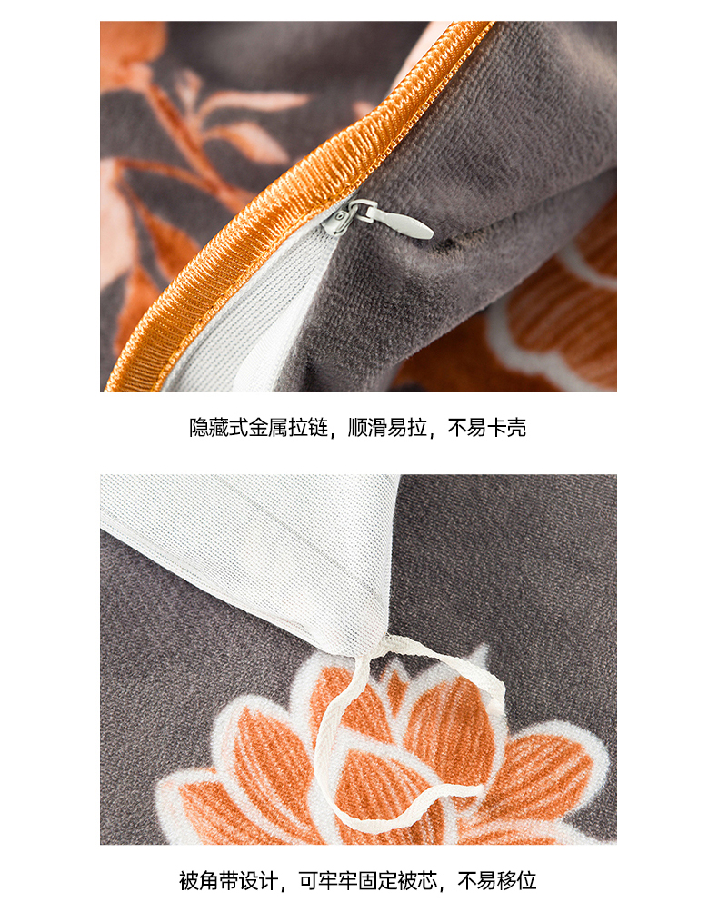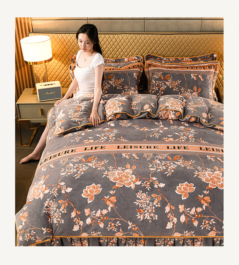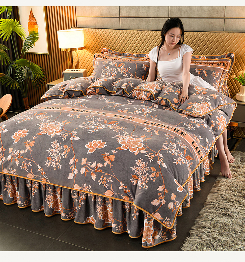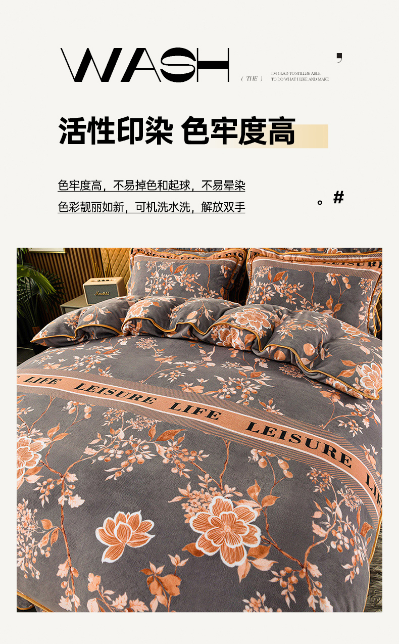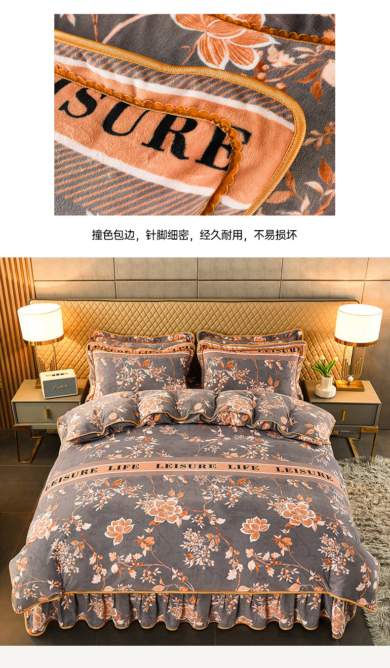 商品名称:牵依 2025新款牛奶绒小包边印花四件套 暖意绒绒