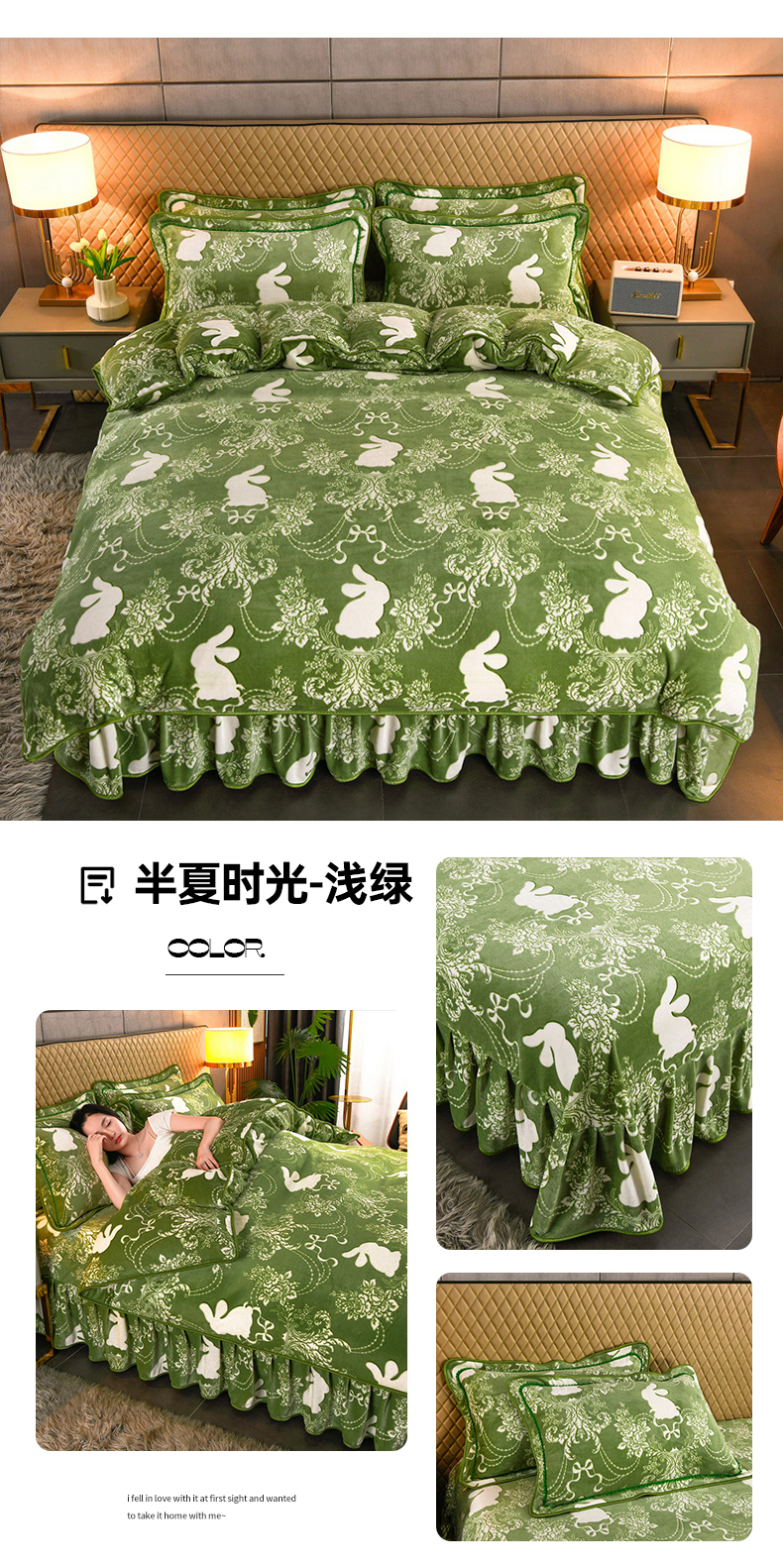 (总)牵依 2025新款高克重牛奶绒四件套,花开漫舞-粉,花开漫舞-绿,浪漫花语-粉,浪漫花语-抹茶绿,小雏菊-绿,小雏菊-浅灰,郁金香-蓝粉,郁金香-浅米黄,月光兔-冰水蓝,月光兔-抹茶绿,月光兔-樱花粉