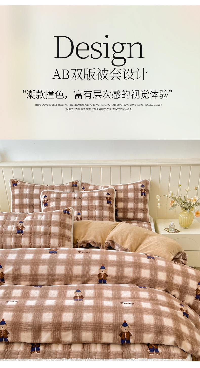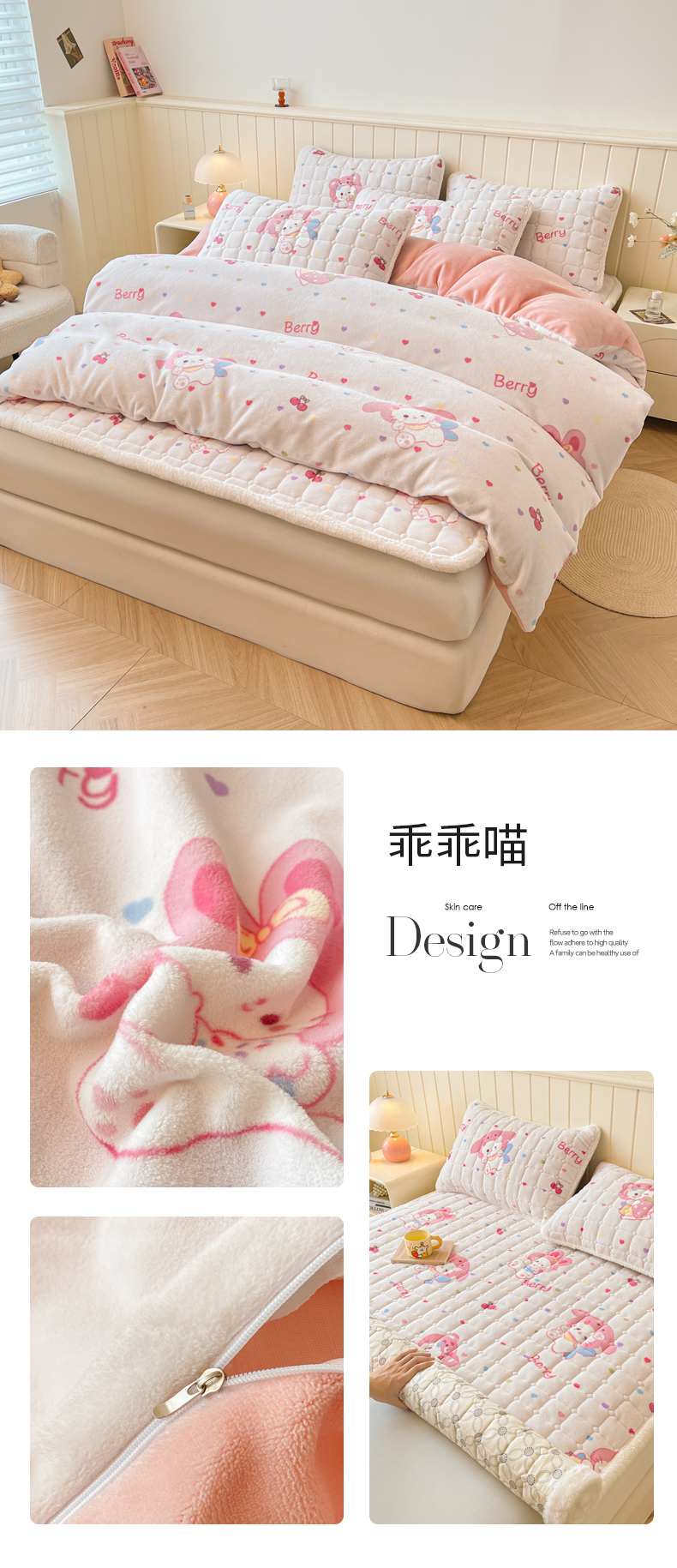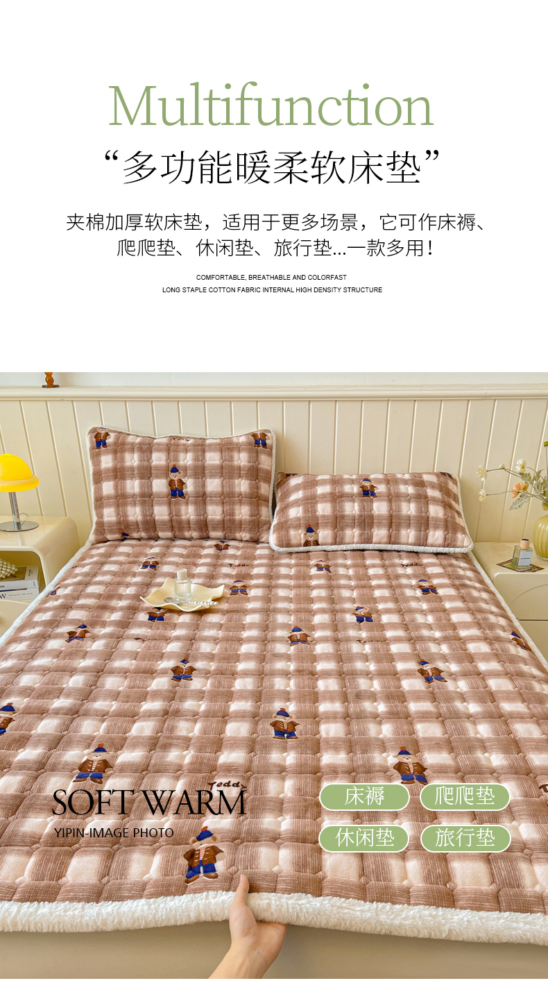 商品名称:LIFE.丽芙 2025秋冬新款A类牛奶绒加厚夹棉床褥垫+被套组合四件套 芭乐