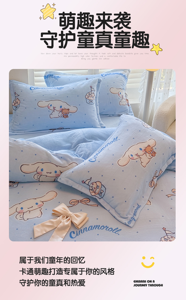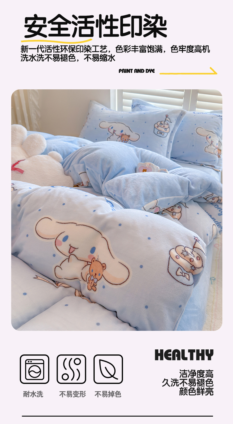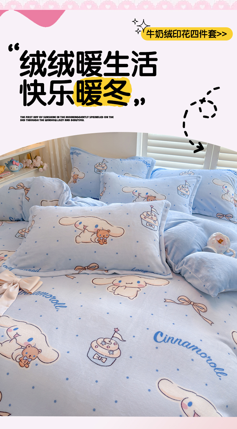 当前位置: 91家纺网 > 商品网购 > 床品套件 > 四件套 > 牛奶绒四件套 > 名兮家居 2025新款经典奥特曼-三丽鸥高克重牛奶绒四件套 甜品大耳狗