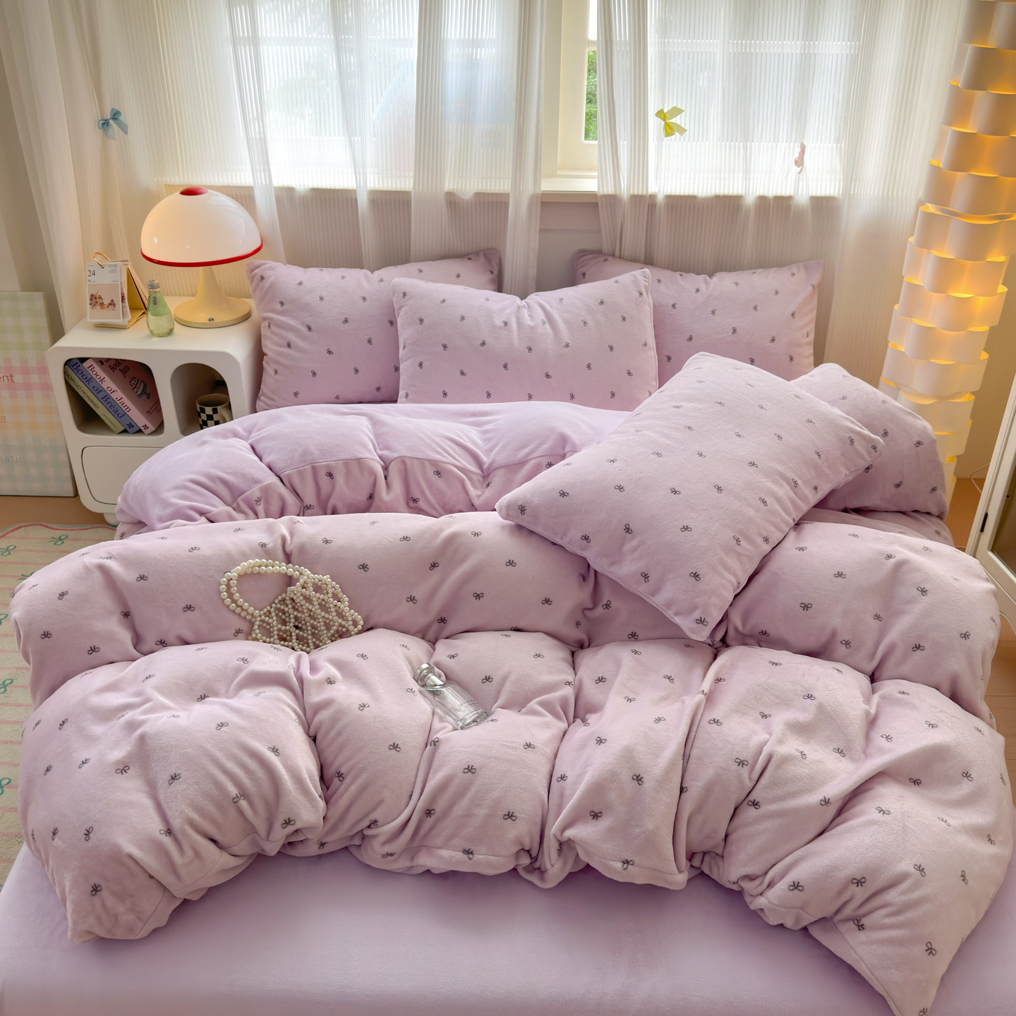 德比尔斯 2025新款暗合印花牛奶绒四件套 蝴蝶结-紫