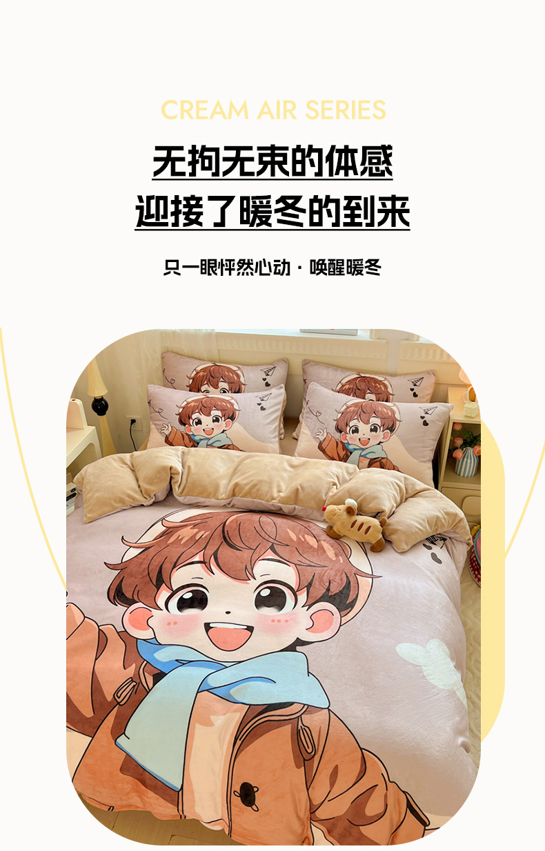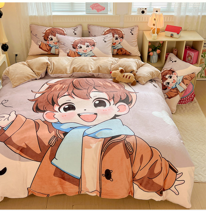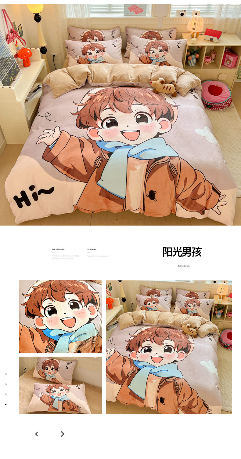 商品名称:喜梦缘 2025年新款大版小版卡通牛奶绒四件套 阳光男孩