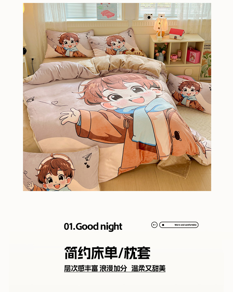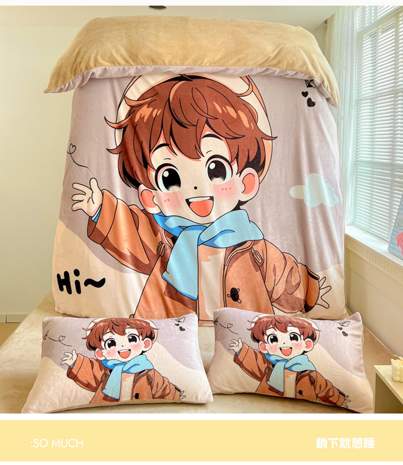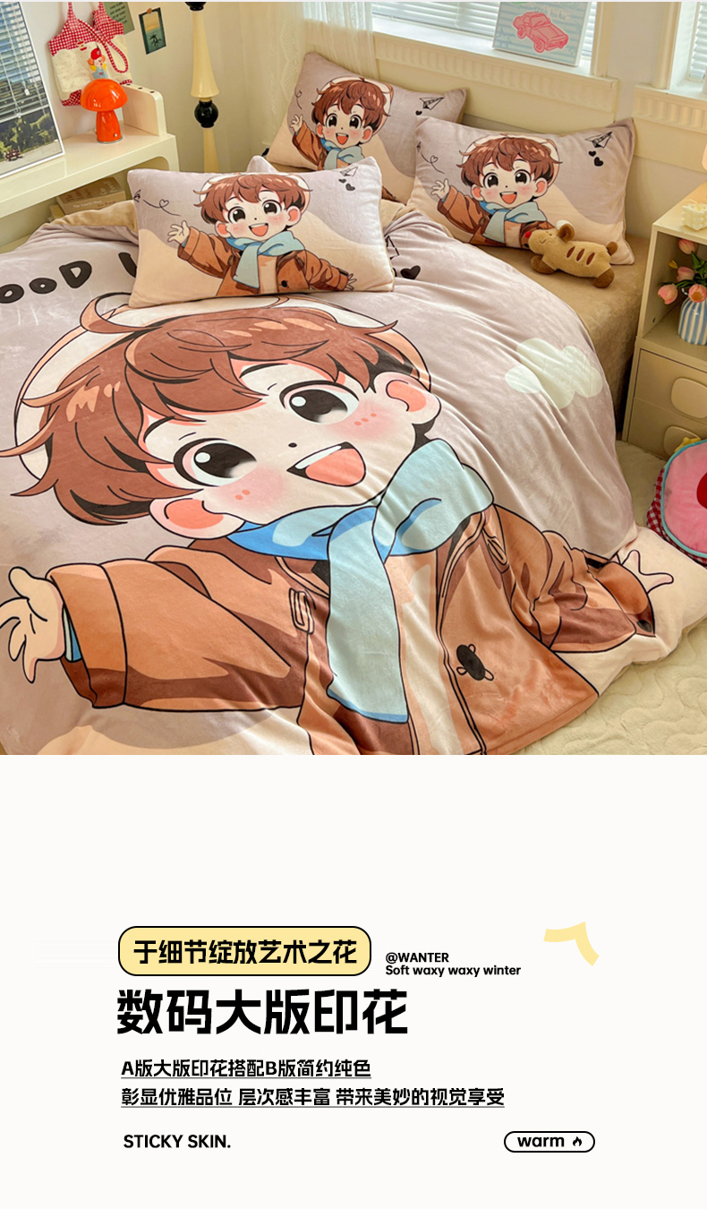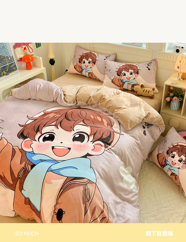 商品名称:喜梦缘 2025年新款大版小版卡通牛奶绒四件套 阳光男孩