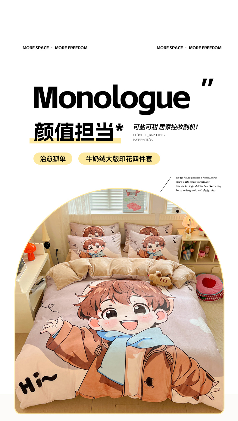 喜梦缘 2025年新款大版小版卡通牛奶绒四件套 阳光男孩
