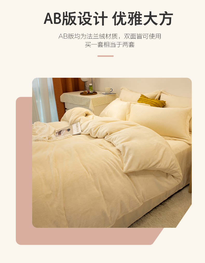 当前位置: 91家纺网 > 商品网购 > 床品套件 > 四件套 > 牛奶绒四件套 > 兰紫橙家纺 2025新款双面绒纯色双拼牛奶绒四件套 米白