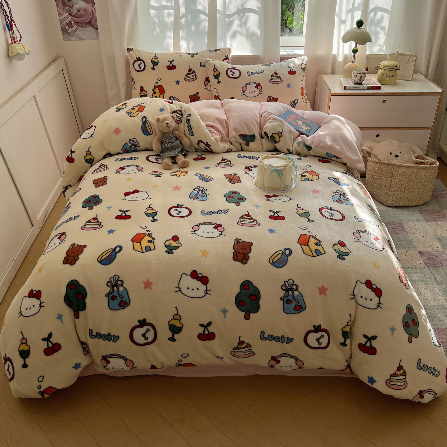 (总)桃喜 2026新款全棉混搭卡通印花学生三件套四件套,费尔岛蝴蝶结小狗,费尔岛小熊,可爱动物团,可爱小兔子,星星猫咪