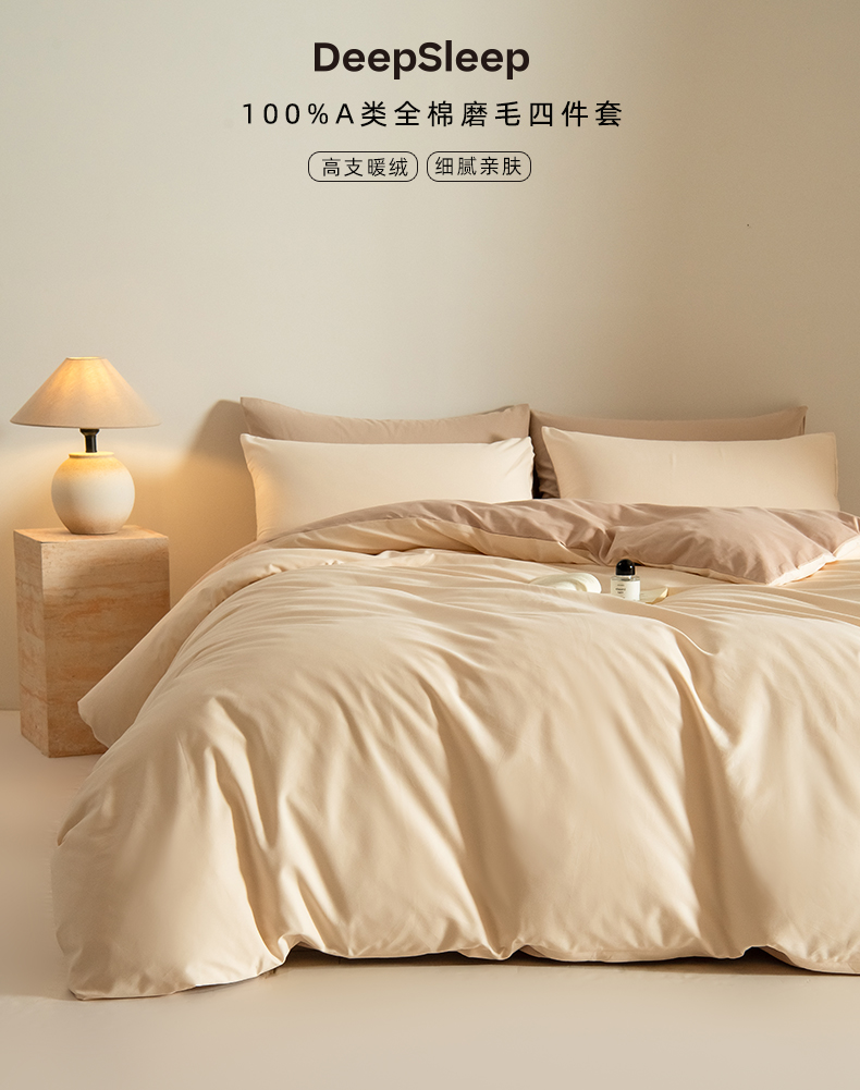 床品套件 > 三件套 > Mr.pig猪先生水洗棉 2025新款贡缎长绒棉全棉纯棉贡缎磨毛单被套150*200*230加大单被套学生 透玉粉+奶茶香槟