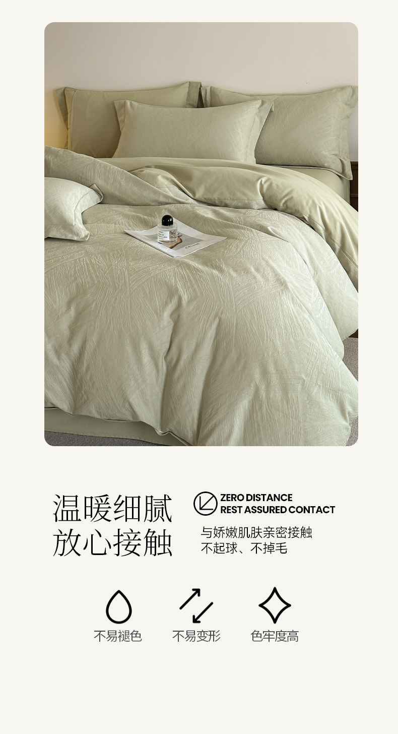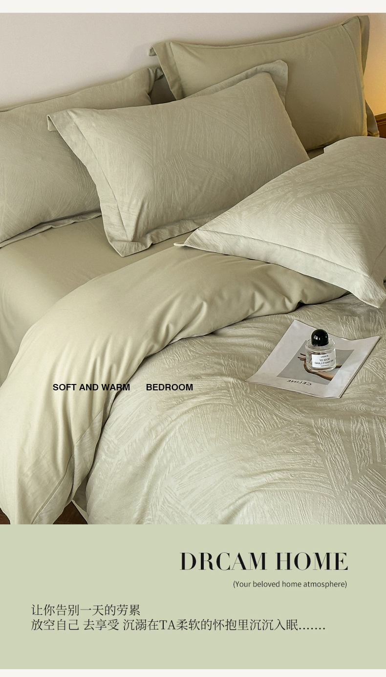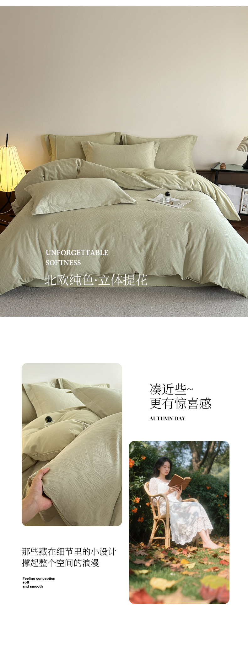 商品名称:慕晨 2025新款全棉提花磨毛四件套高级简奢款中高端4件套直播热款 棉语-绿
