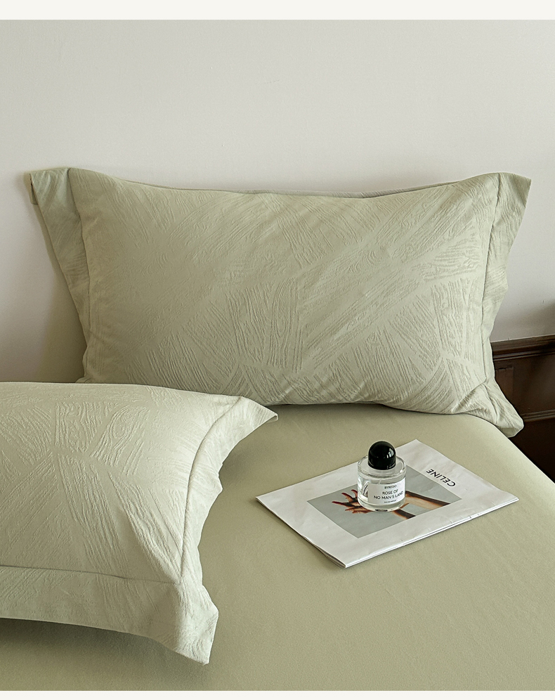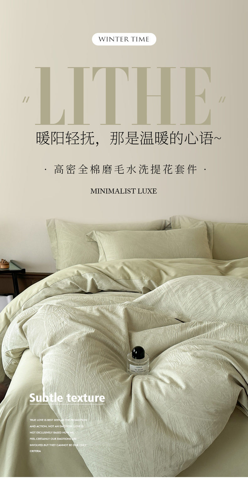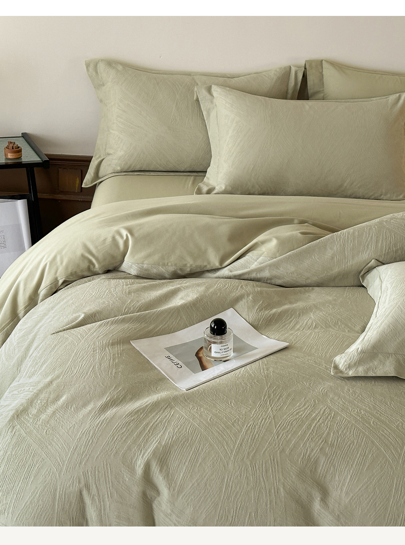 商品名称:慕晨 2025新款全棉提花磨毛四件套高级简奢款中高端4件套直播热款 棉语-绿