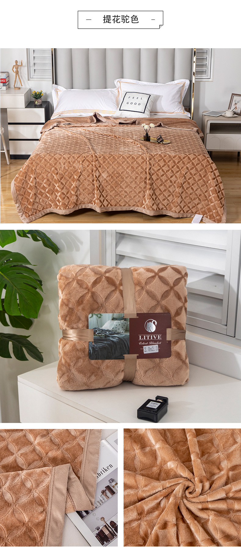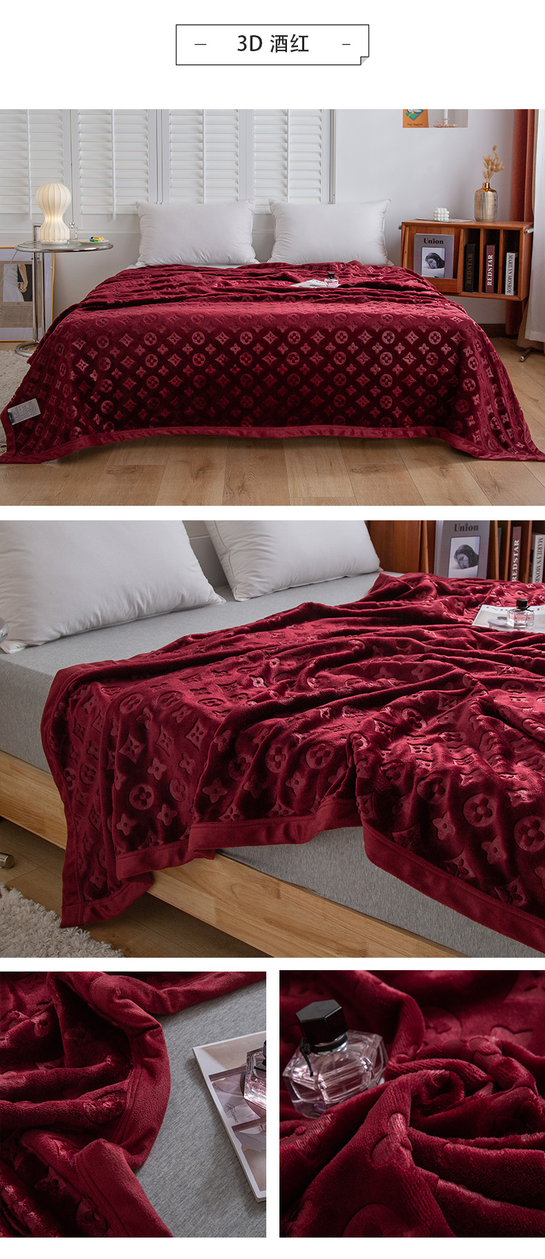 商品名称:梵克保罗 2025新款3D立体印花四季盖毯400克 3D粉