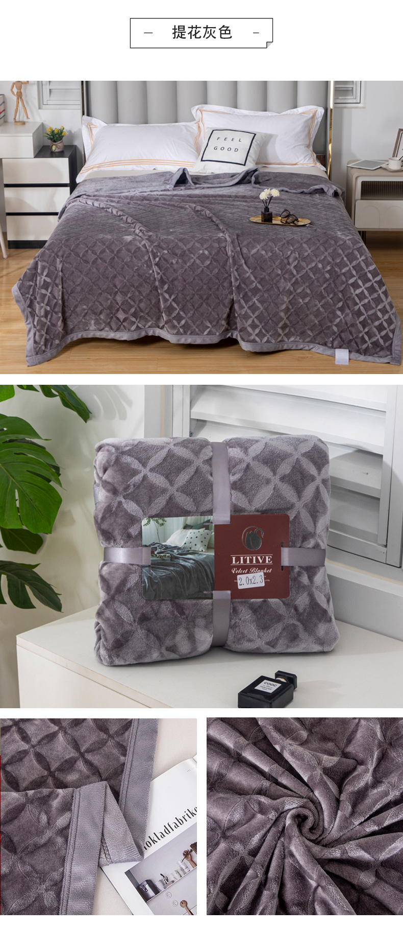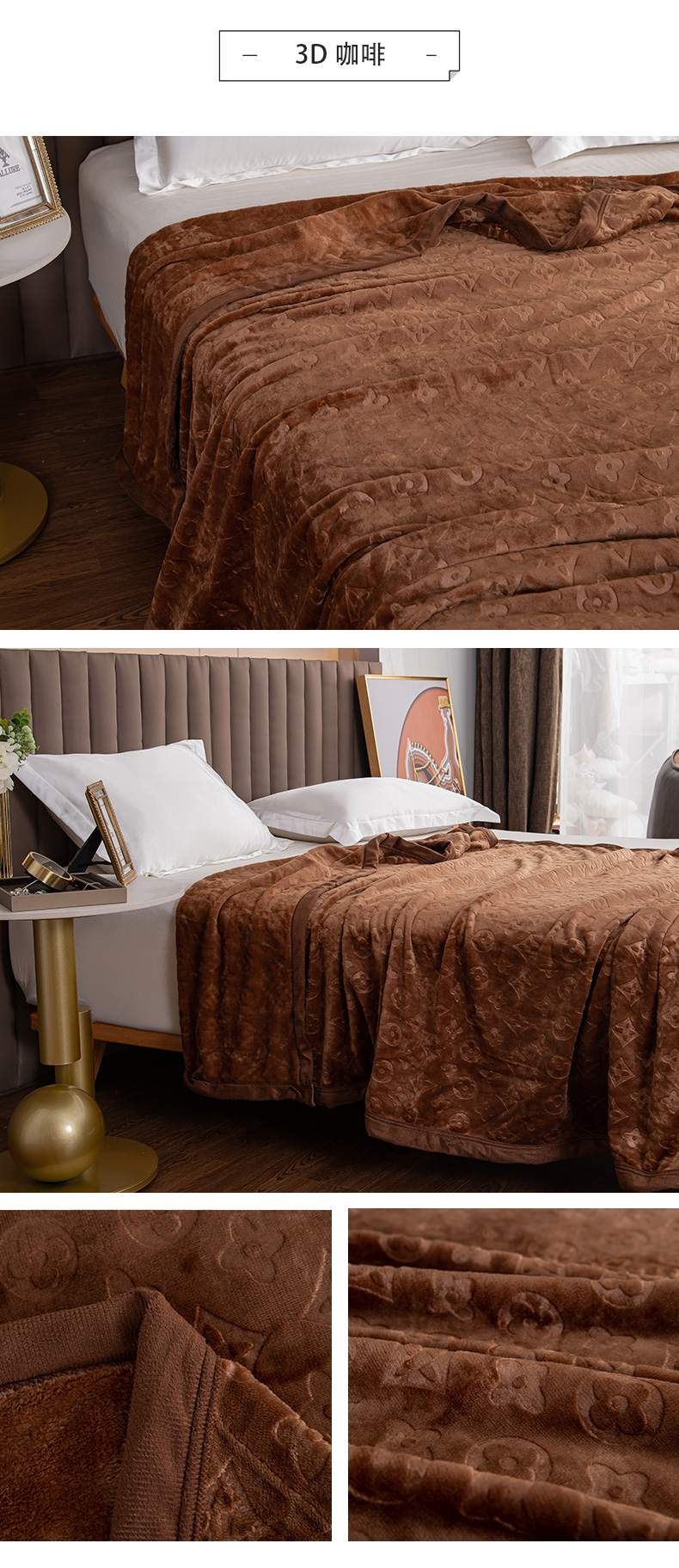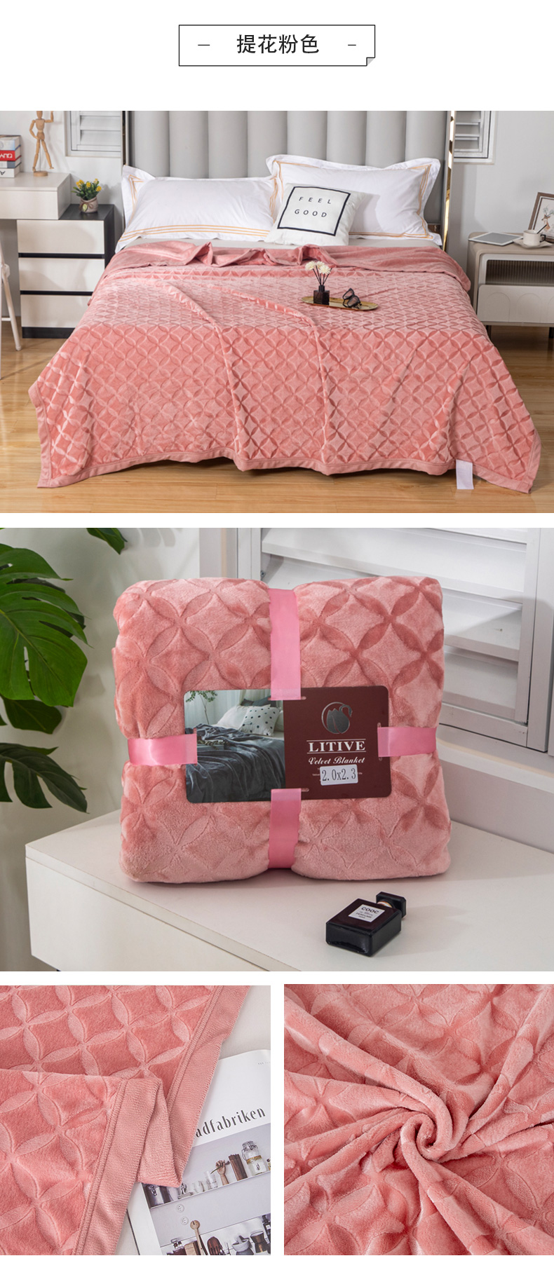 商品名称:梵克保罗 2025新款3D立体印花四季盖毯400克 3D绿