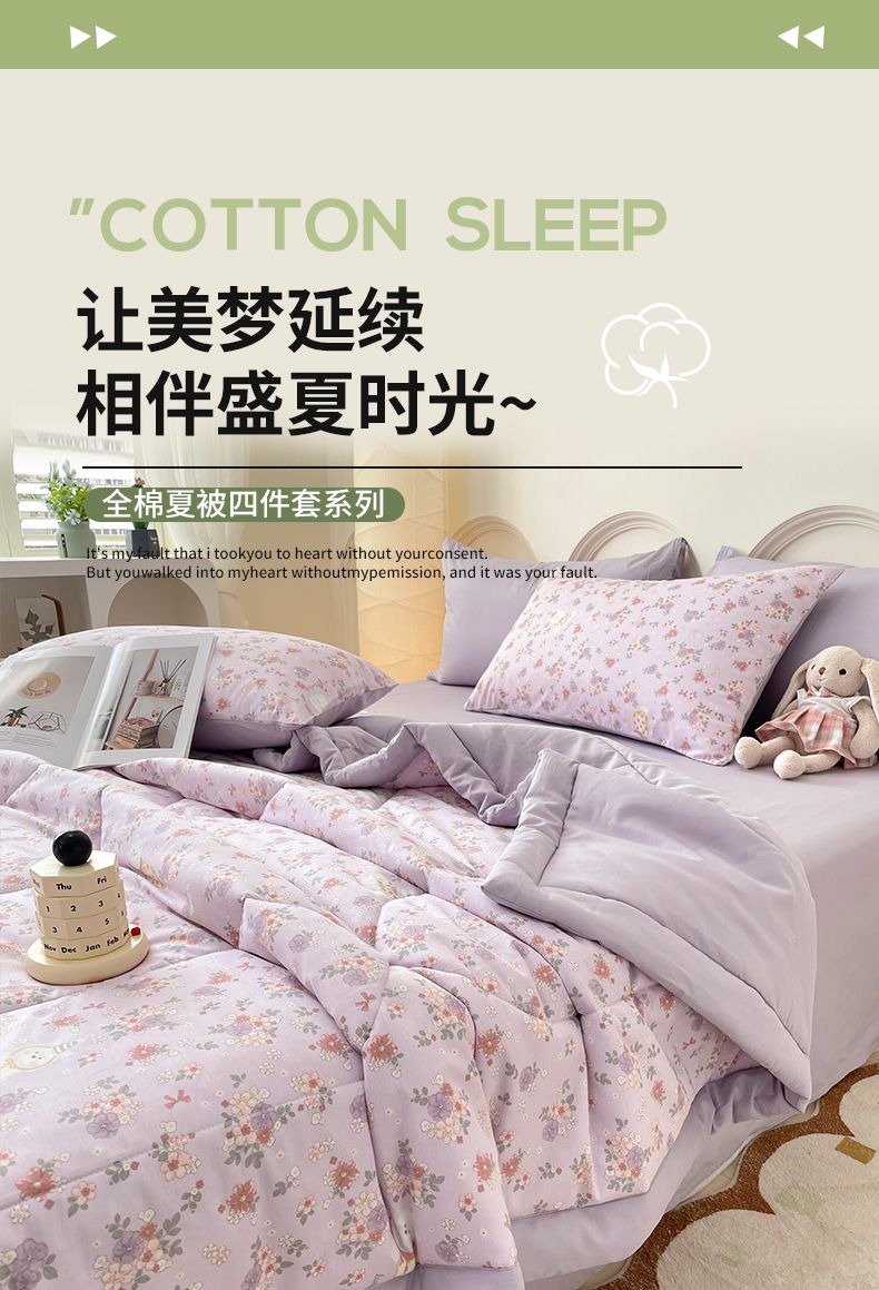 当前位置: 91家纺网 > 商品网购 > 床品套件 > 四件套 > 夏被四件套 > 梵克保罗 2025新款全棉夏被碎花卡通小清新简约纯棉夏凉被夏被四件套三件套 紫色蝴蝶结
