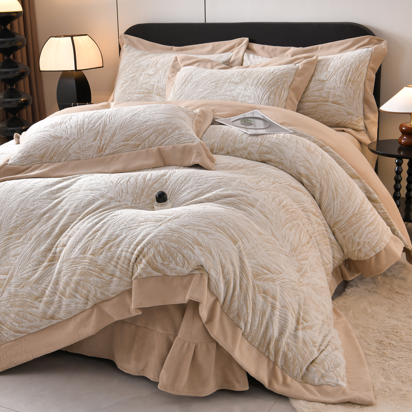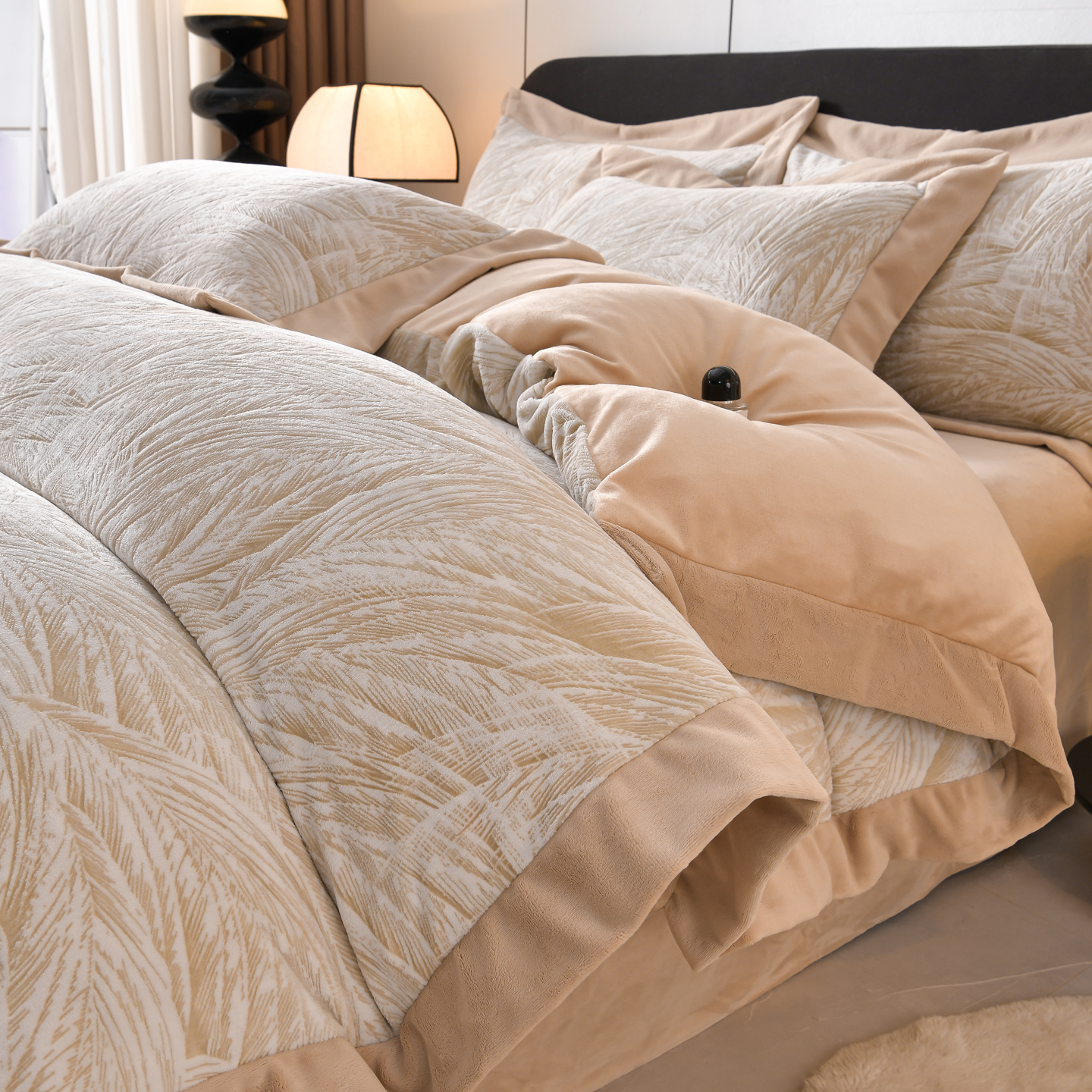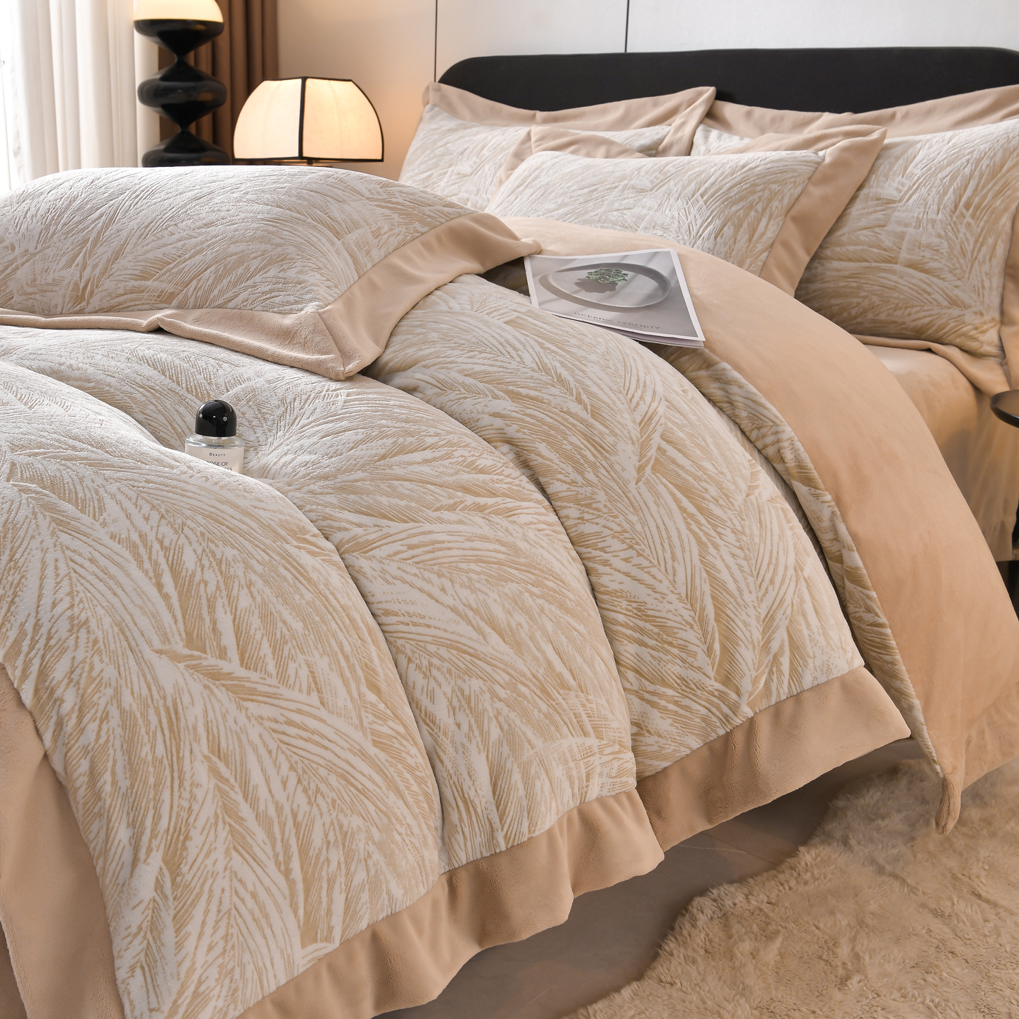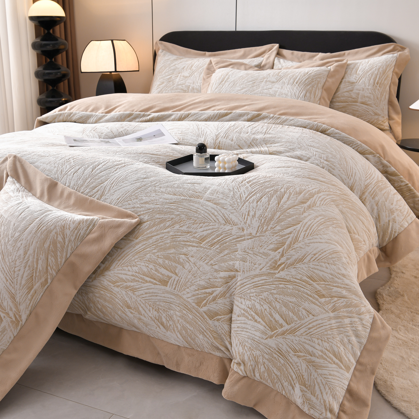 湘雪家居 2025新款高克重雕花牛奶绒四件套 梦娜-芦苇咖